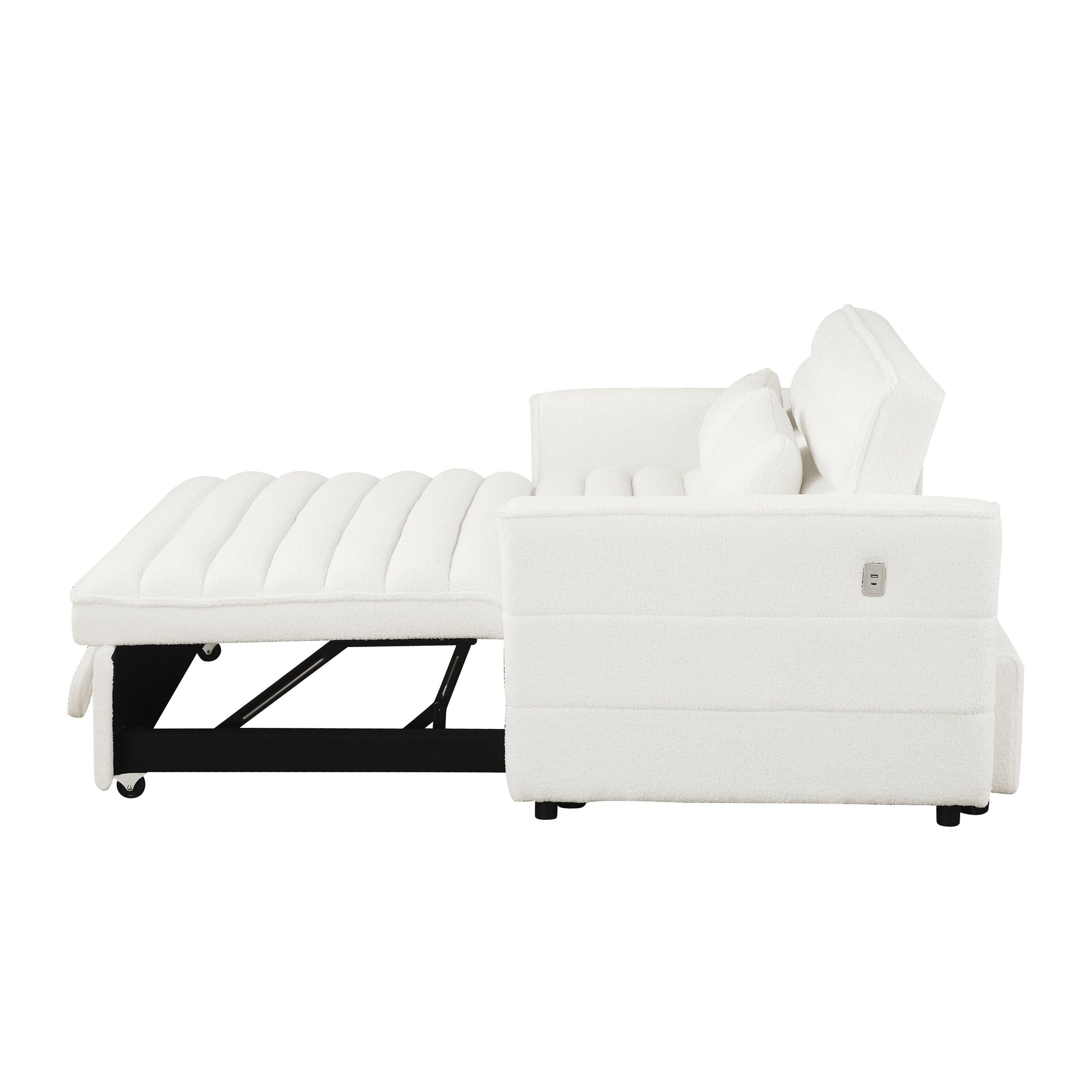 Beige 55.12 Boucle Loveseat Convertible Pull-Out...
