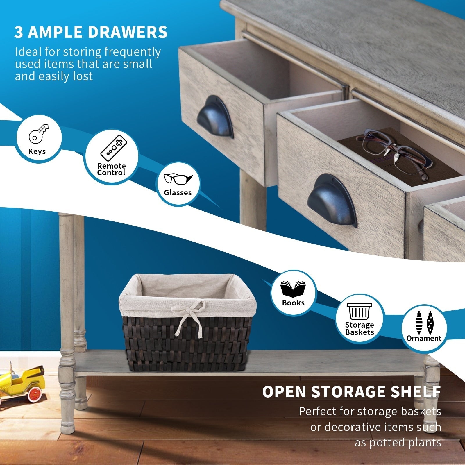 Burlington Wood 3-drawer Console Hallway Table