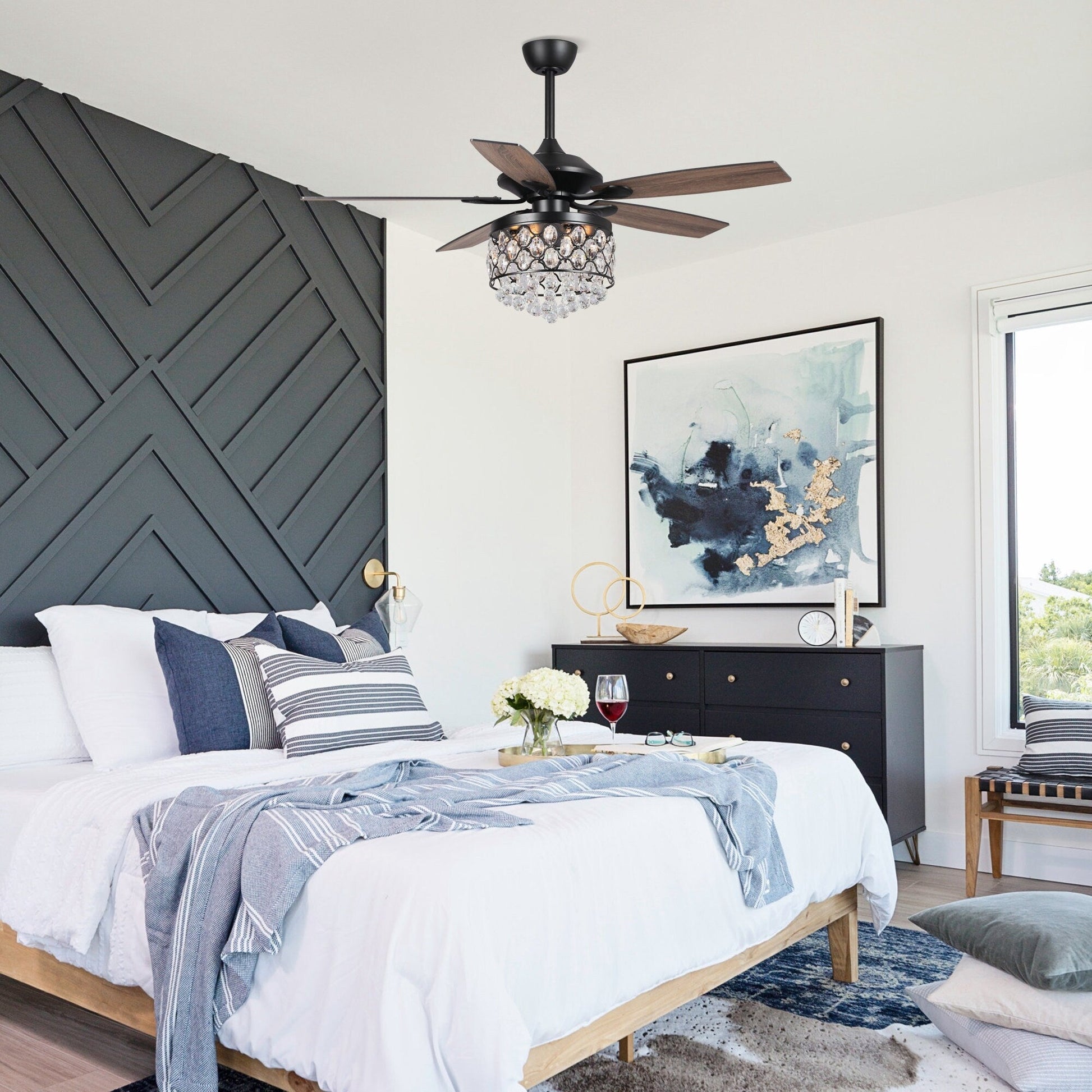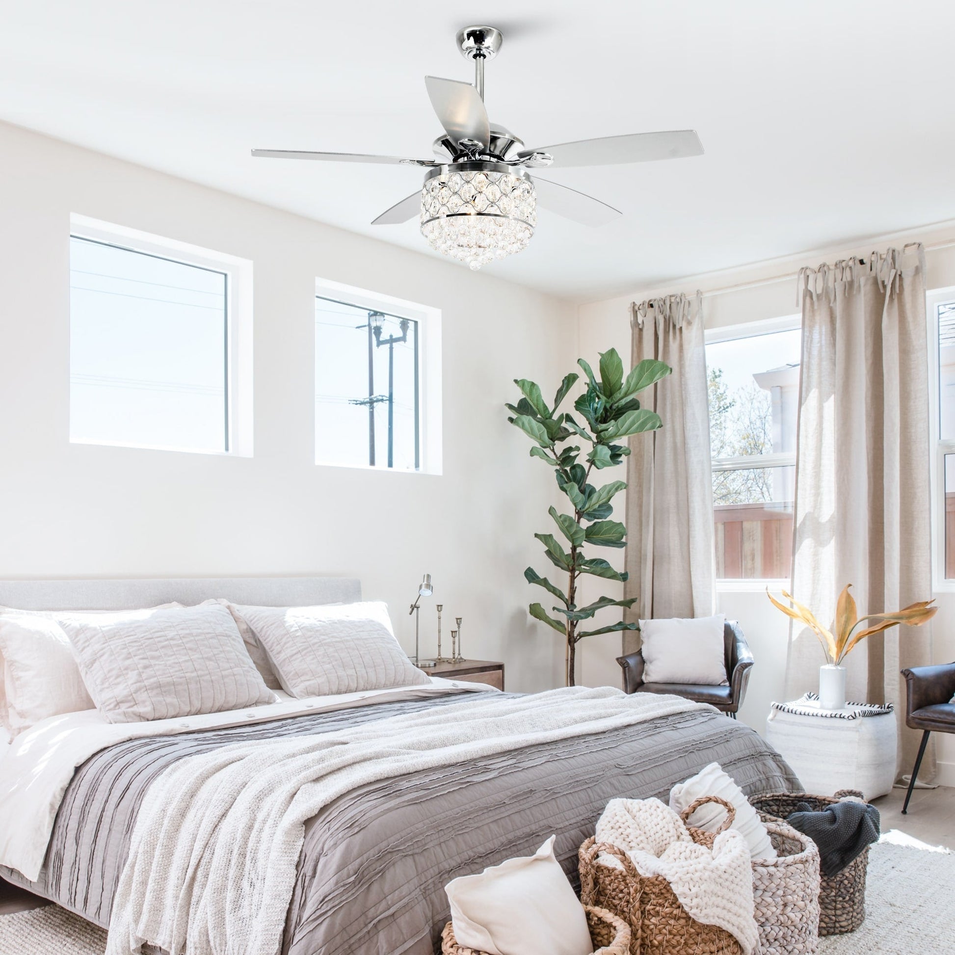 Chrome/ Crystal 4-light Chandelier/ Ceiling Fan with Remote