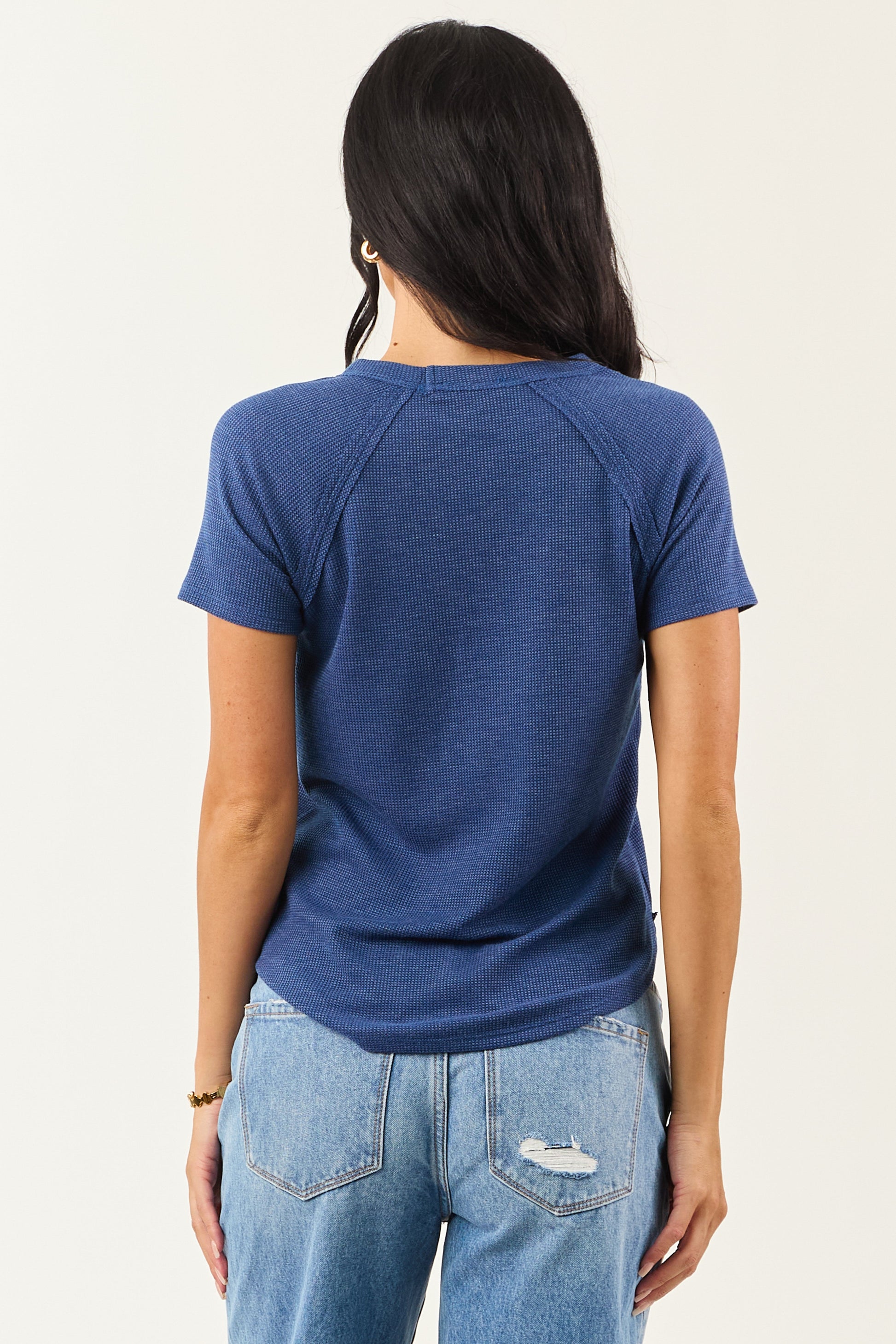 Cobalt Waffle Knit Exposed Seam Short Sleeve Top