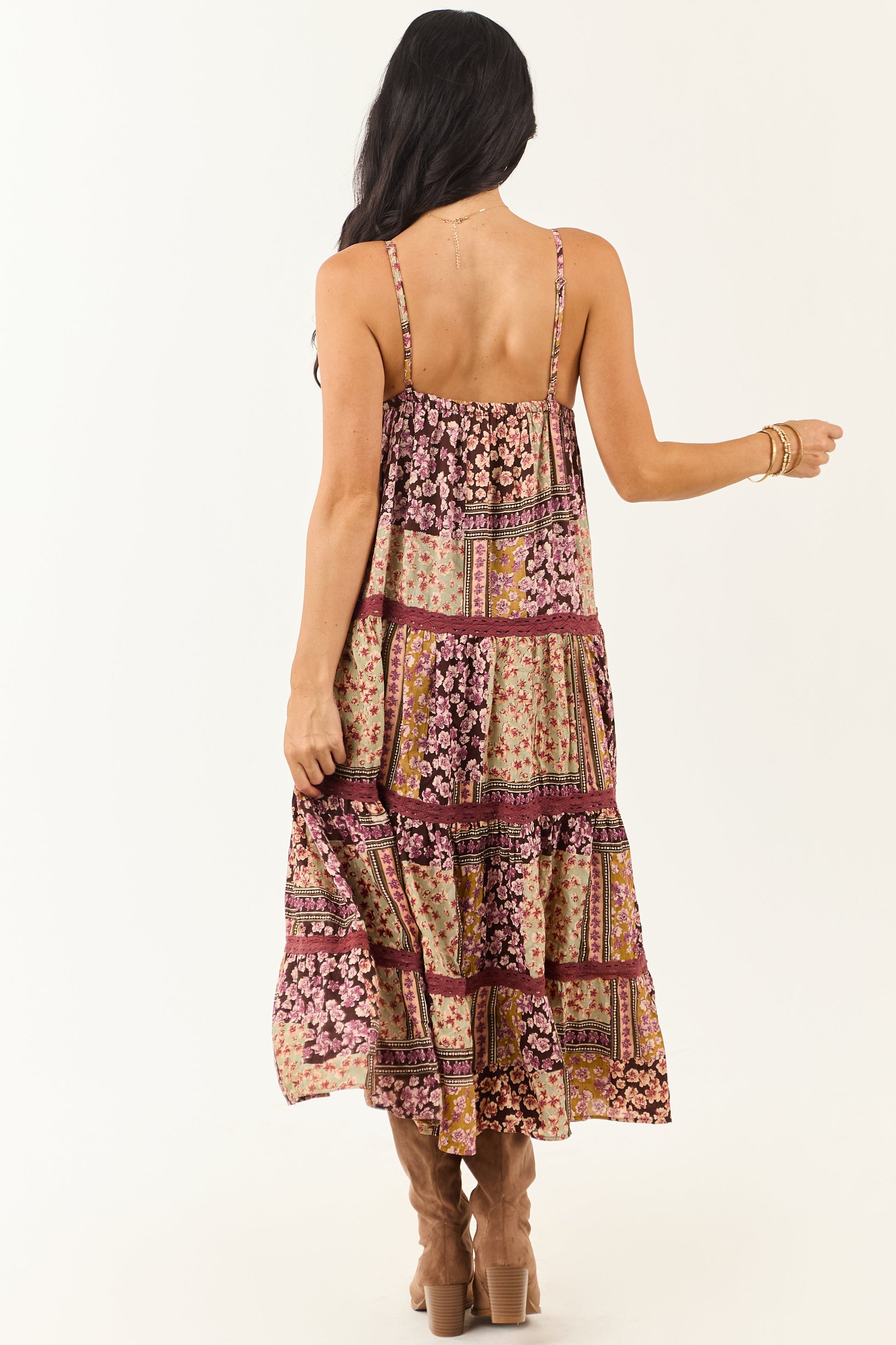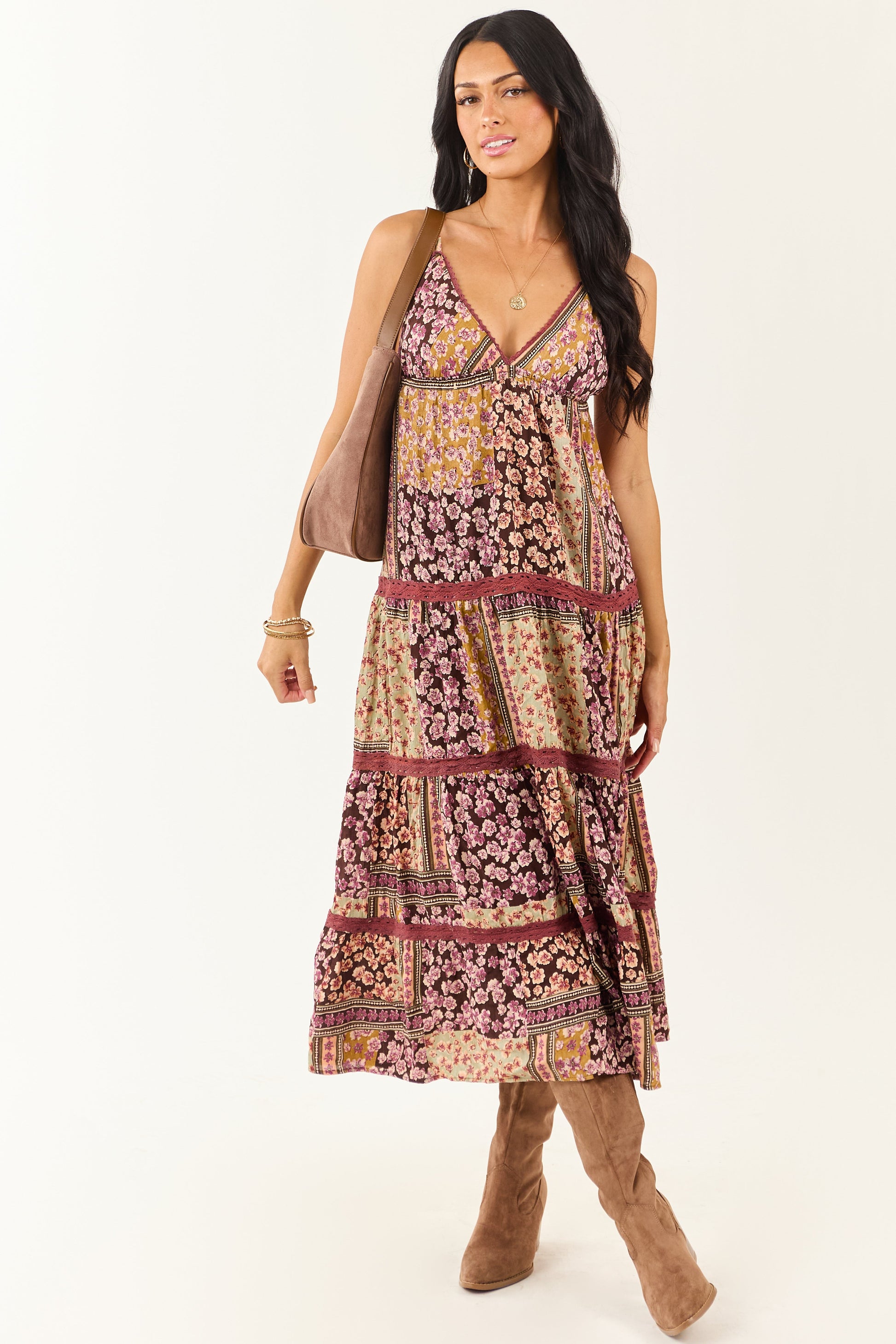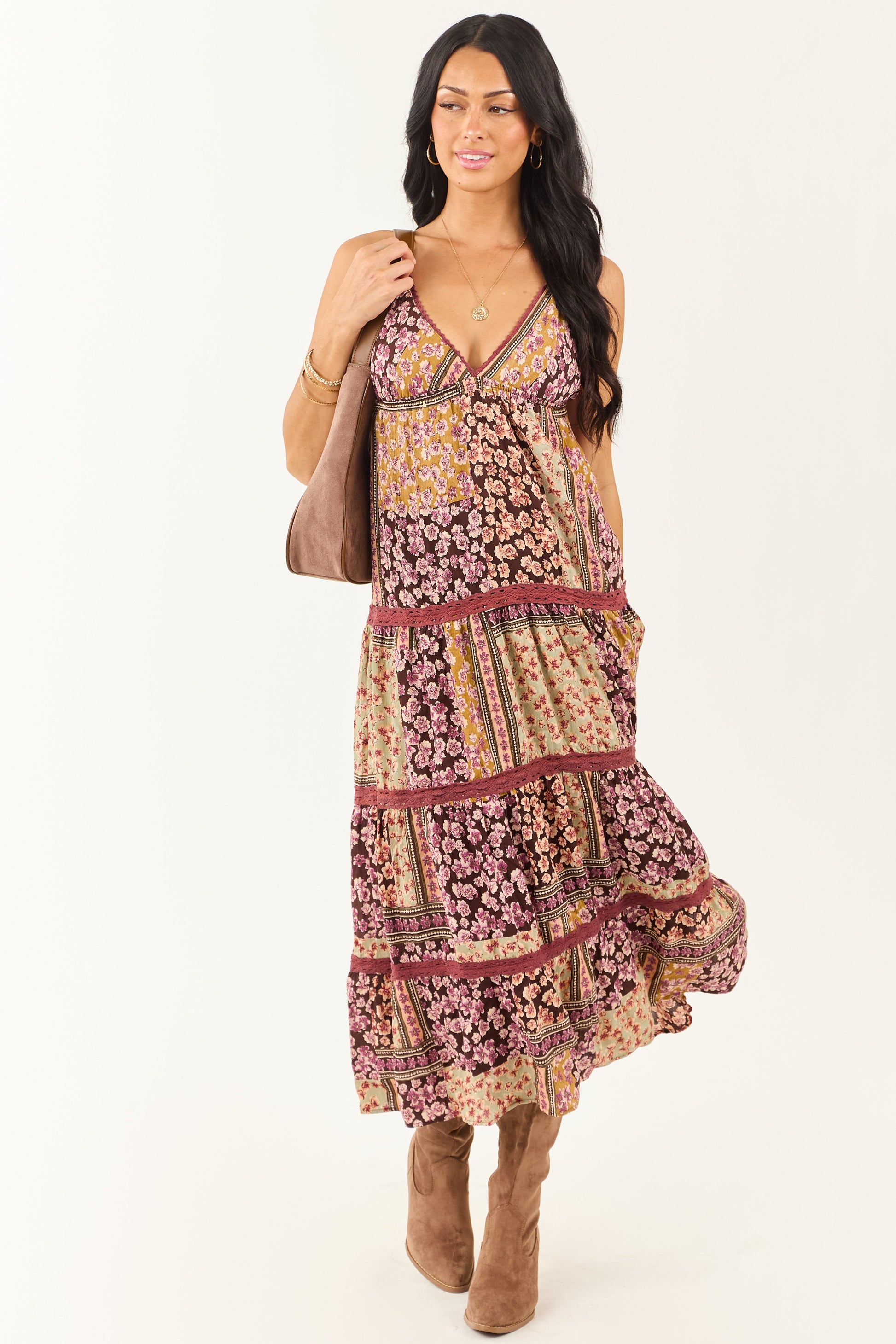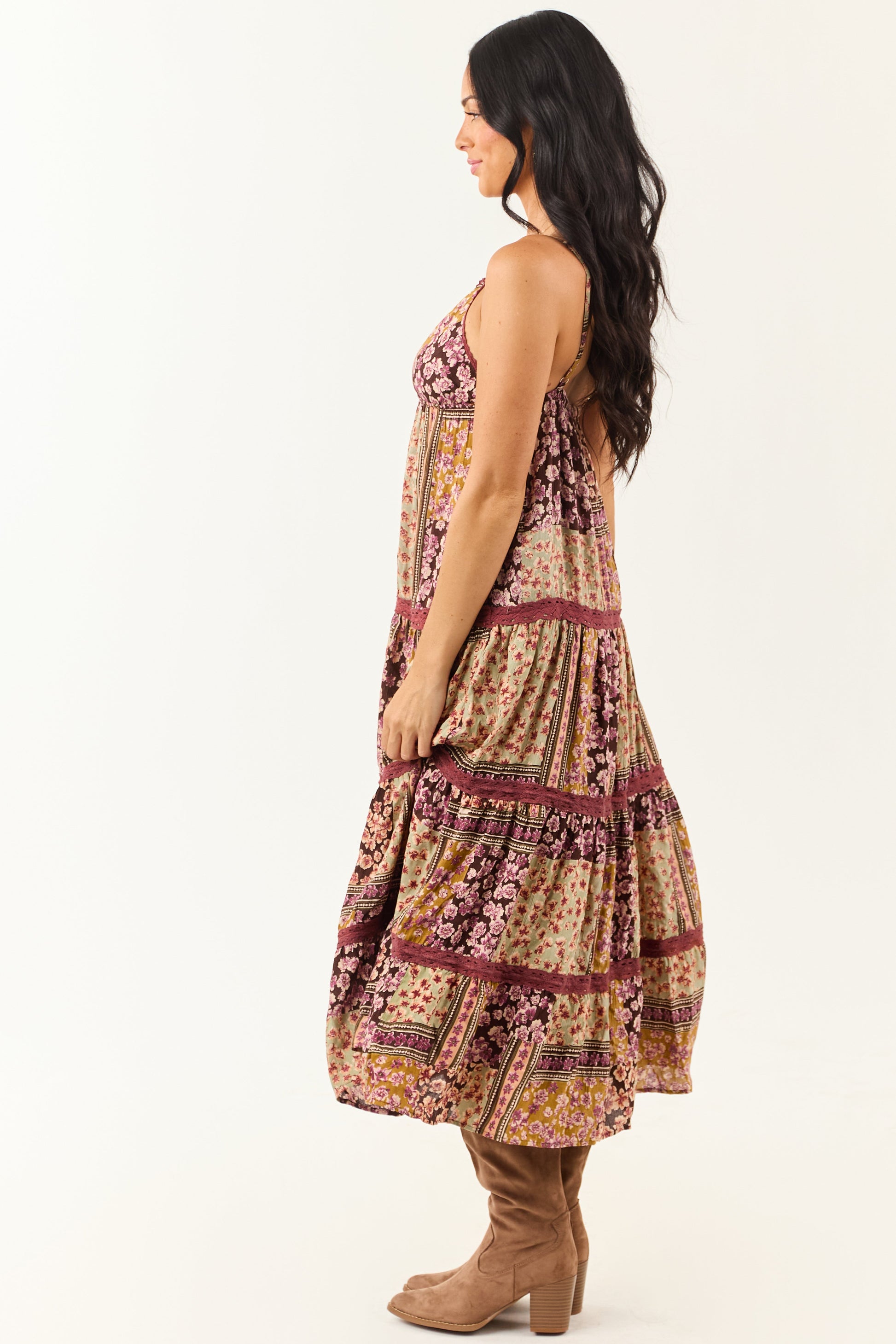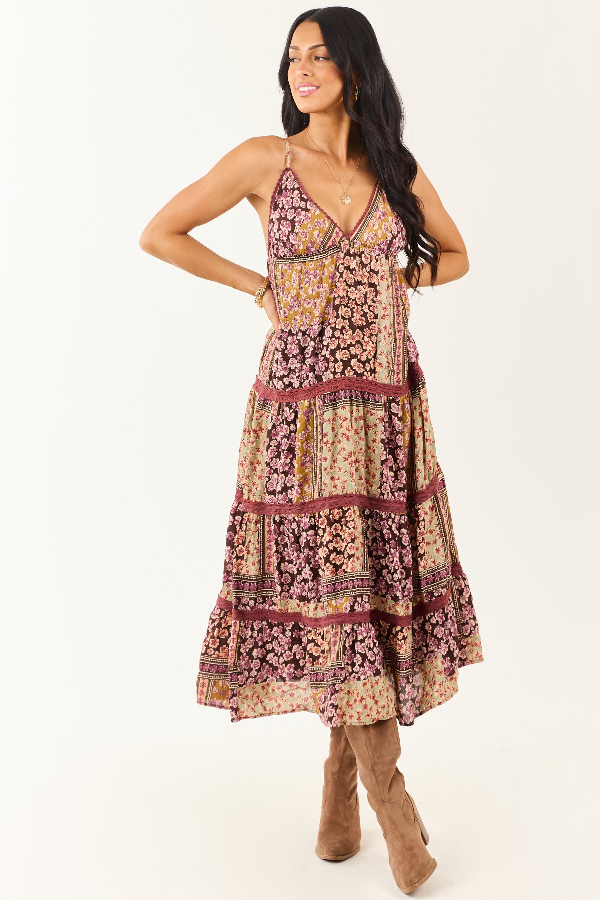 Cocoa Boho Patchwork Floral Babydoll Midi Dress