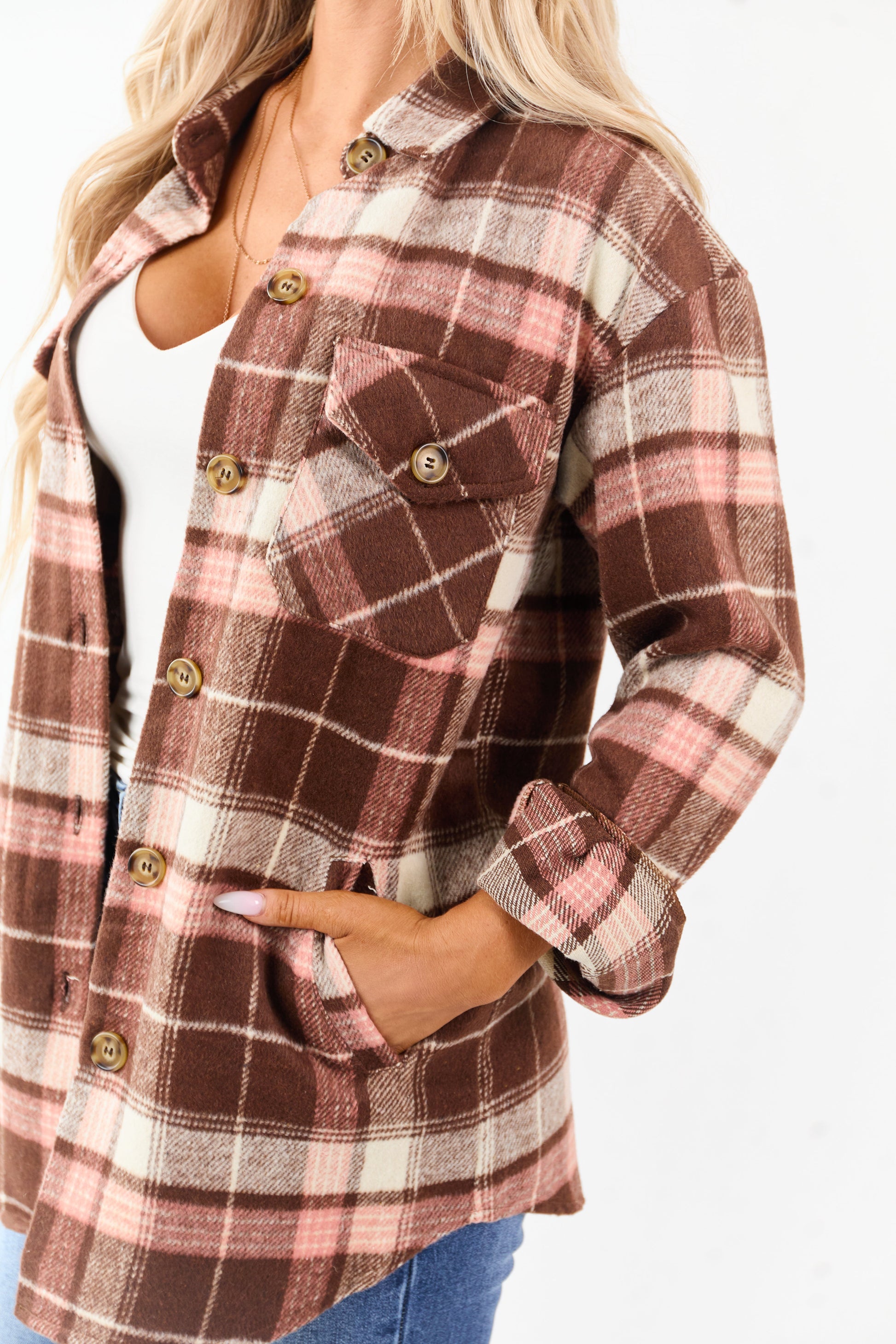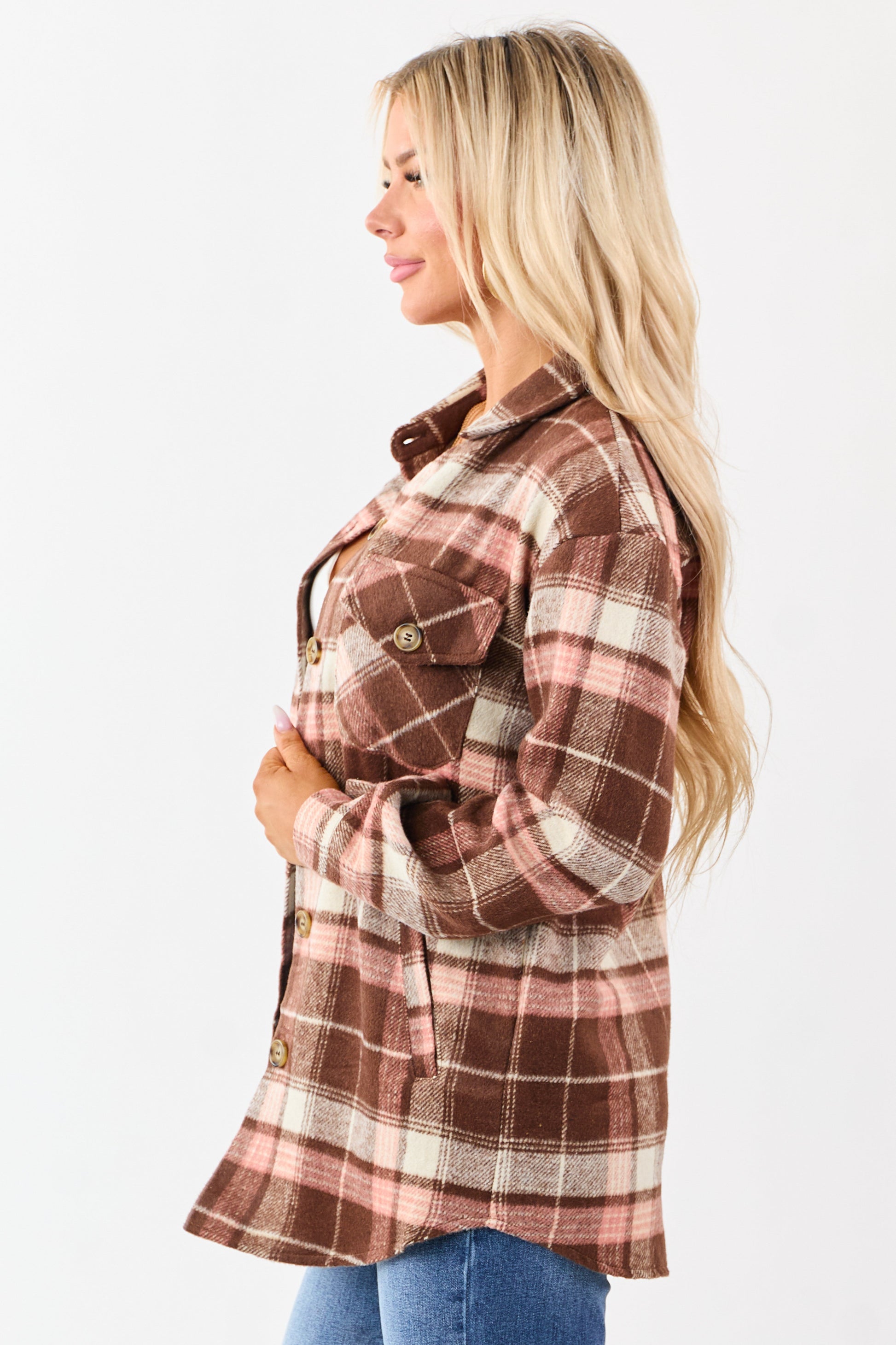 Cocoa Flannel Plaid Button Down Collared Shacket