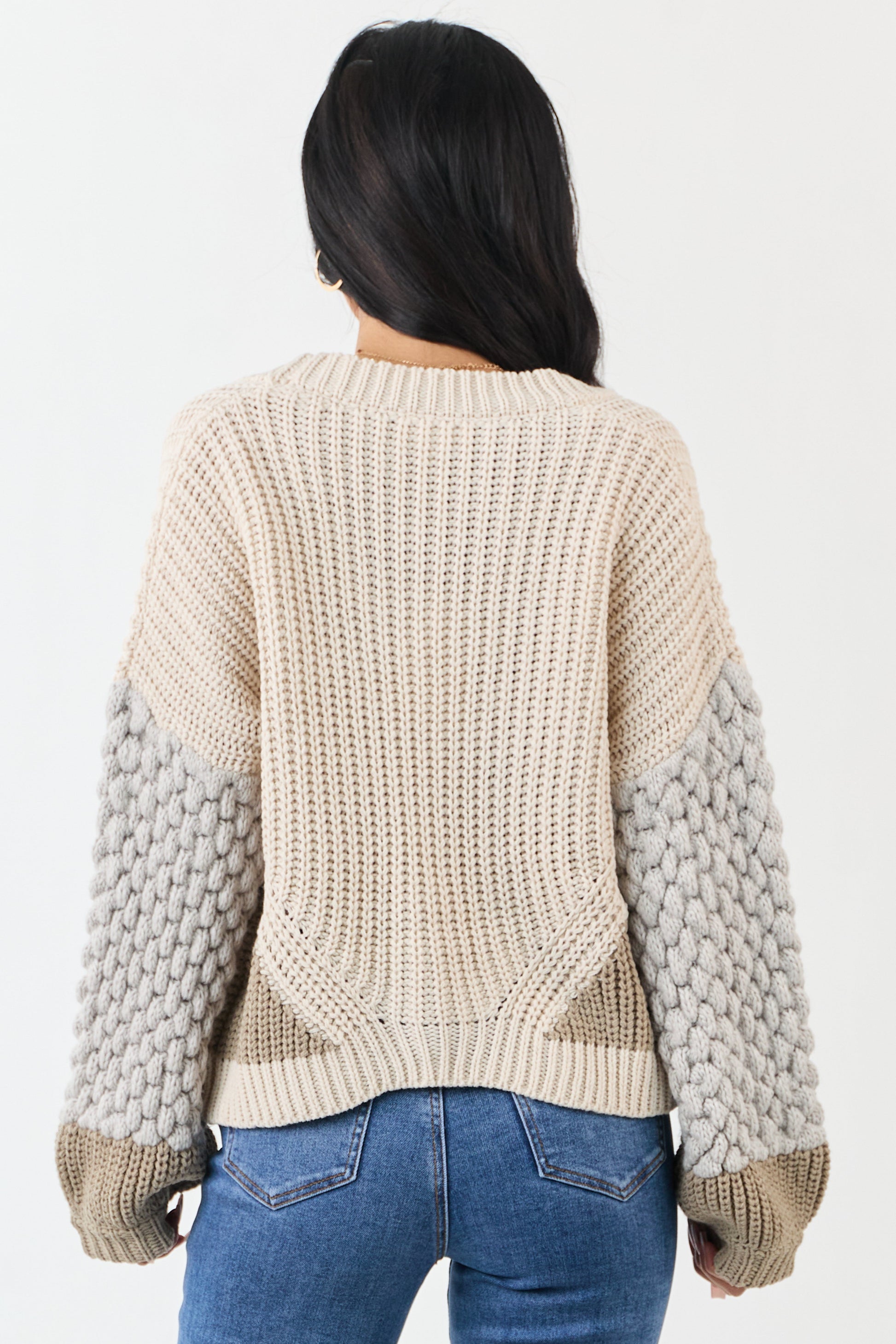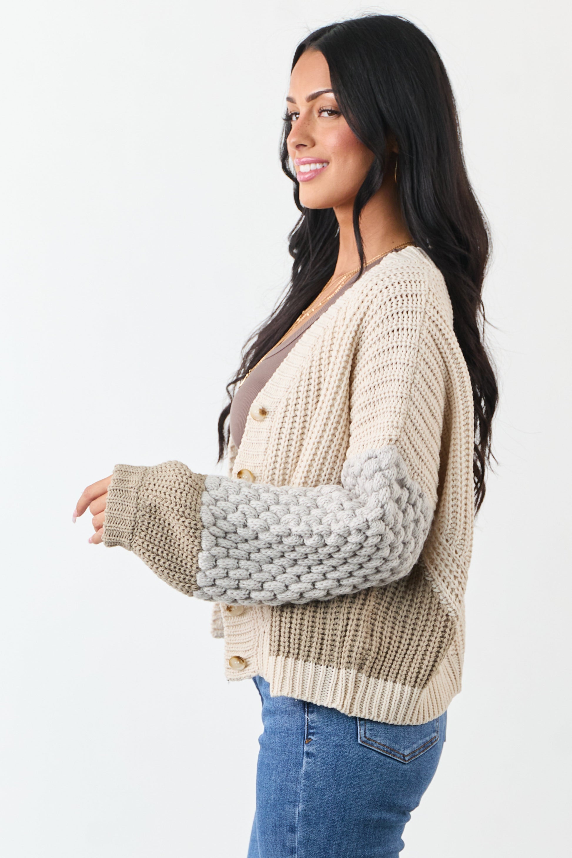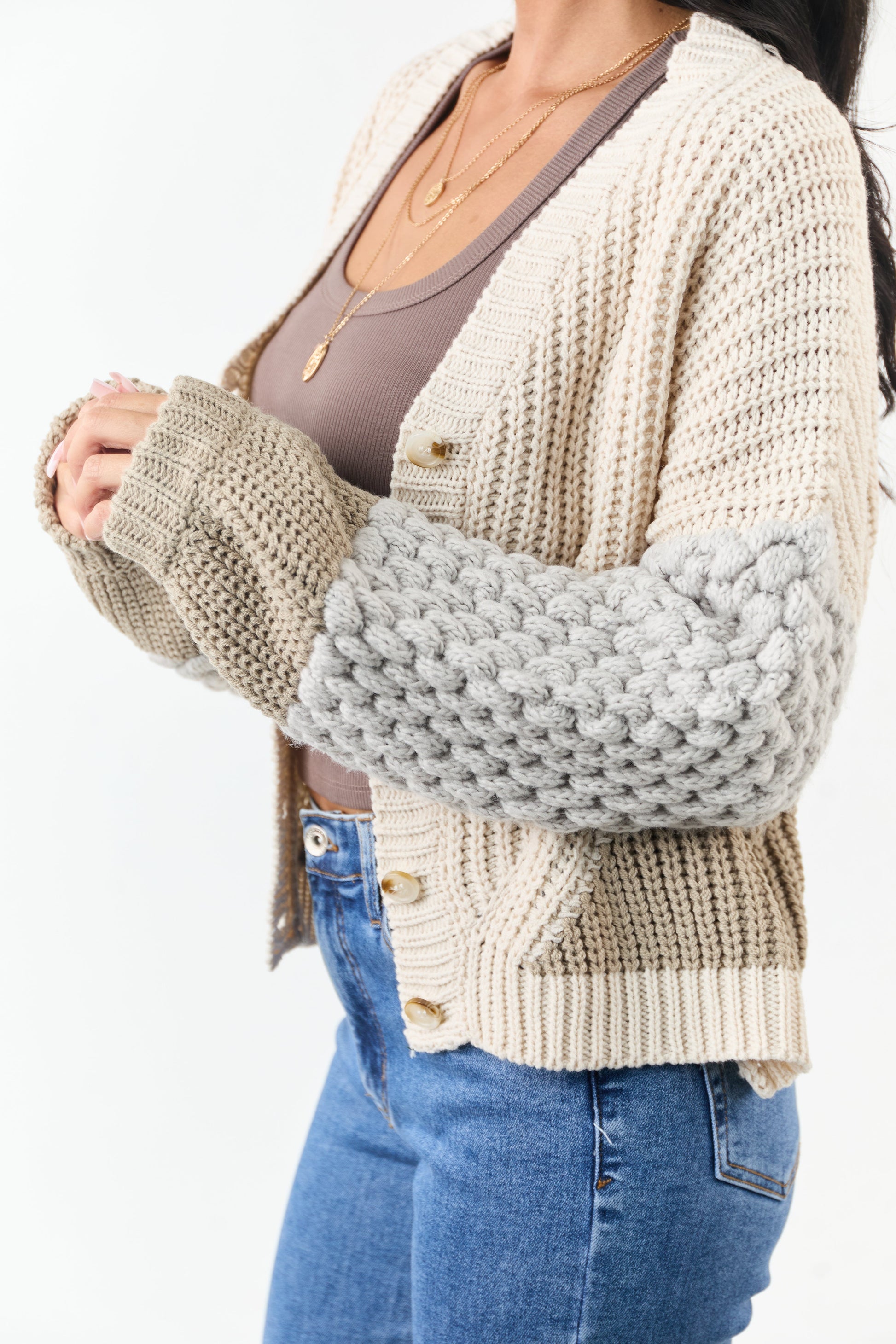 Coconut Colorblock Button Down Thick Knit Cardigan