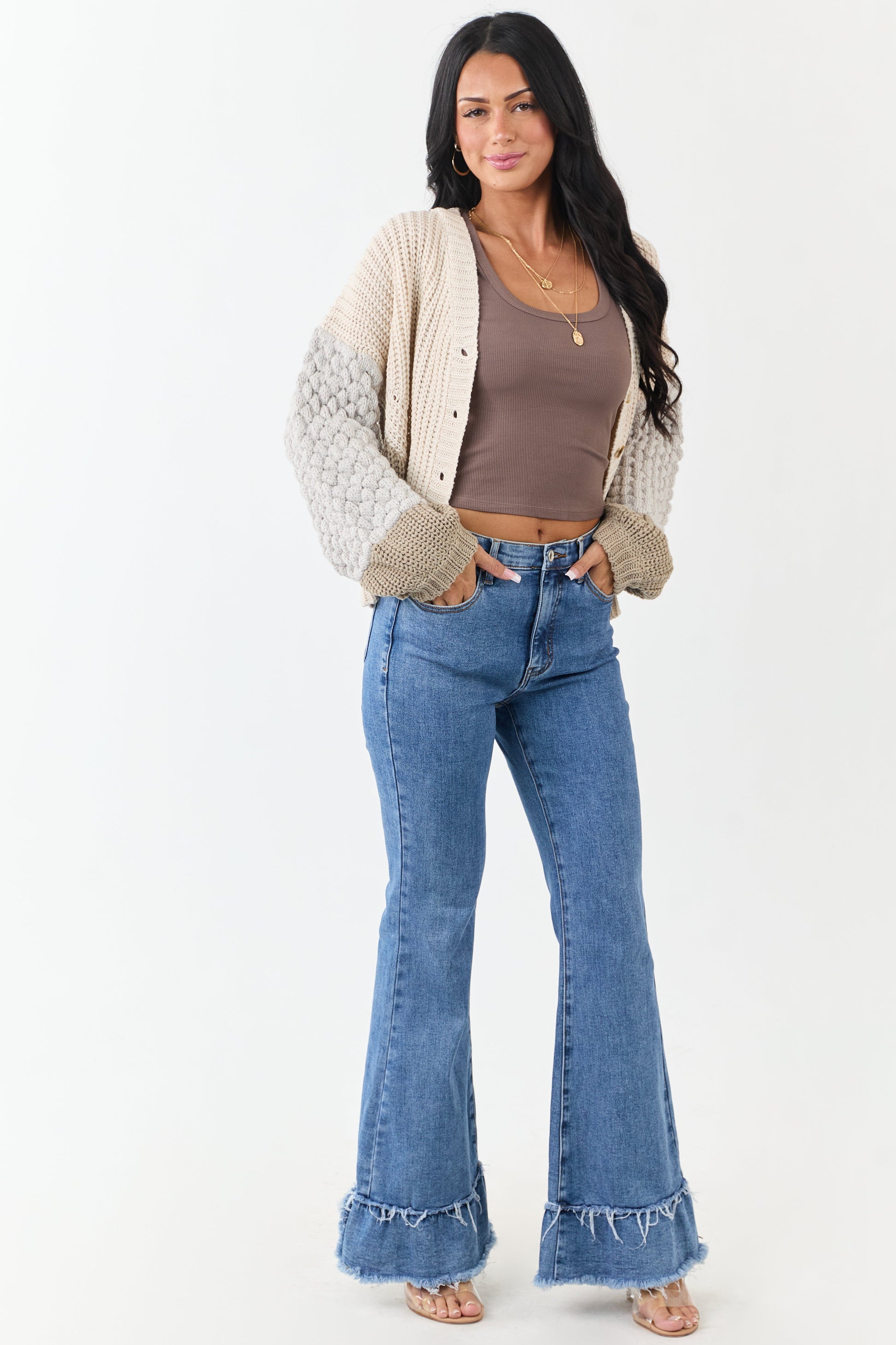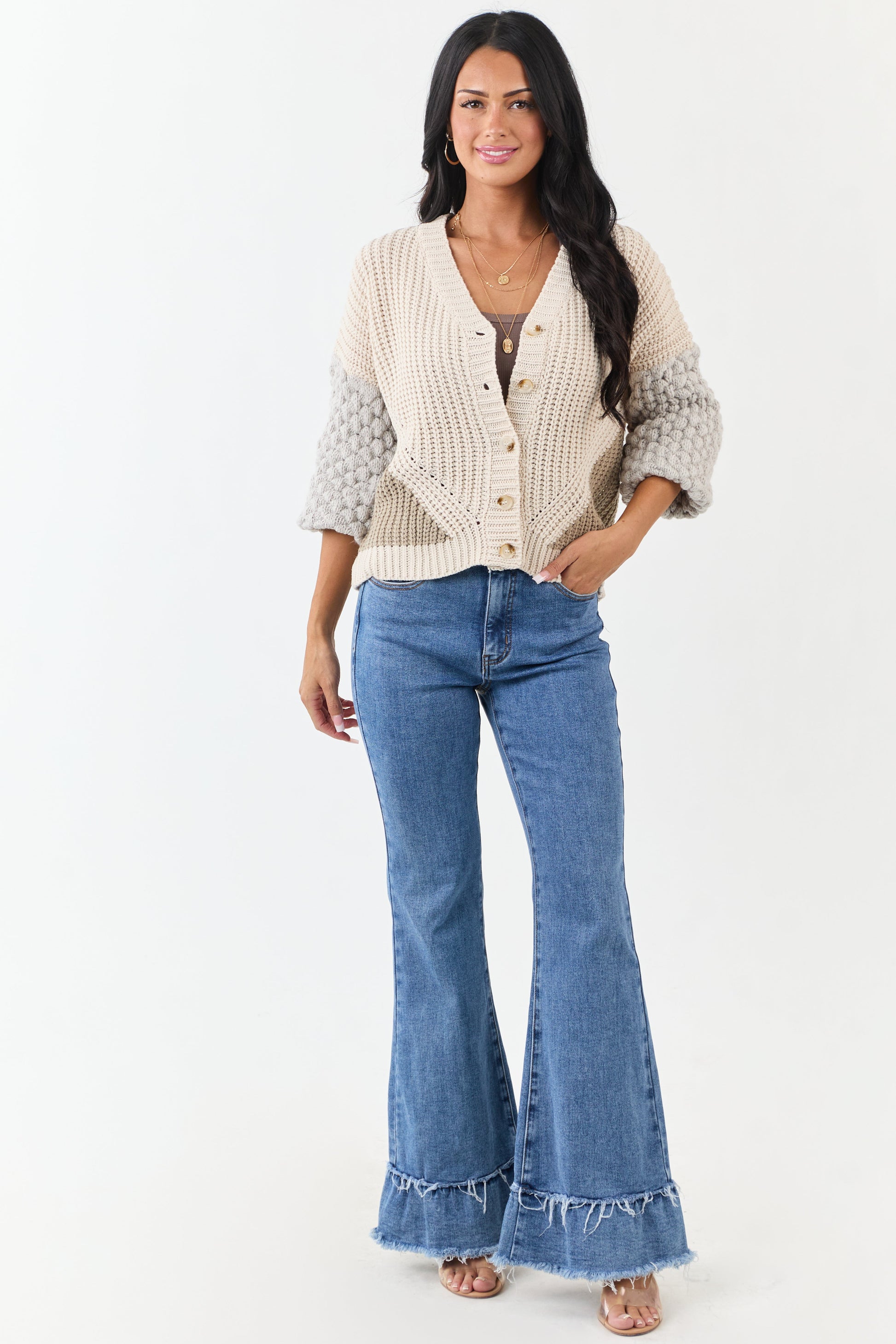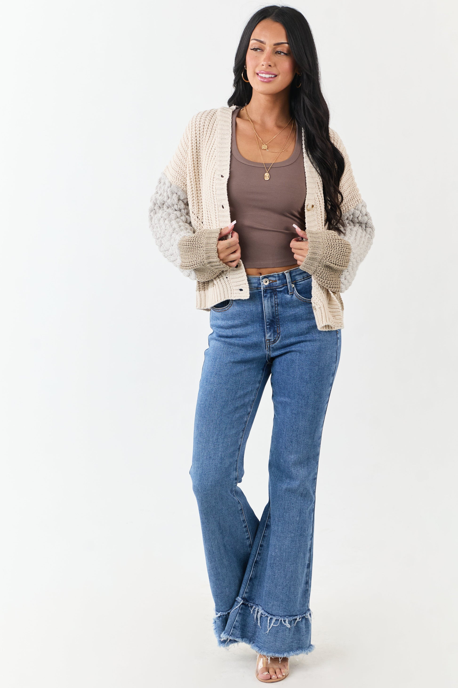 Coconut Colorblock Button Down Thick Knit Cardigan