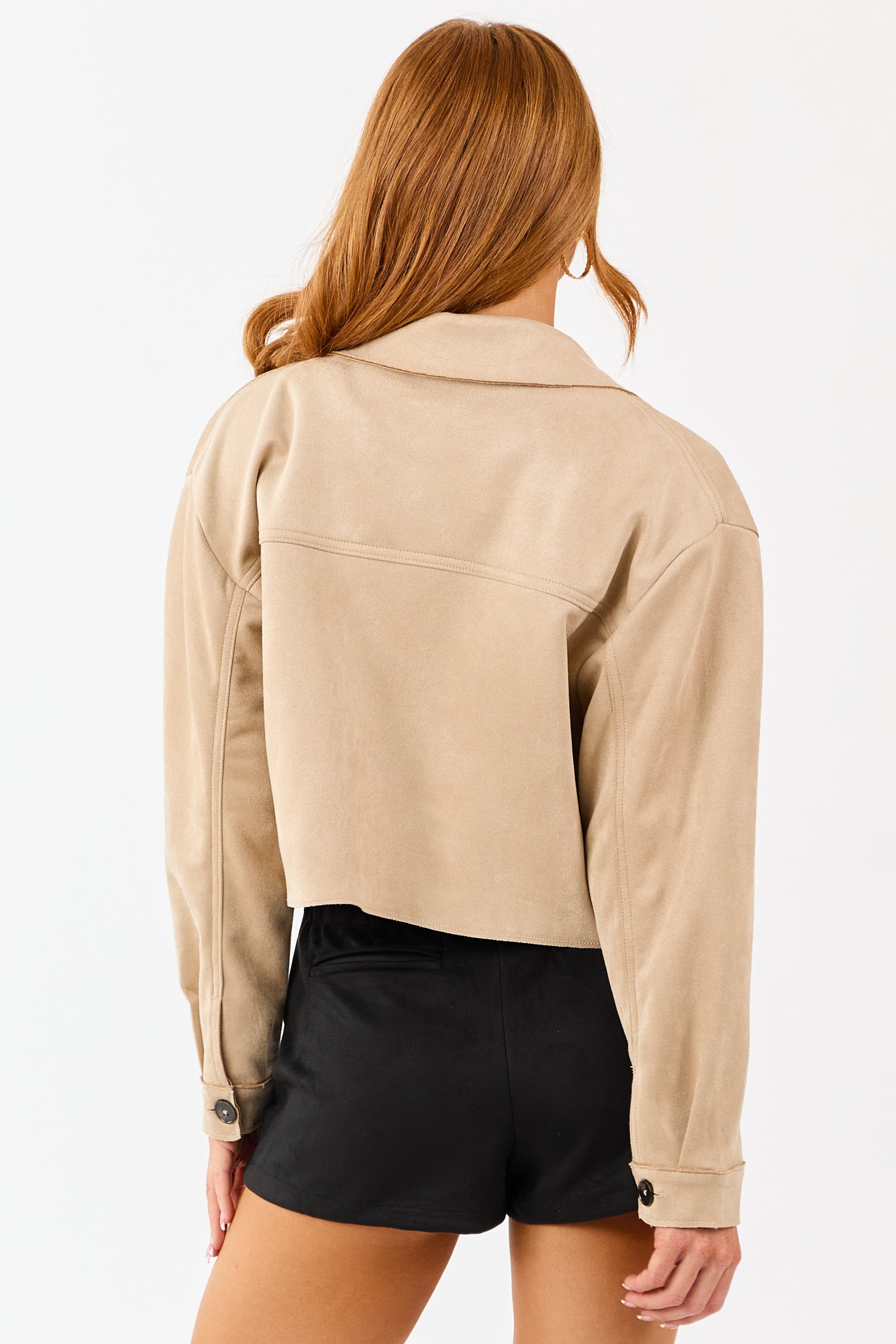 Coconut Faux Suede Button Down Collared Jacket