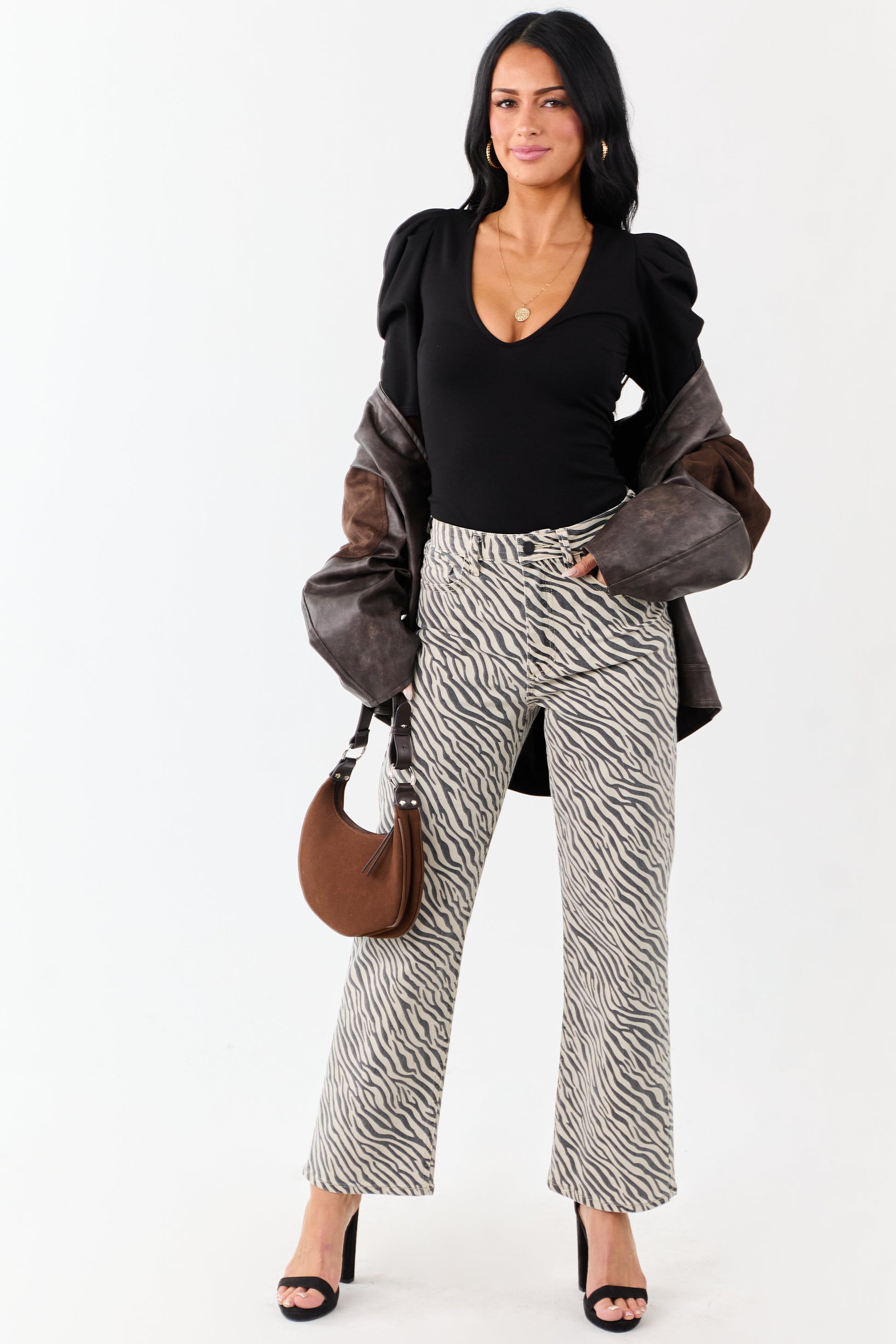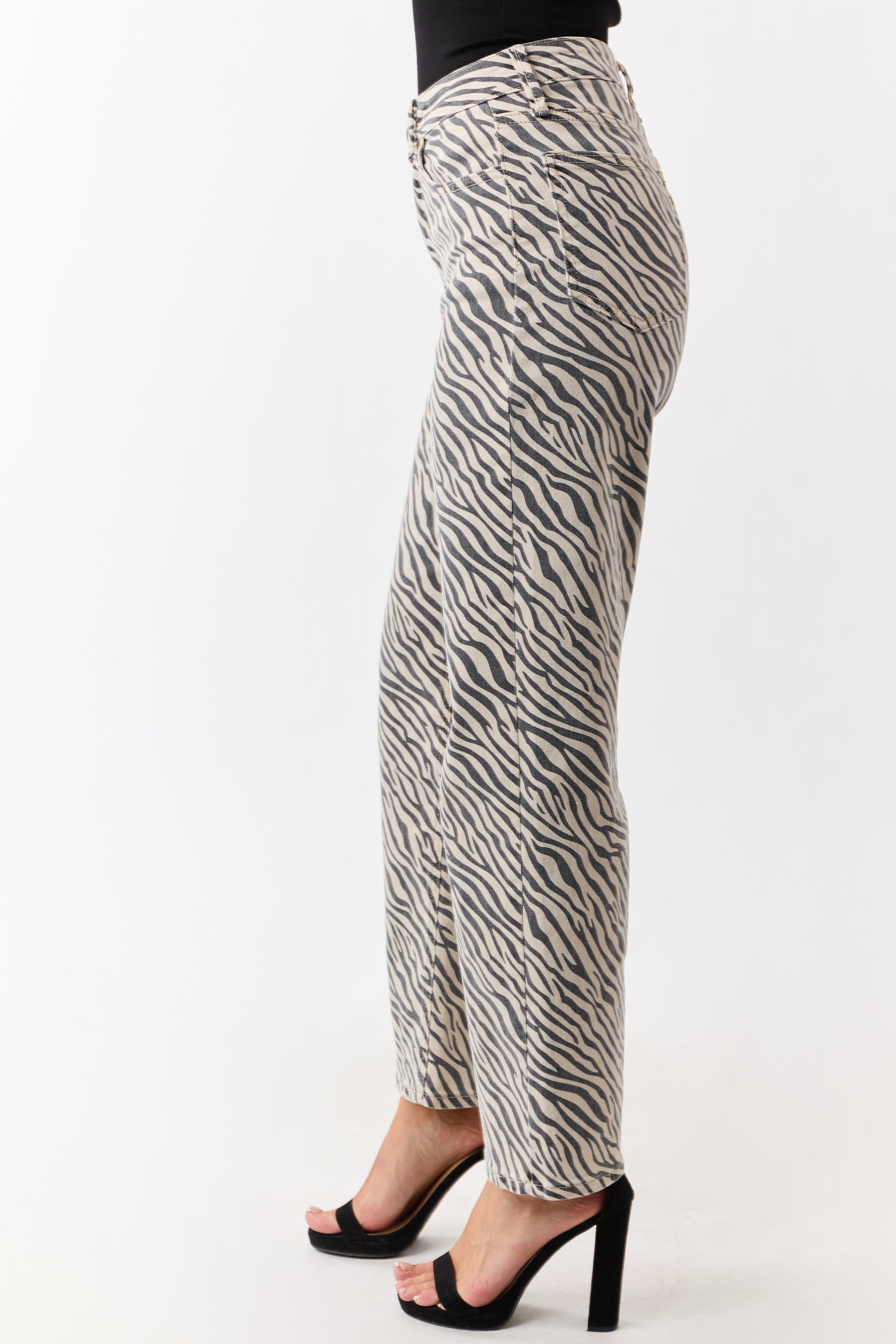 Coconut Zebra Print High Rise Straight Stretchy Jeans