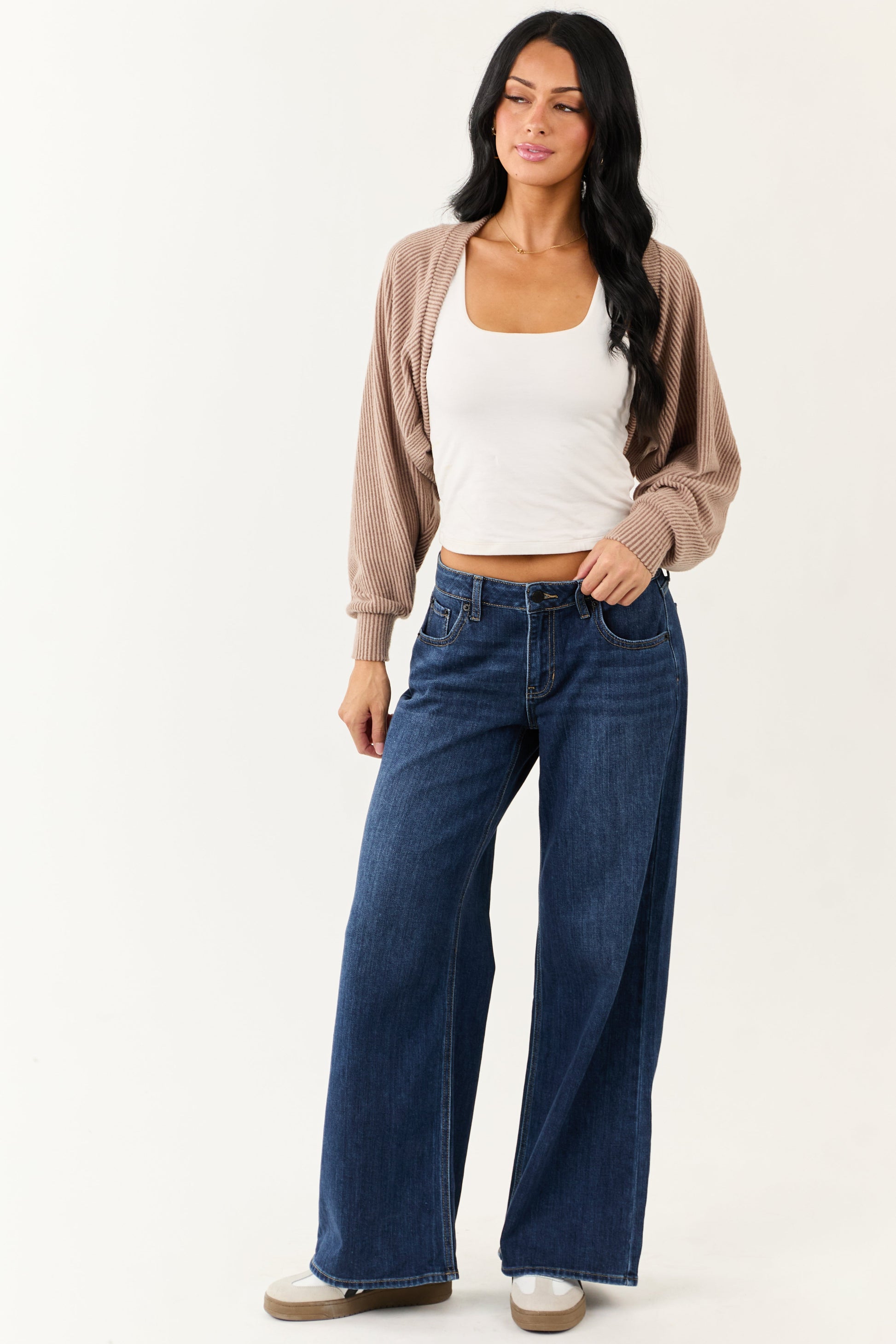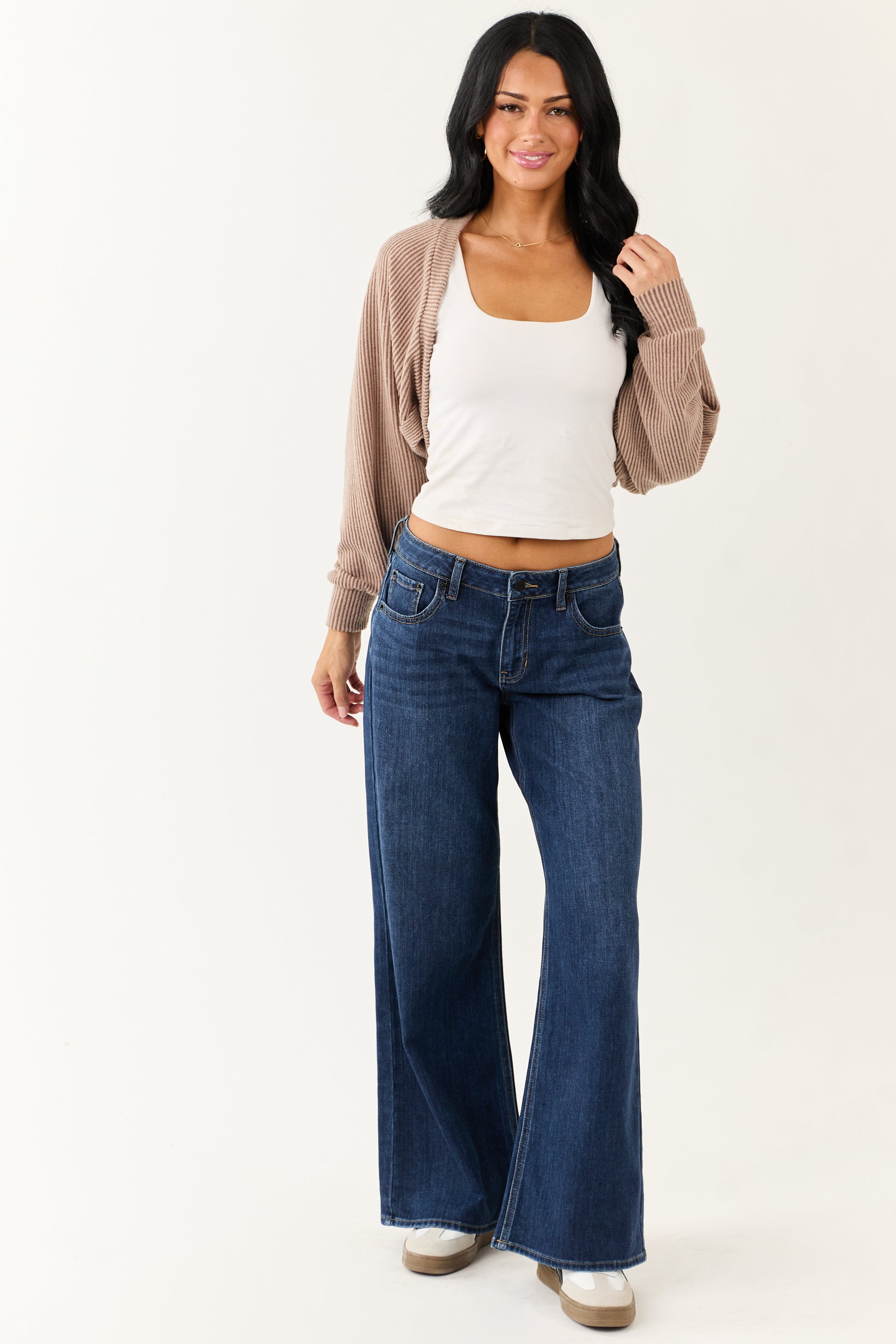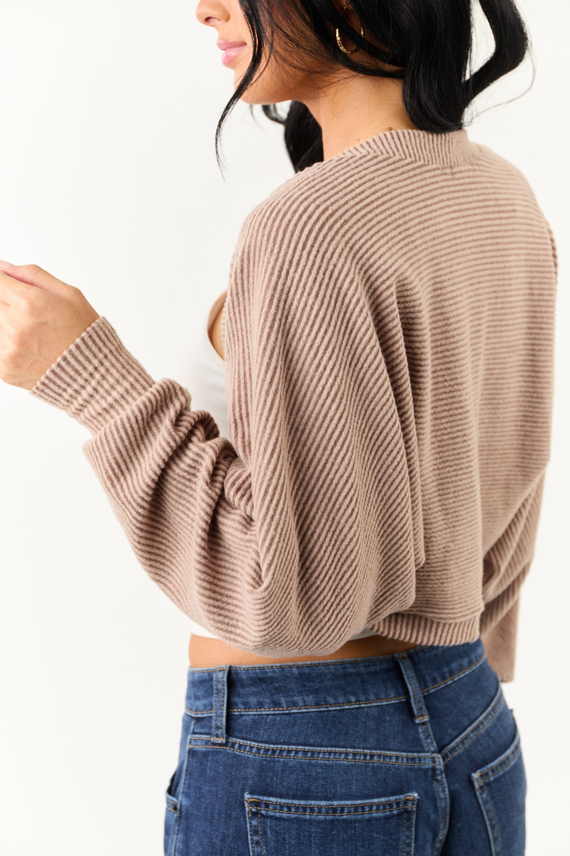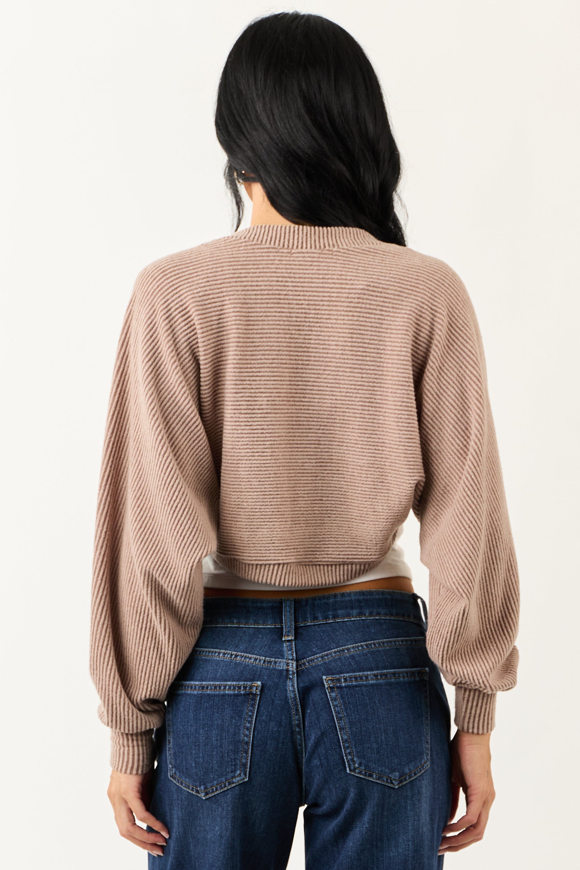 Coffee Open Front Soft Ribbed Shrug Cardigan