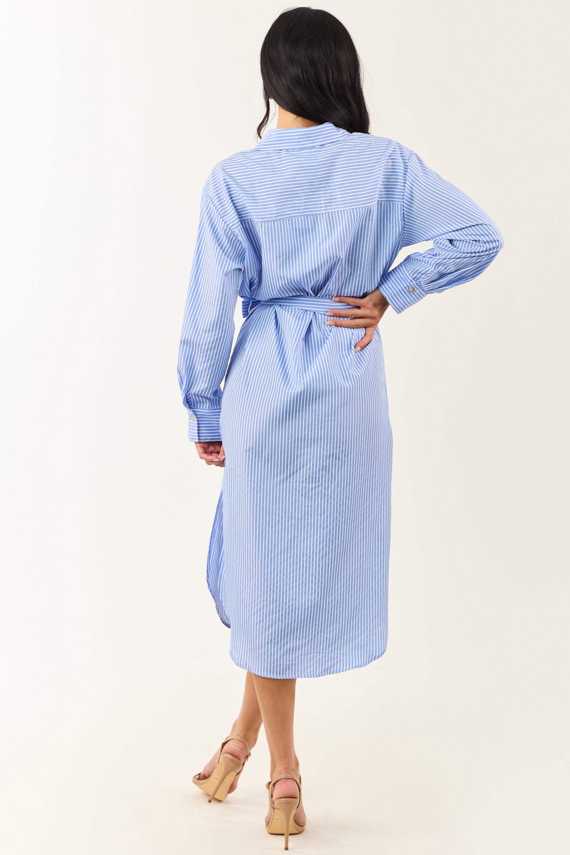 Cornflower and Ivory Striped Button Up Midi Dress
