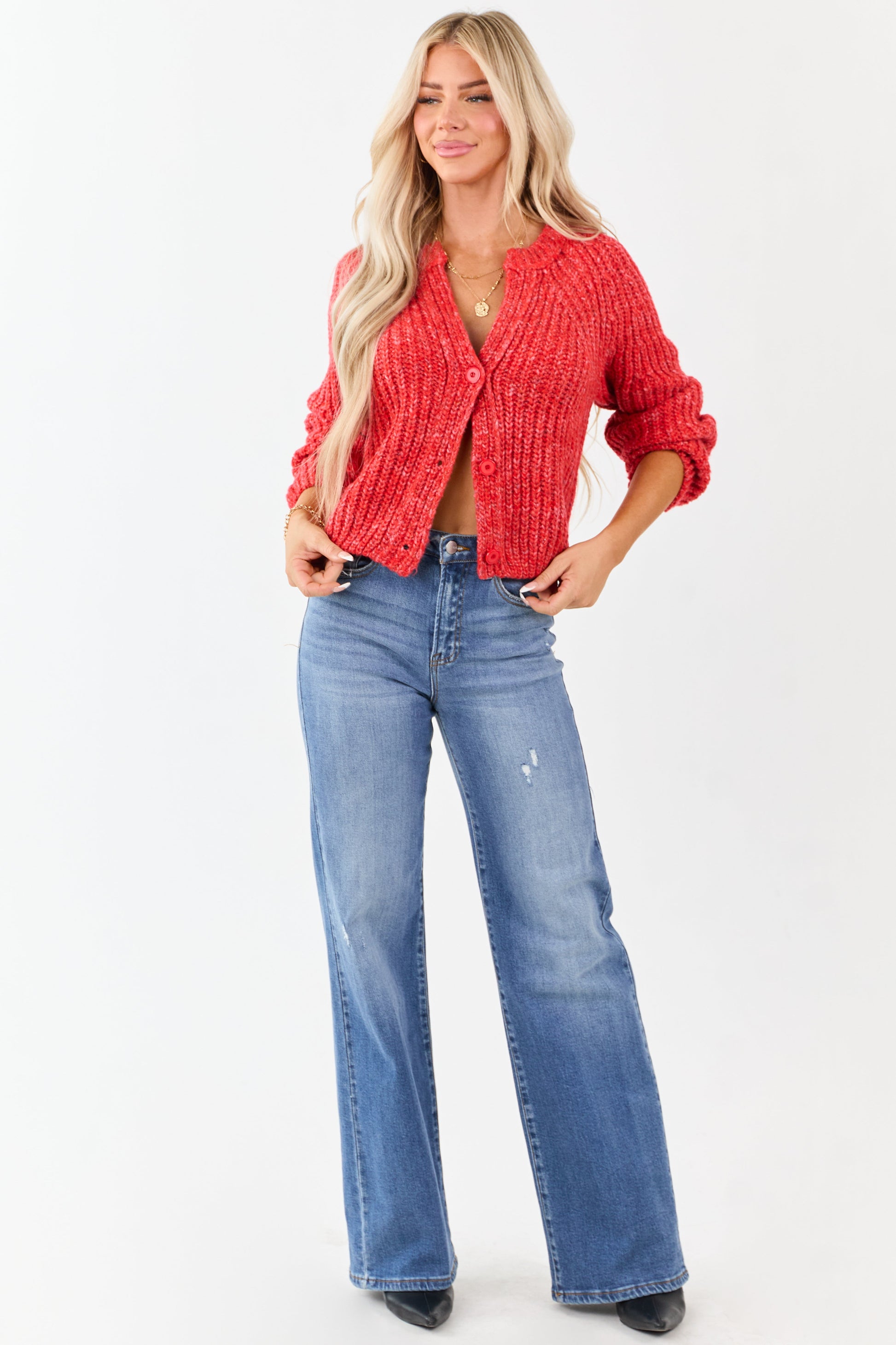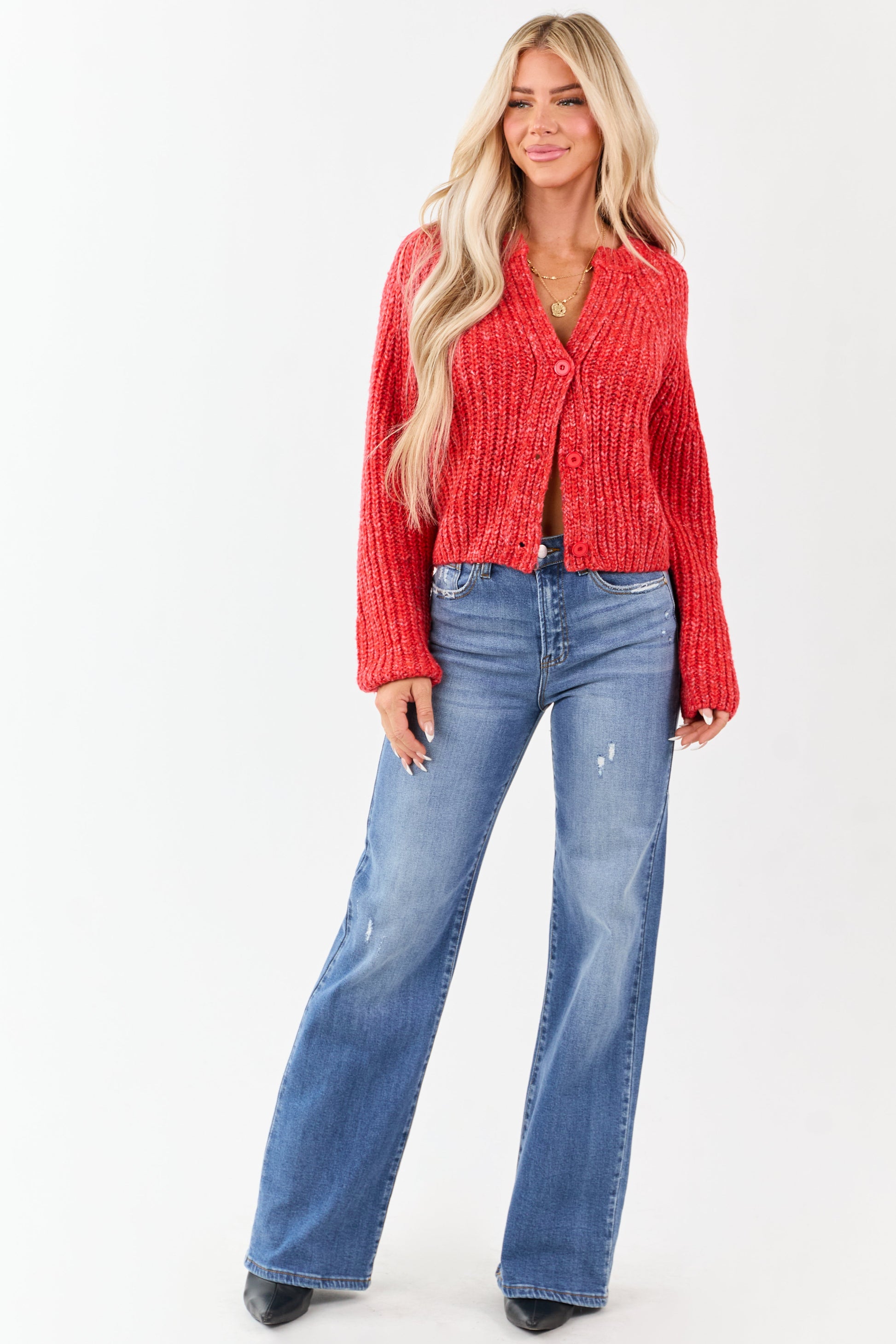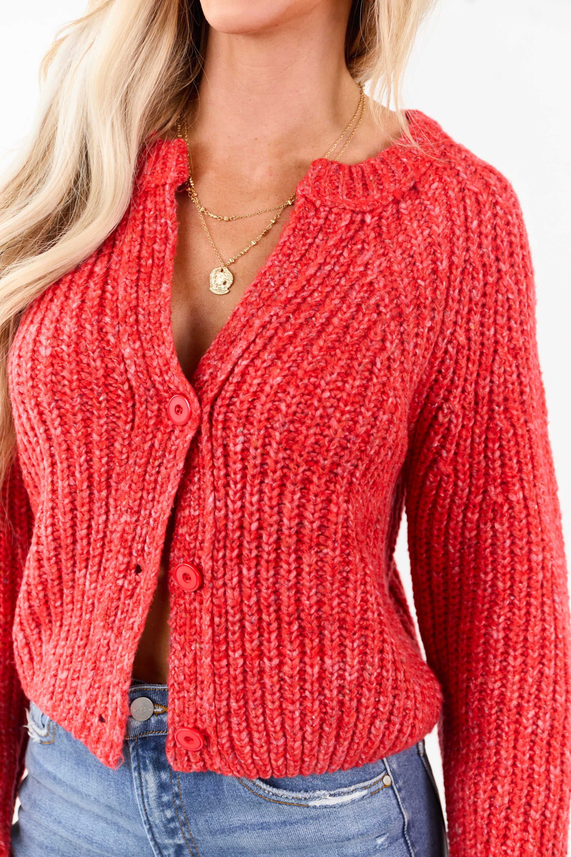 Scarlet Ribbed Knit Button Up Cardigan
