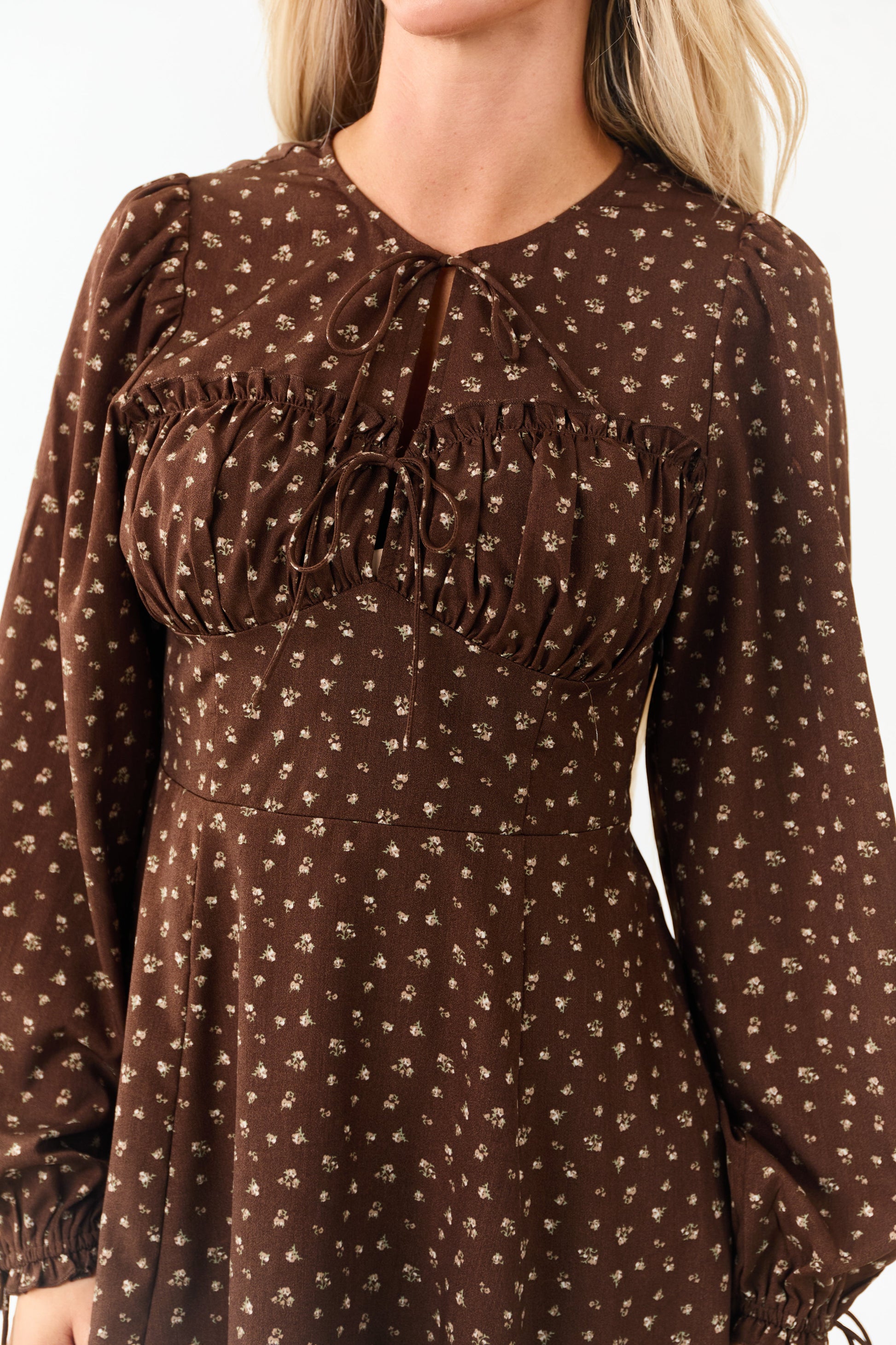 Sepia Ditsy Floral Print Puff Sleeve Mini Dress