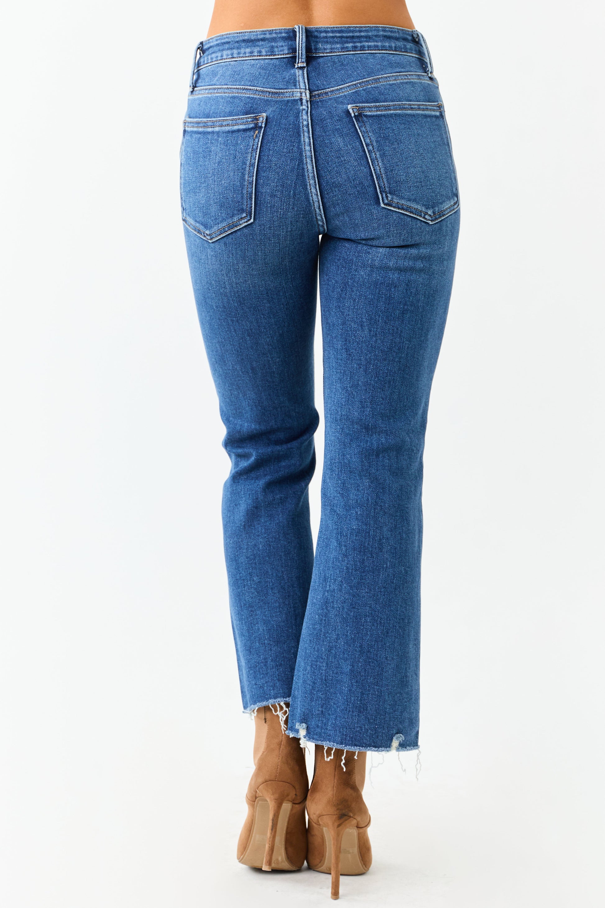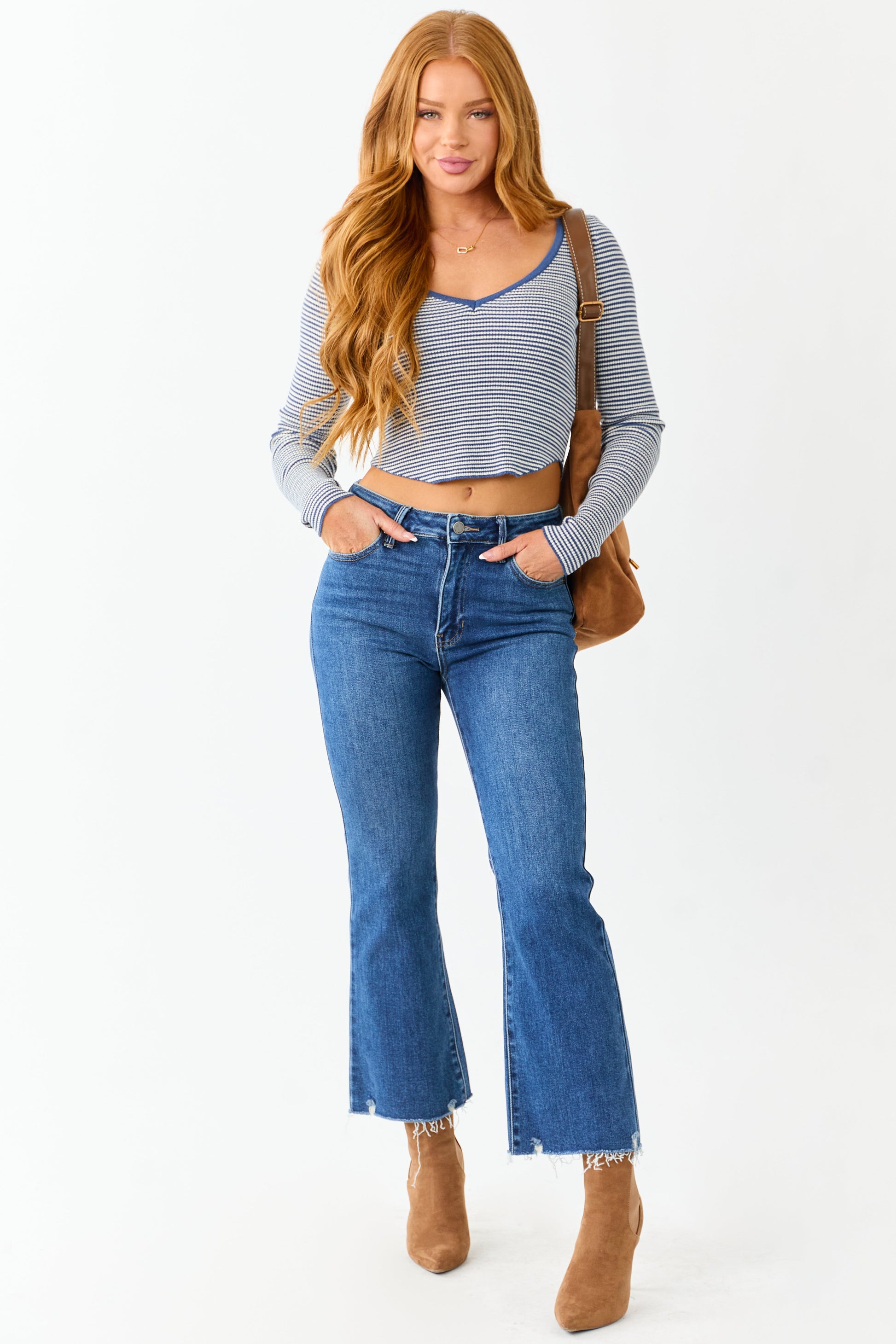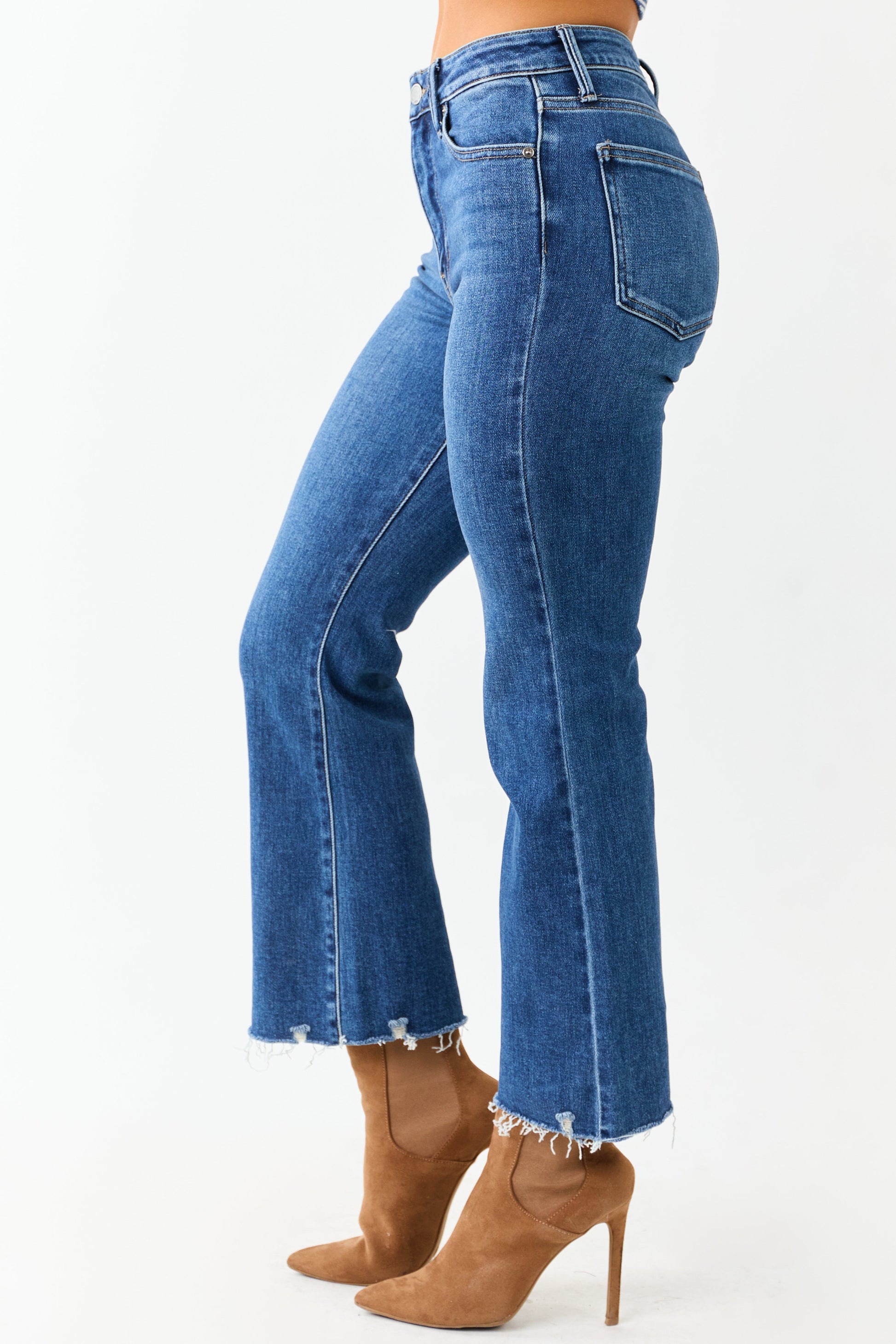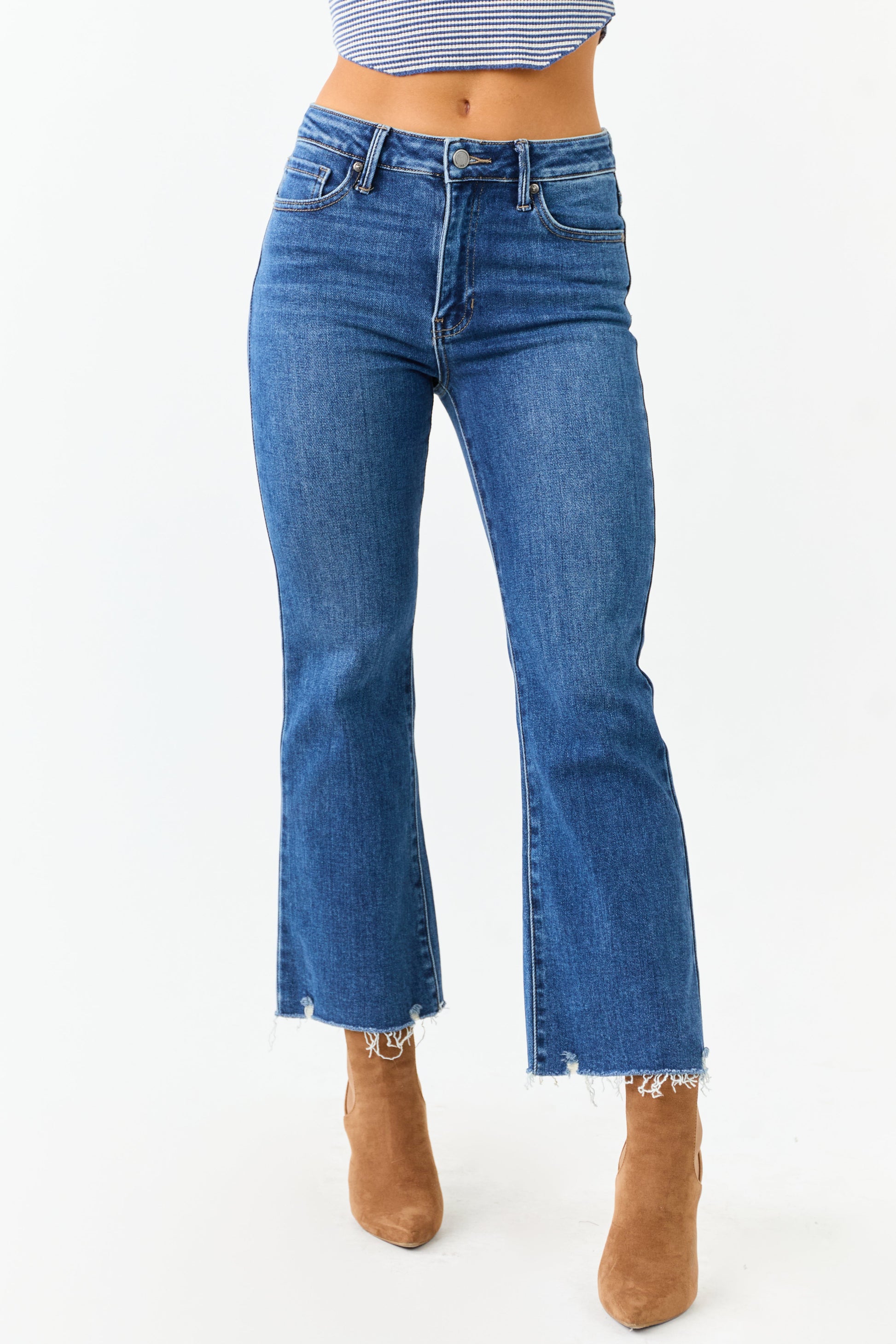 Dark Wash High Rise Cropped Flare Stretchy Jeans