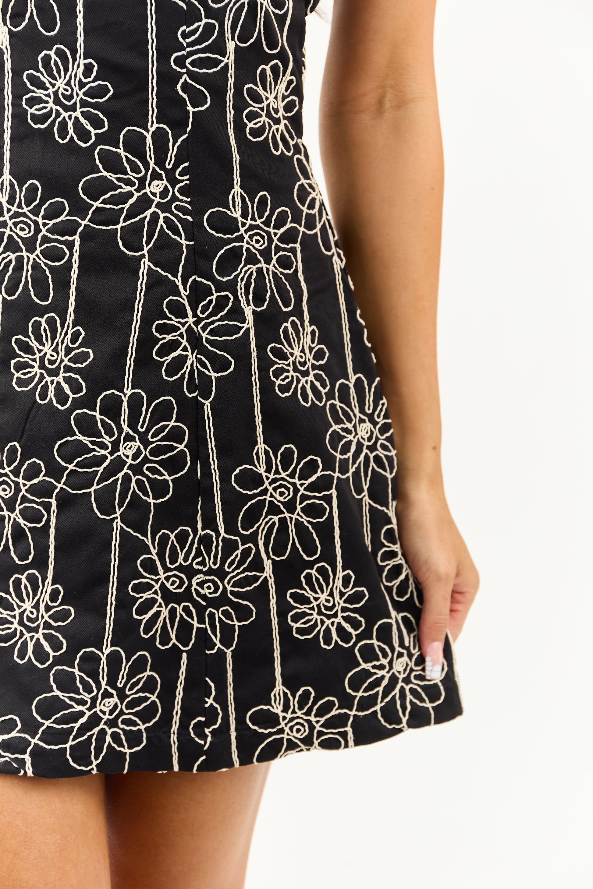 Black Raised Floral Embroidery Sleeveless Mini Dress