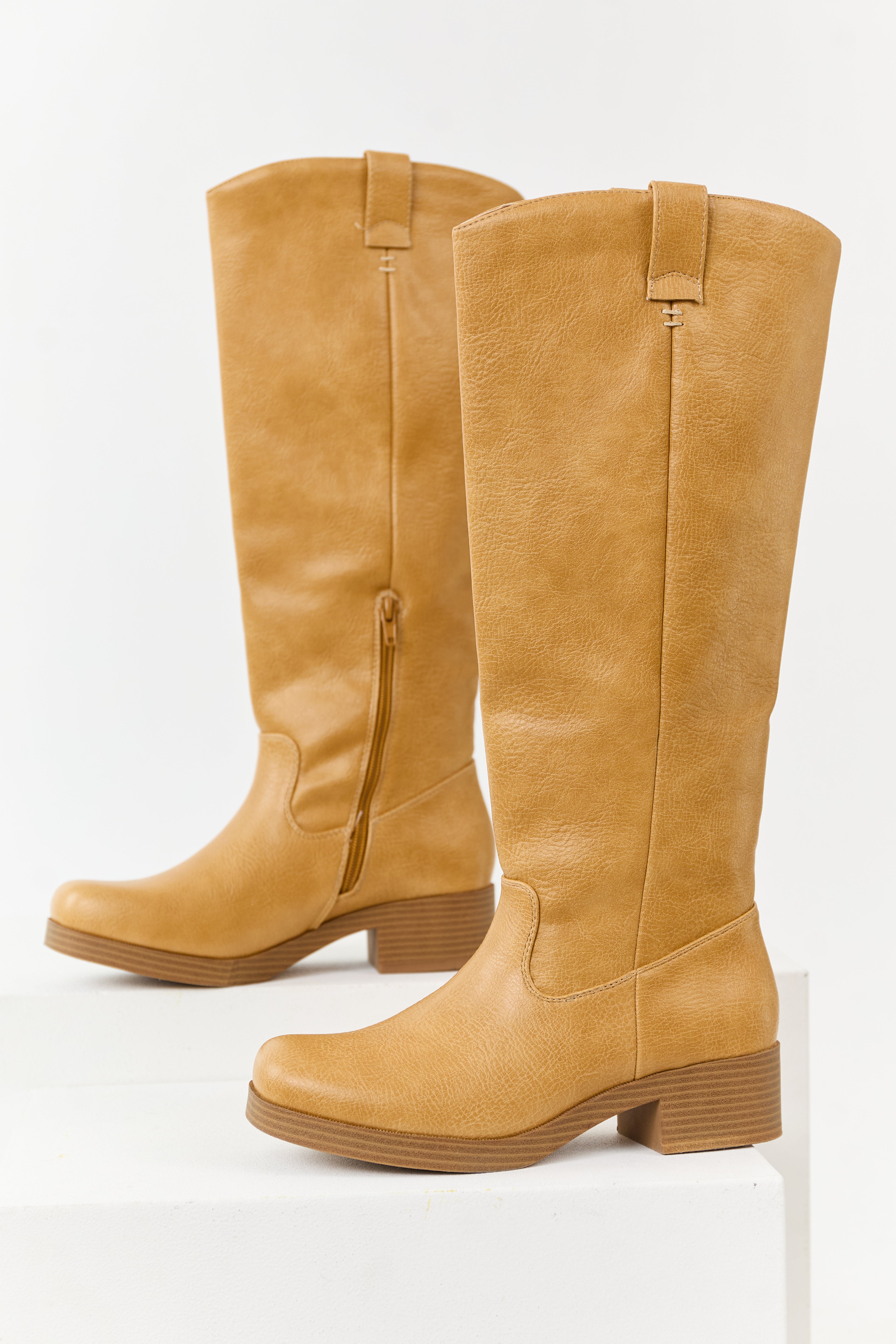 • These tall boots feature a rich neutral hue and timeless silhouette for head-turning fall-to-winter style.