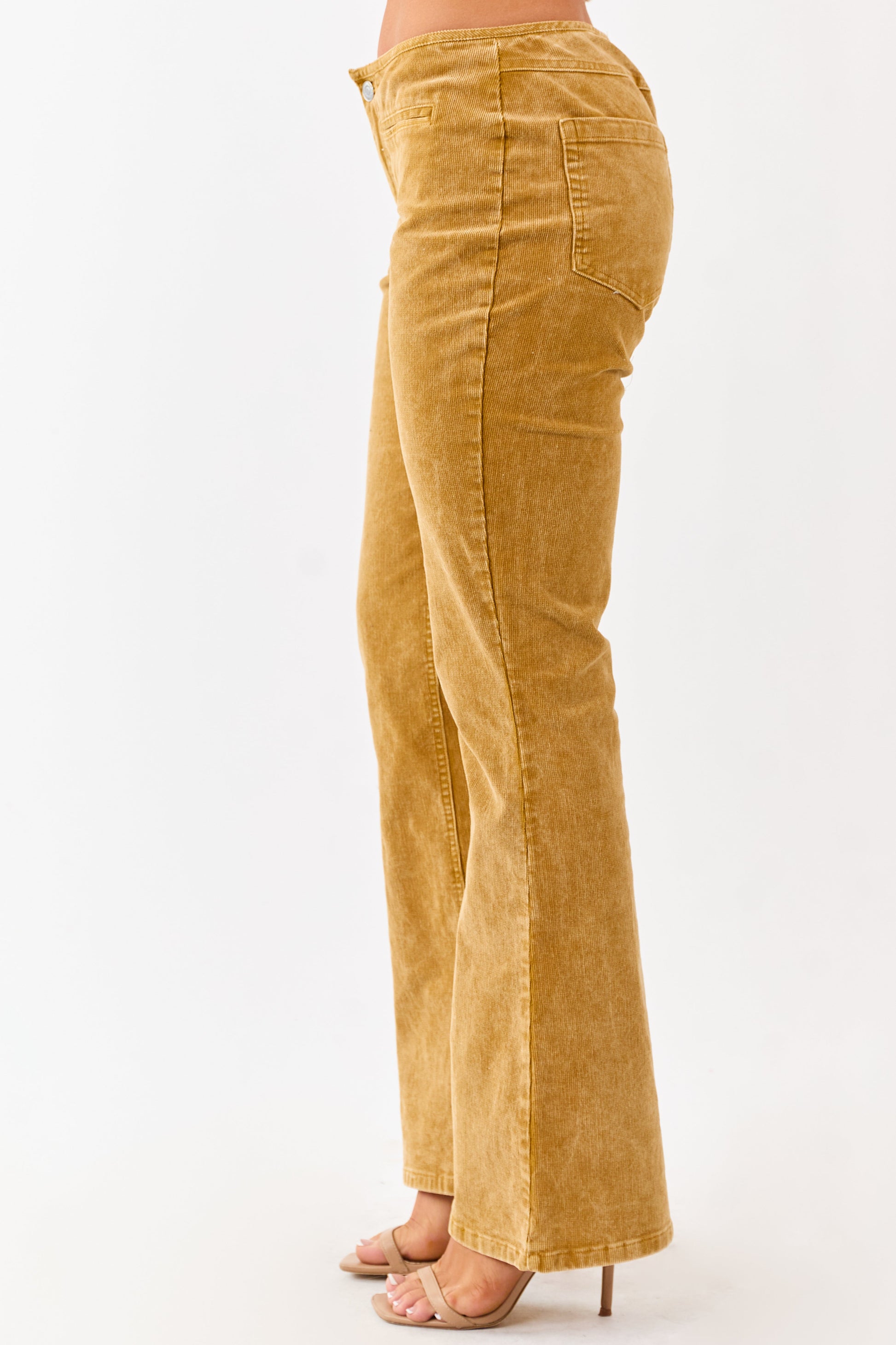 Mustard Washed Corduroy Mid Rise Flare Pants