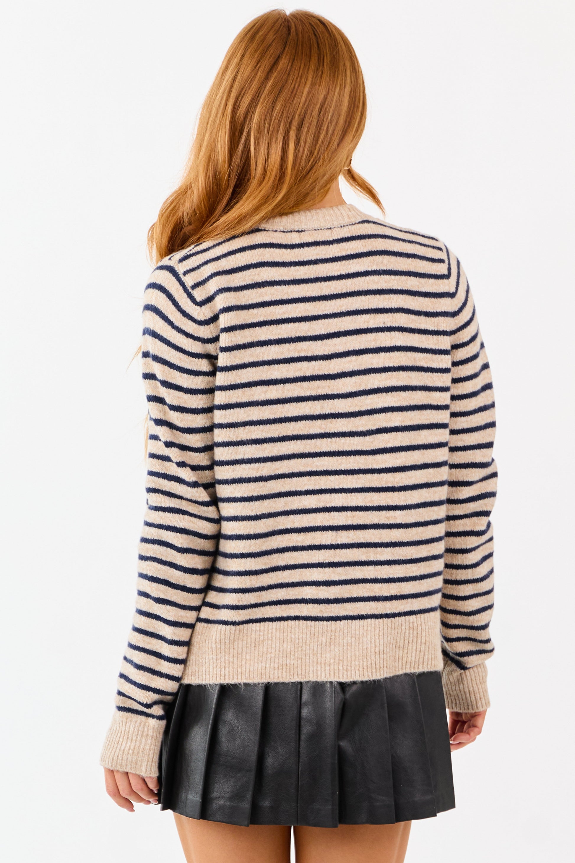 • Standout stripes and contrast trim give this button-up cardigan a polished, trendy look.