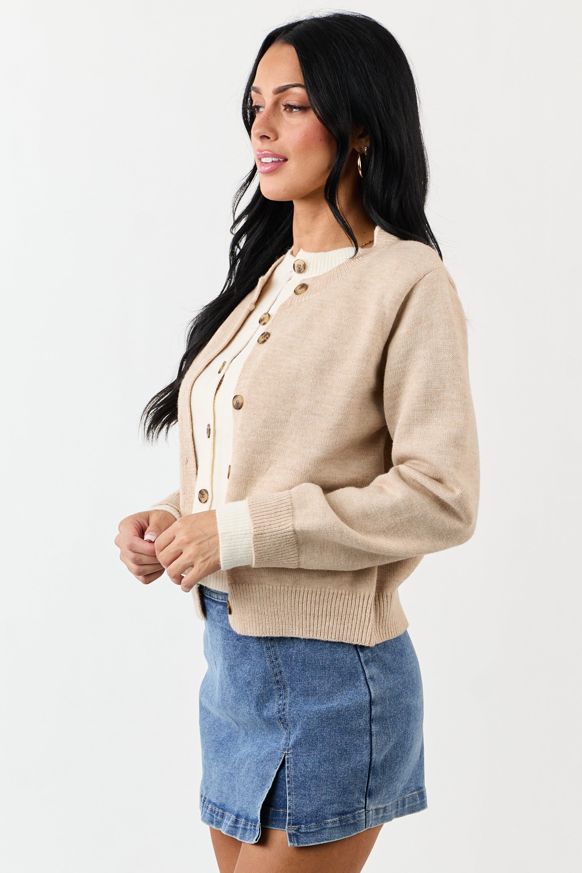 Entro Desert Sand And Vanilla Button Up Cardigan
