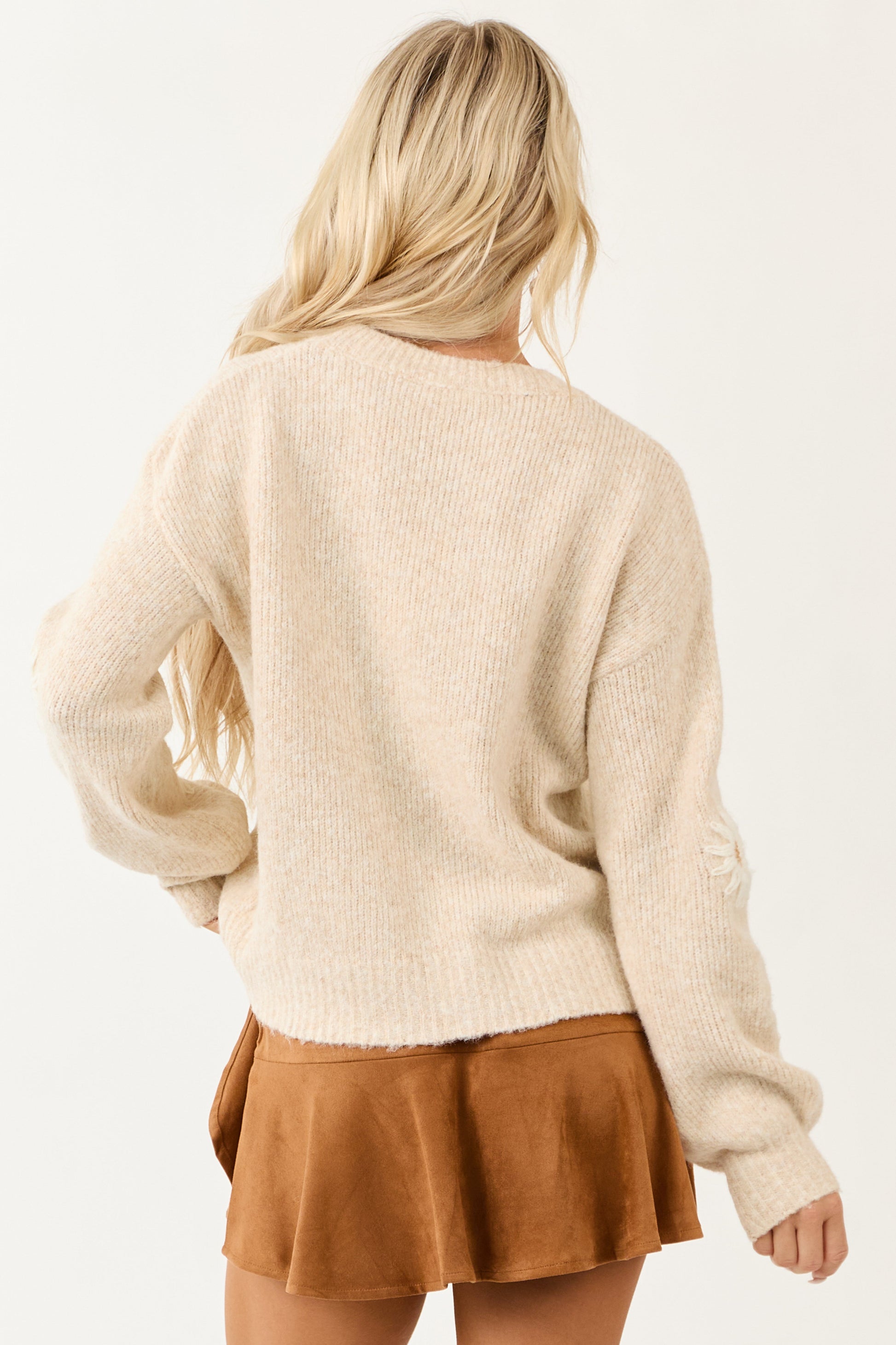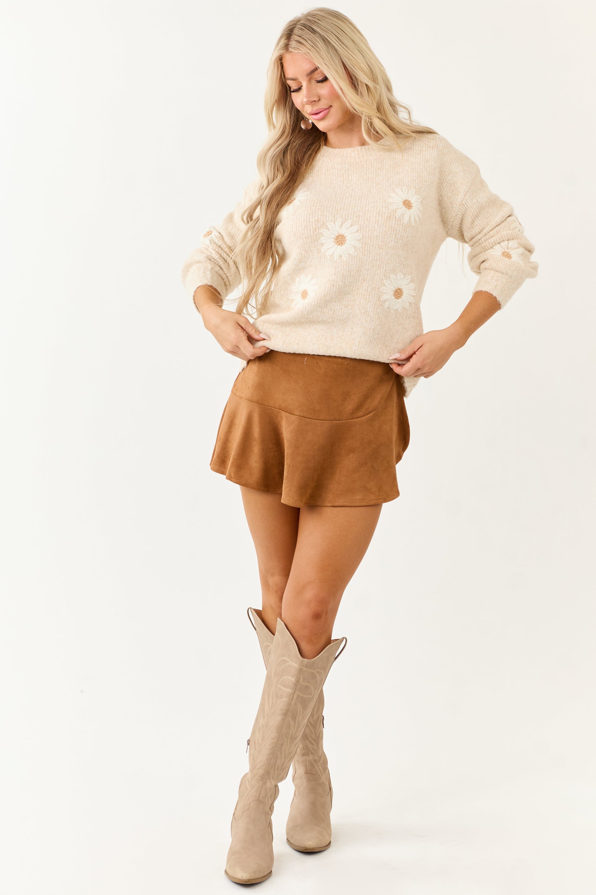 Entro Almond Daisy Embroidery Wool Blend Sweater
