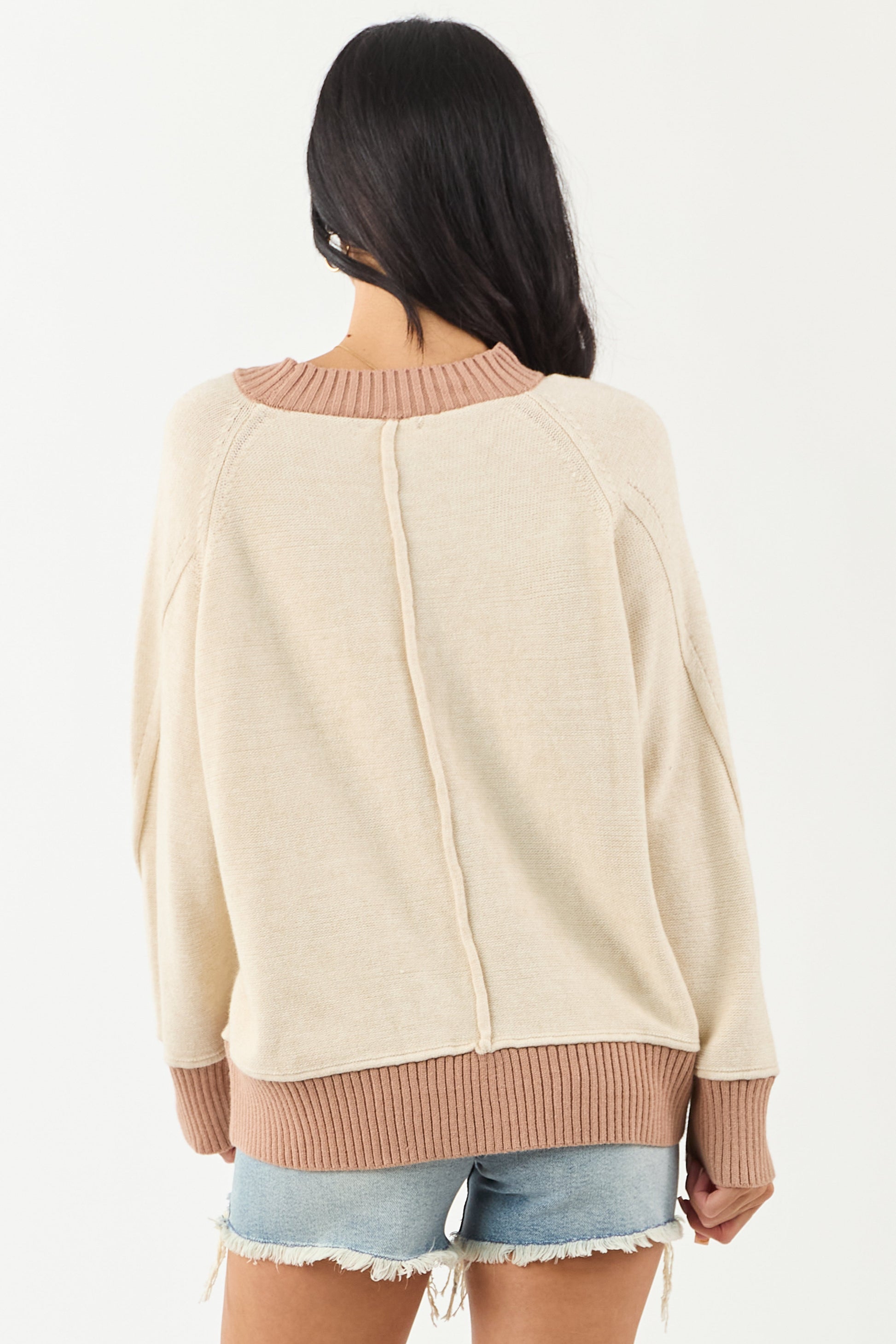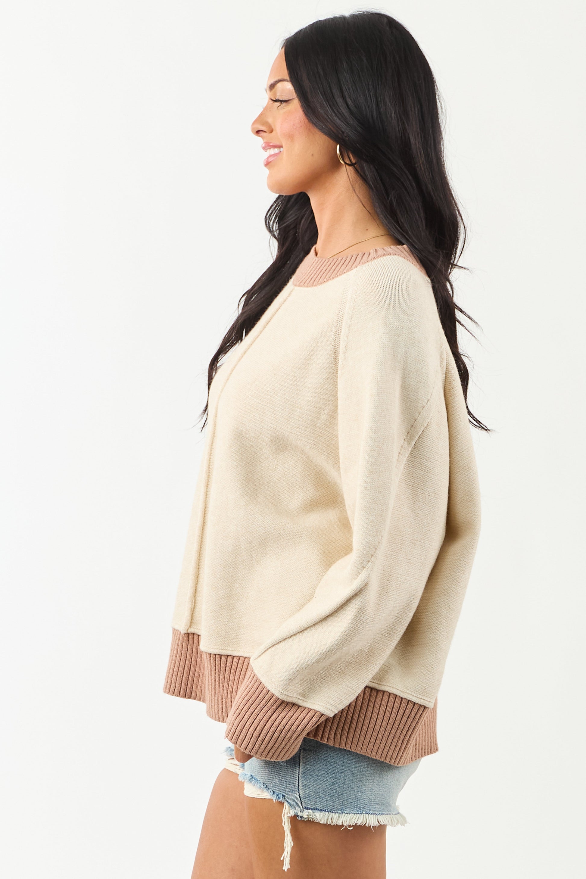 Entro Almond and Rose Taupe Relaxed Sweater
