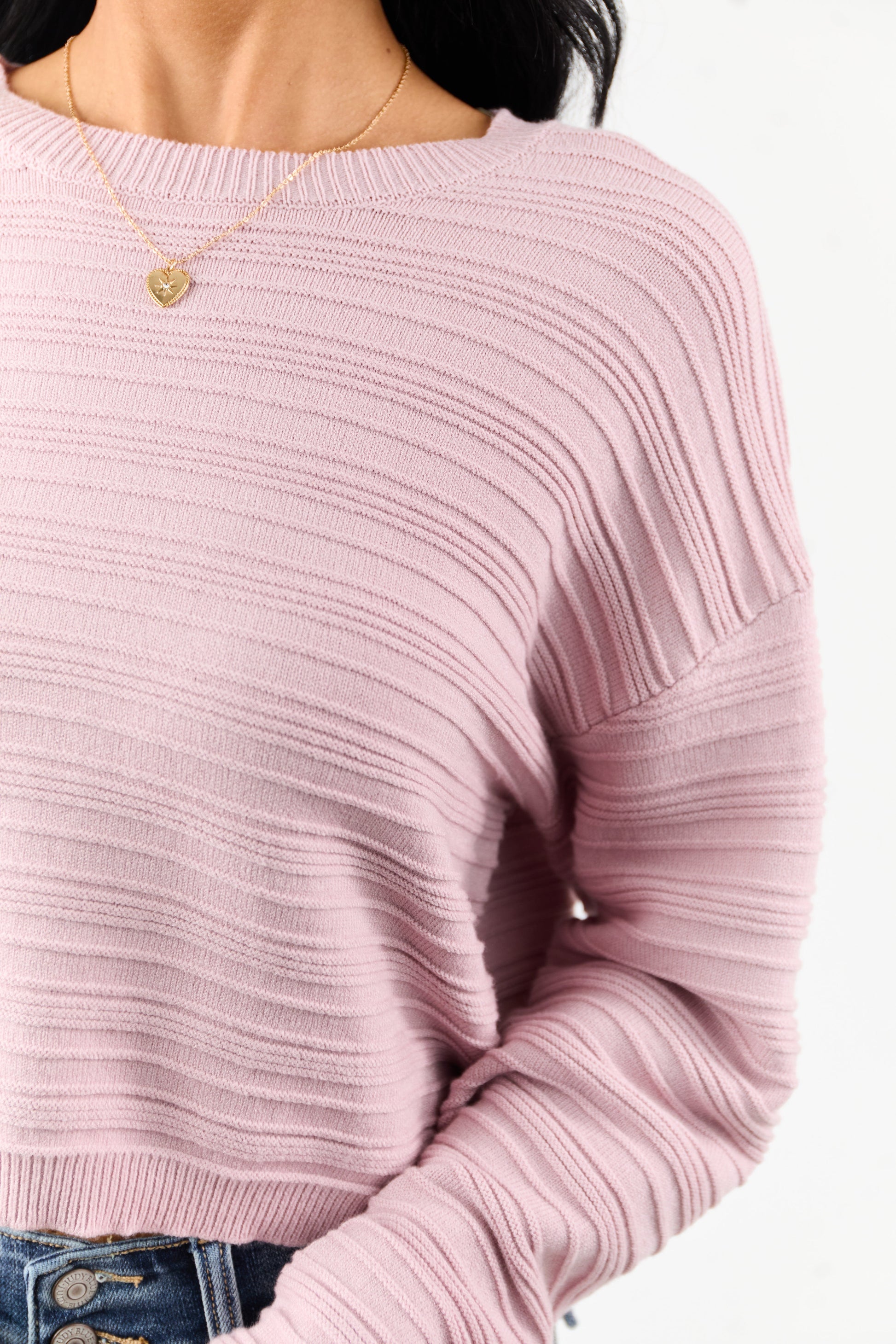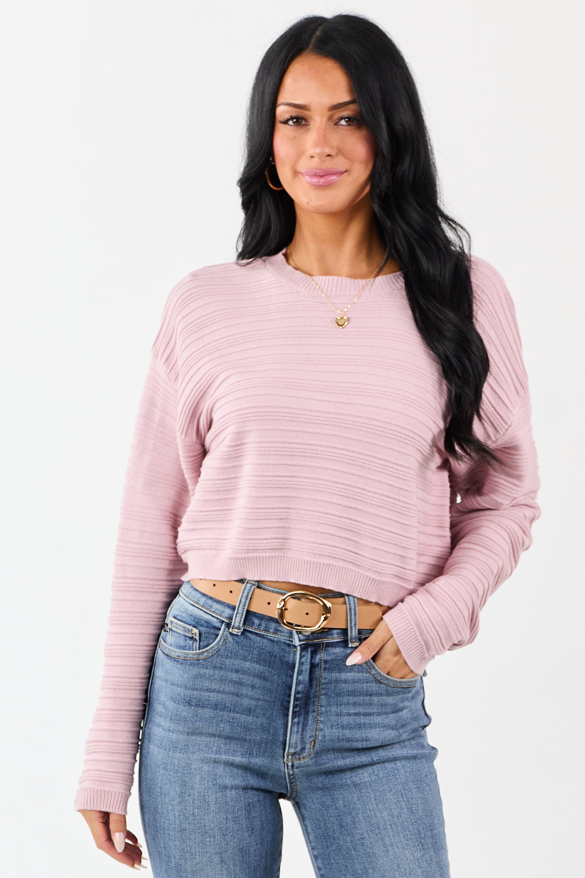 Mauve Long Sleeve Textured Knit Cropped Sweater