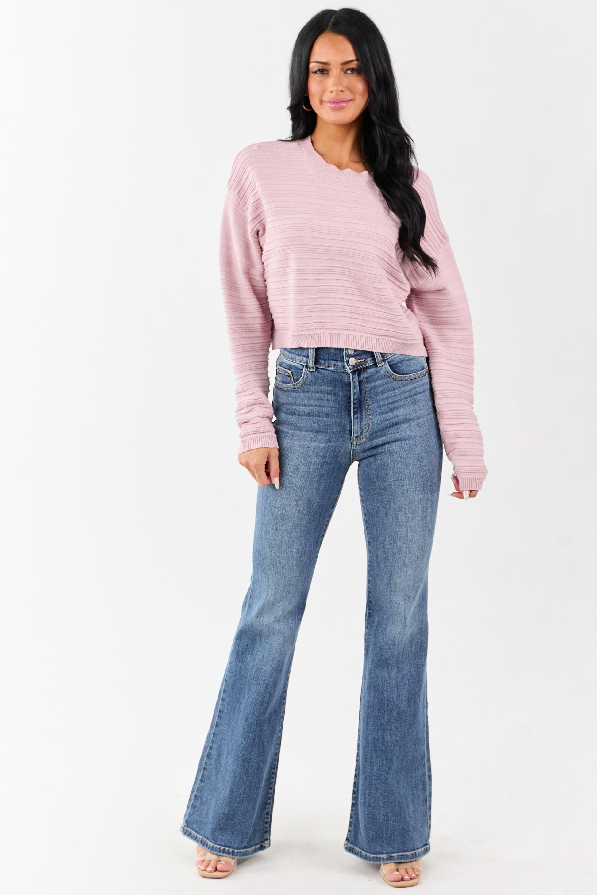 Mauve Long Sleeve Textured Knit Cropped...