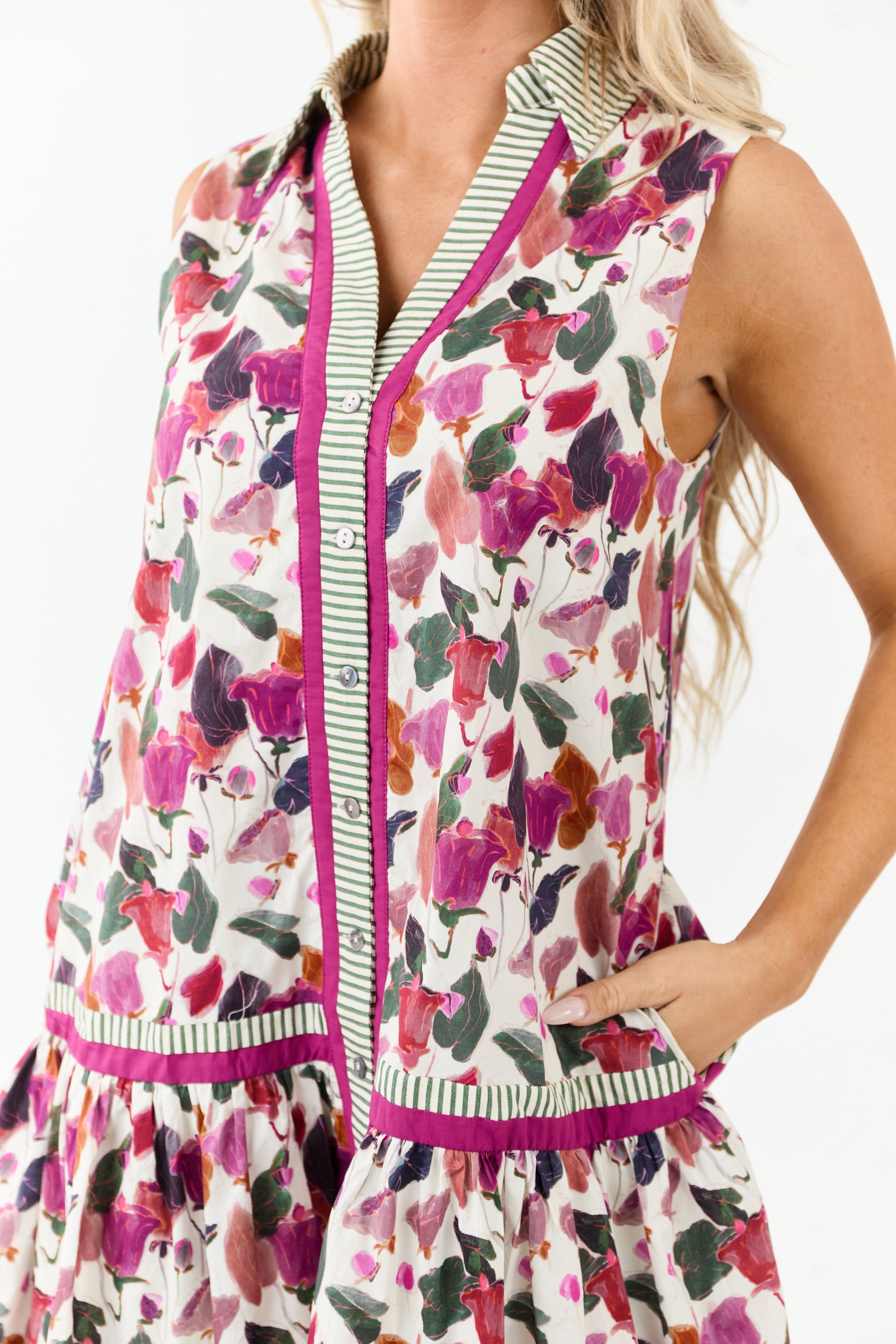 Entro Mulberry Floral Button Up Cotton Mini Dress