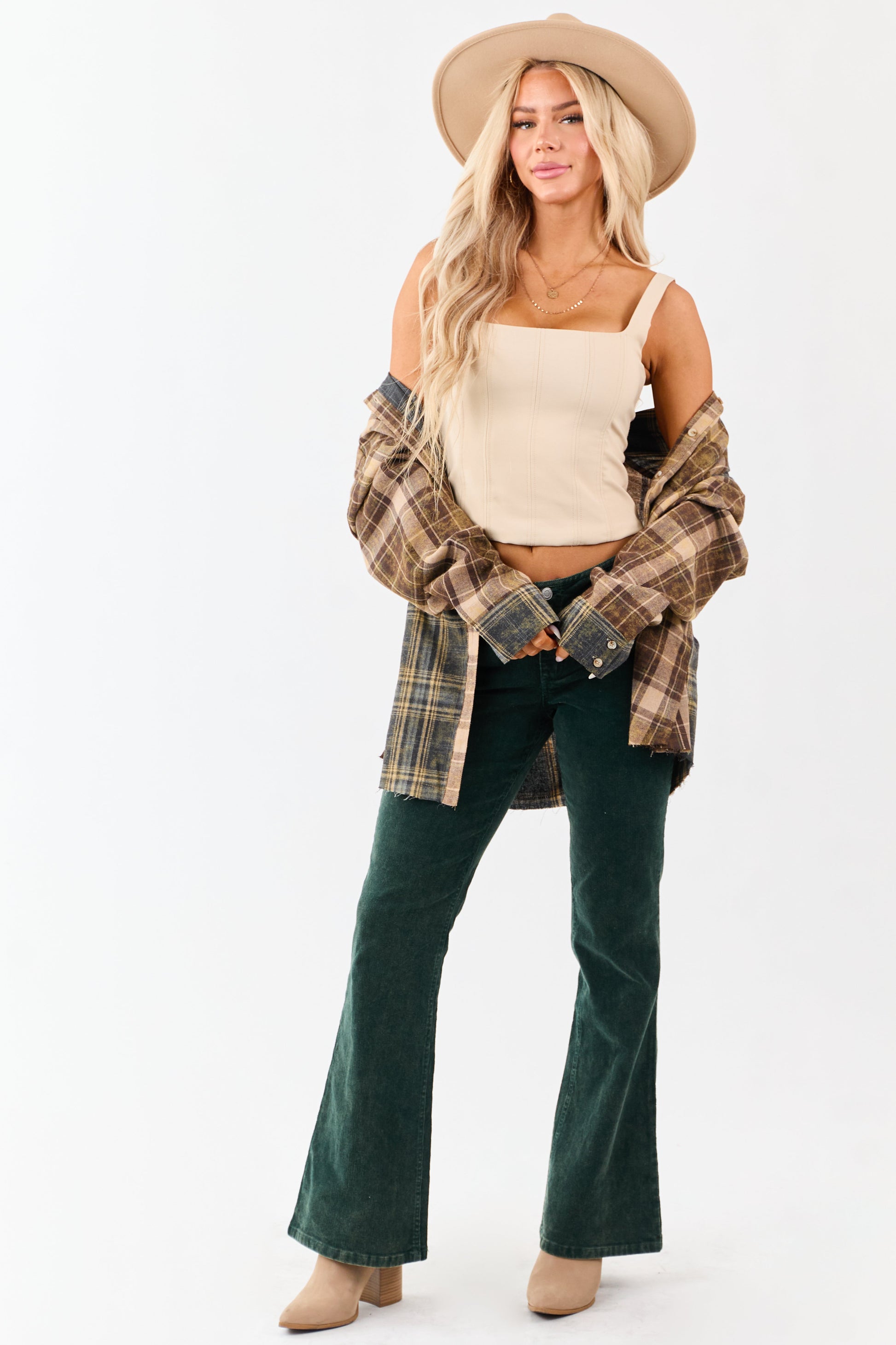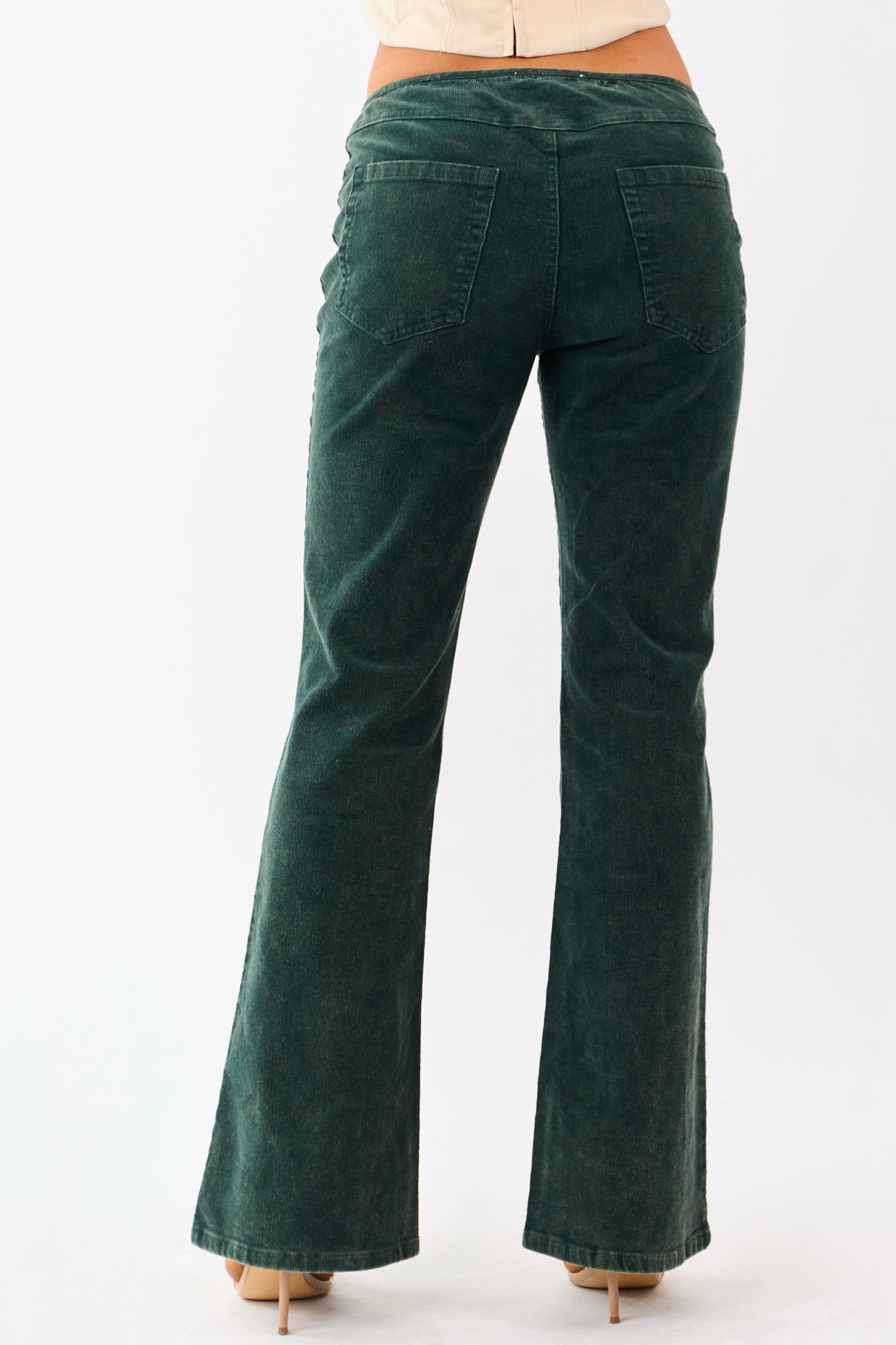 Forest Green Washed Corduroy Mid Rise Flare Pants