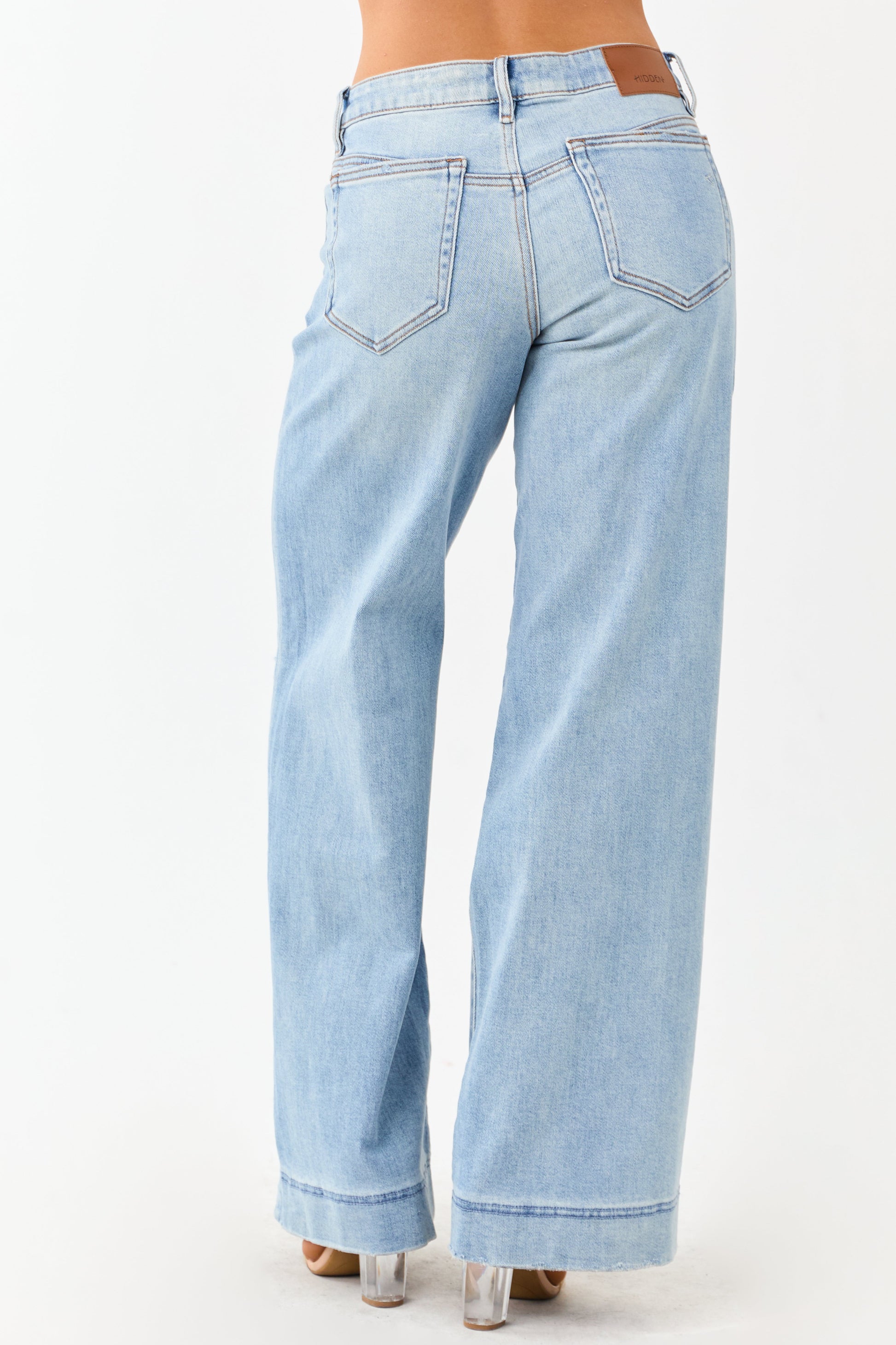 Hidden Light Wash Distressed Stretchy Wide Leg Jeans