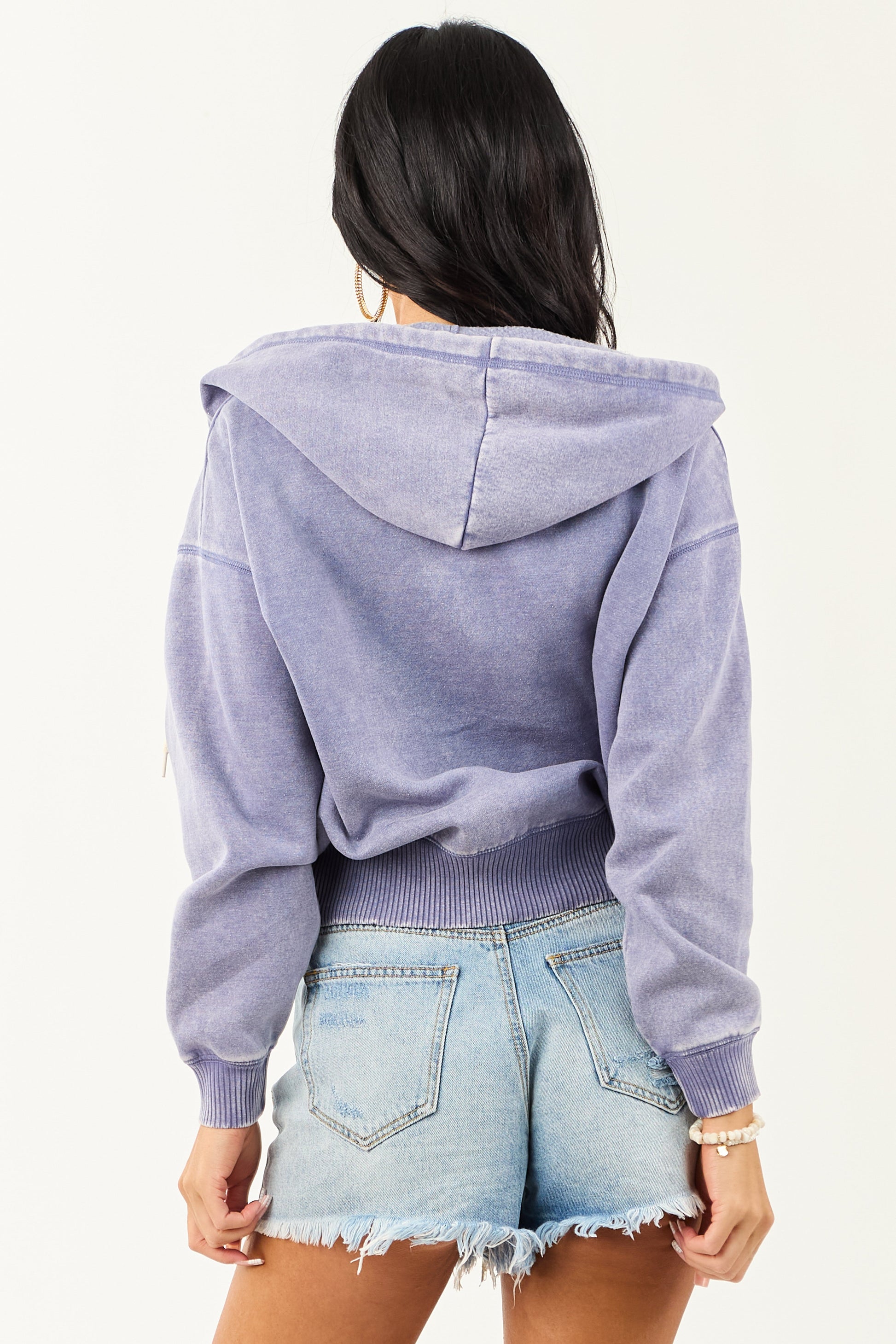 Slate Blue Acid Wash Fleece Lined Zip Up...