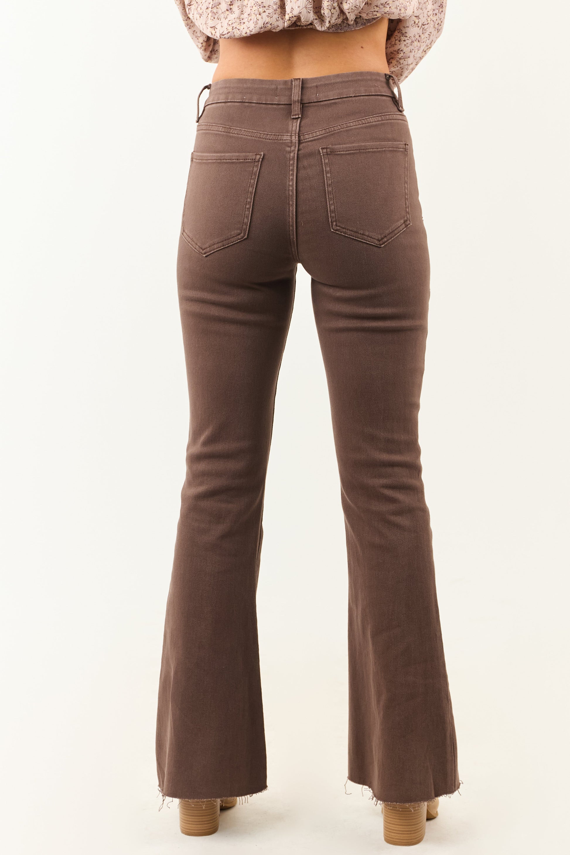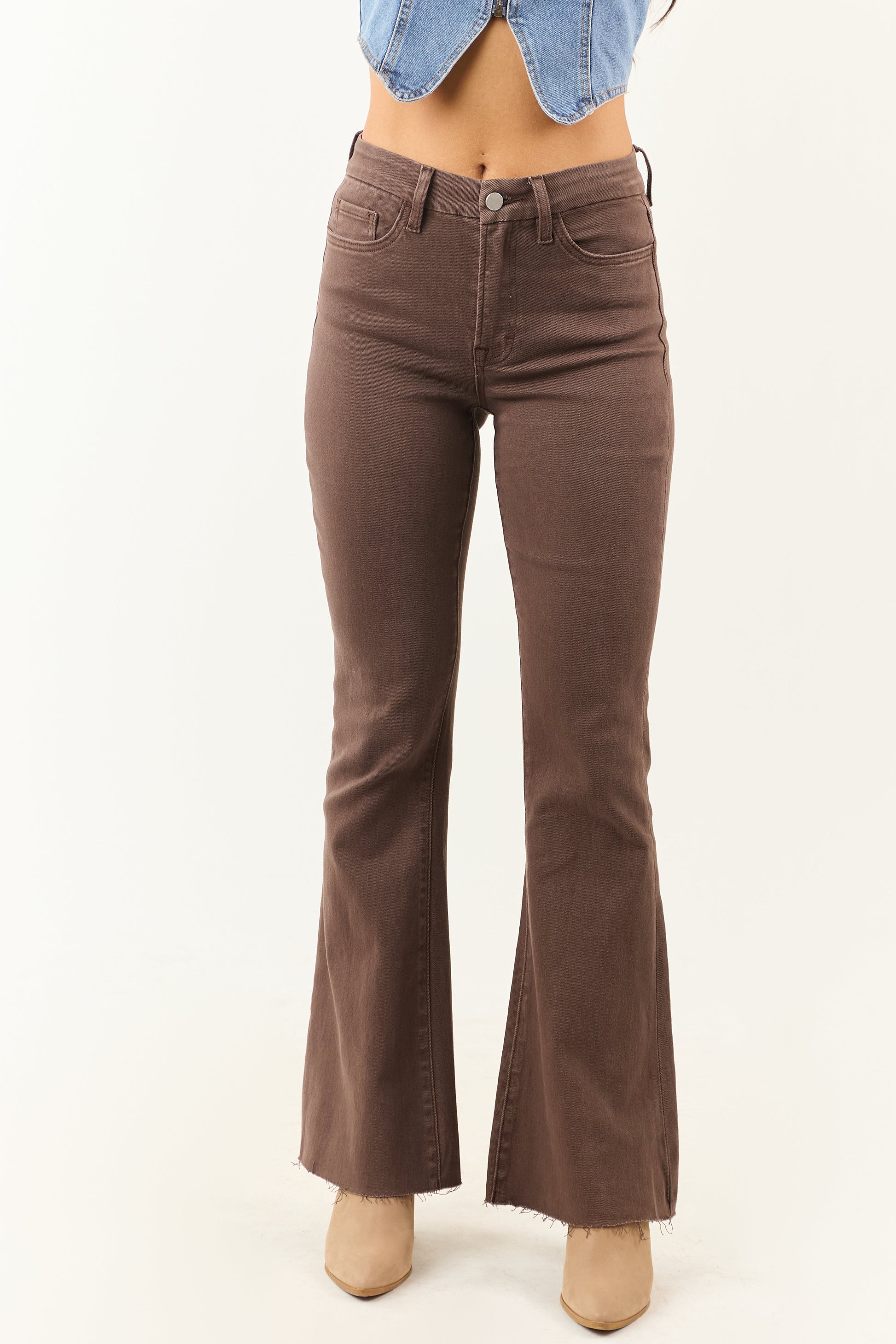 Walnut High Rise Raw Hem Stretchy Flare Jeans