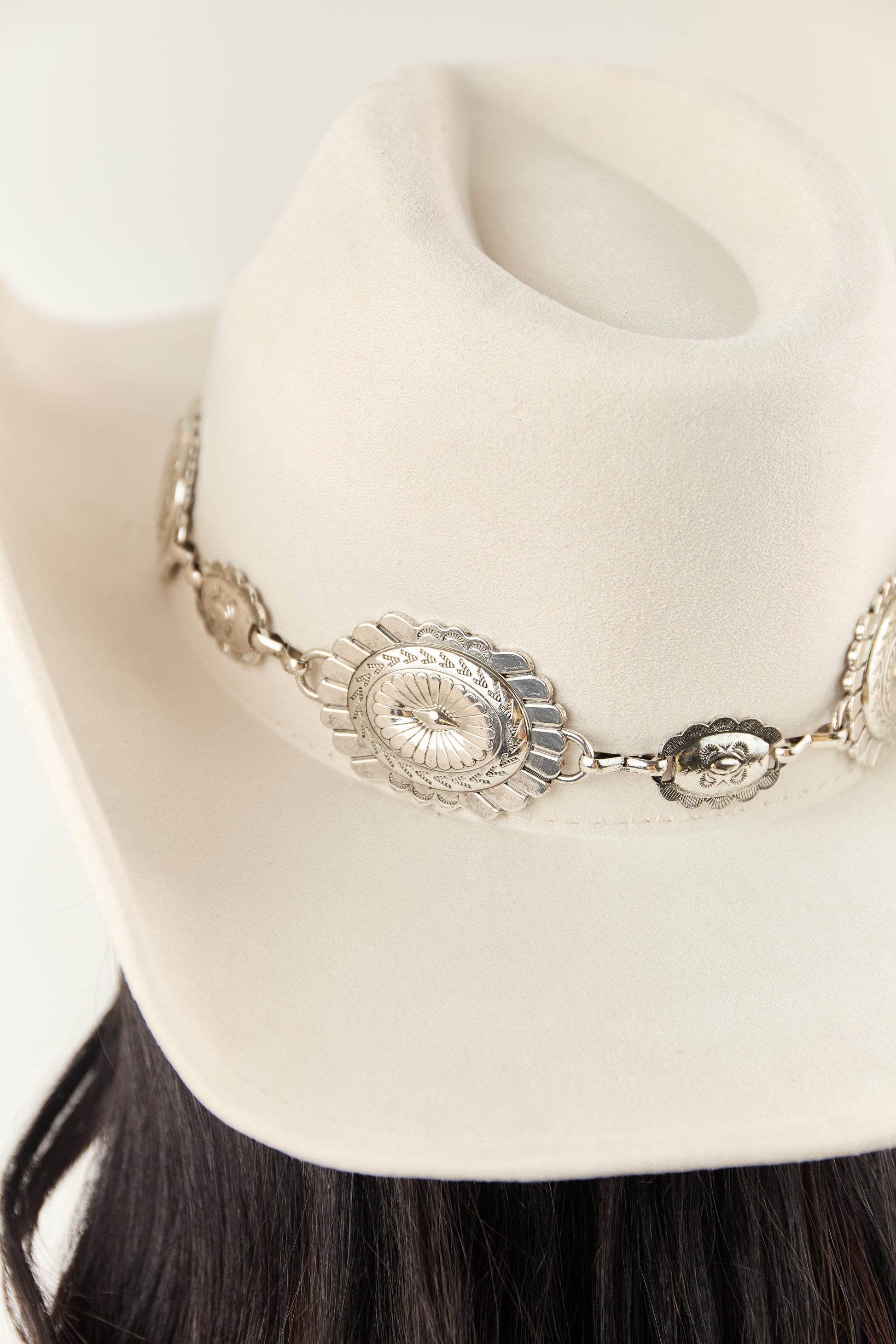 Ivory Faux Suede Concho Chain Cowboy Hat