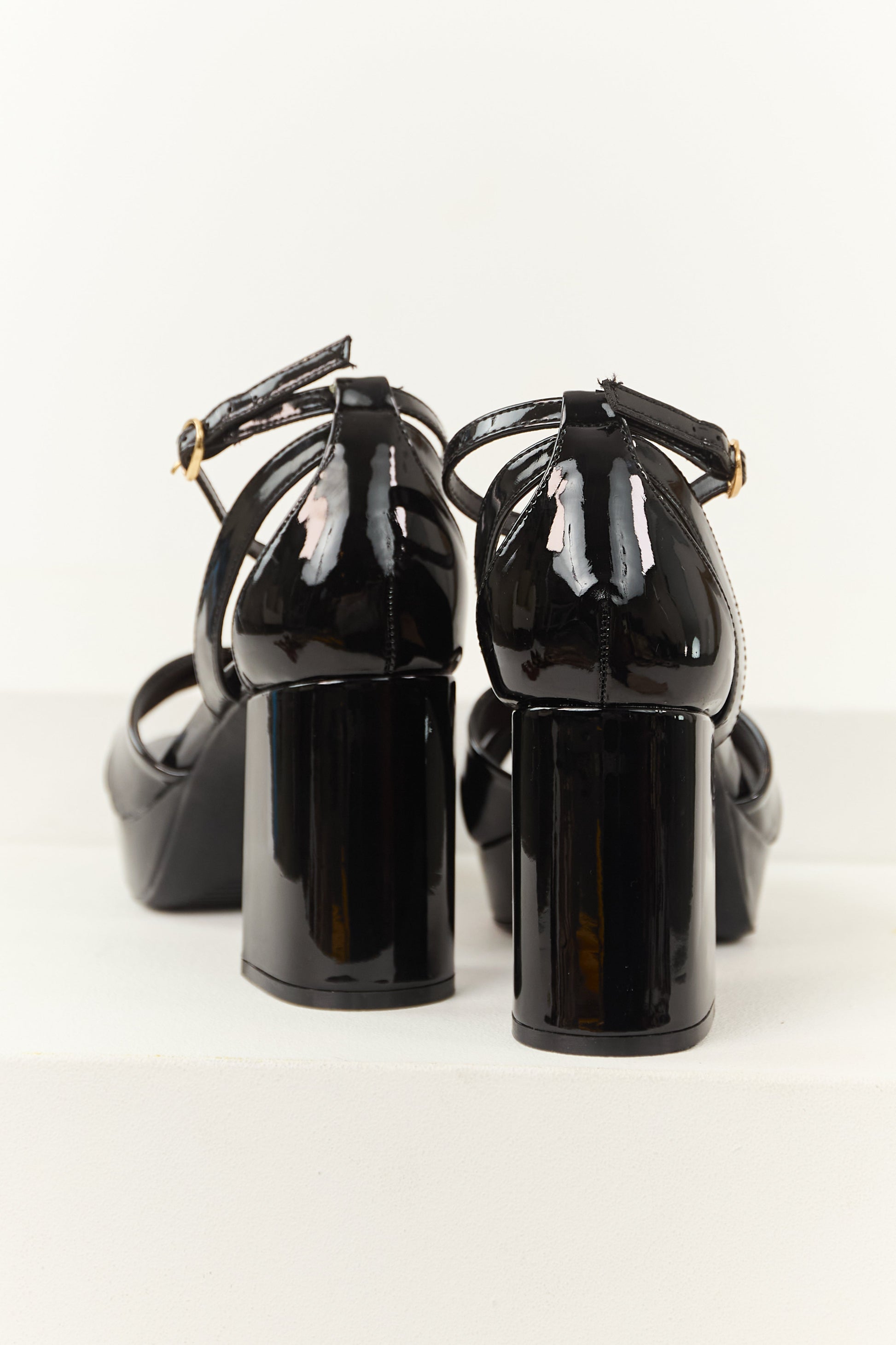 • Shine bright with these patent faux leather heels, featuring an adjustable ankle strap, and chunky platform block heel for bold yet comfy style.