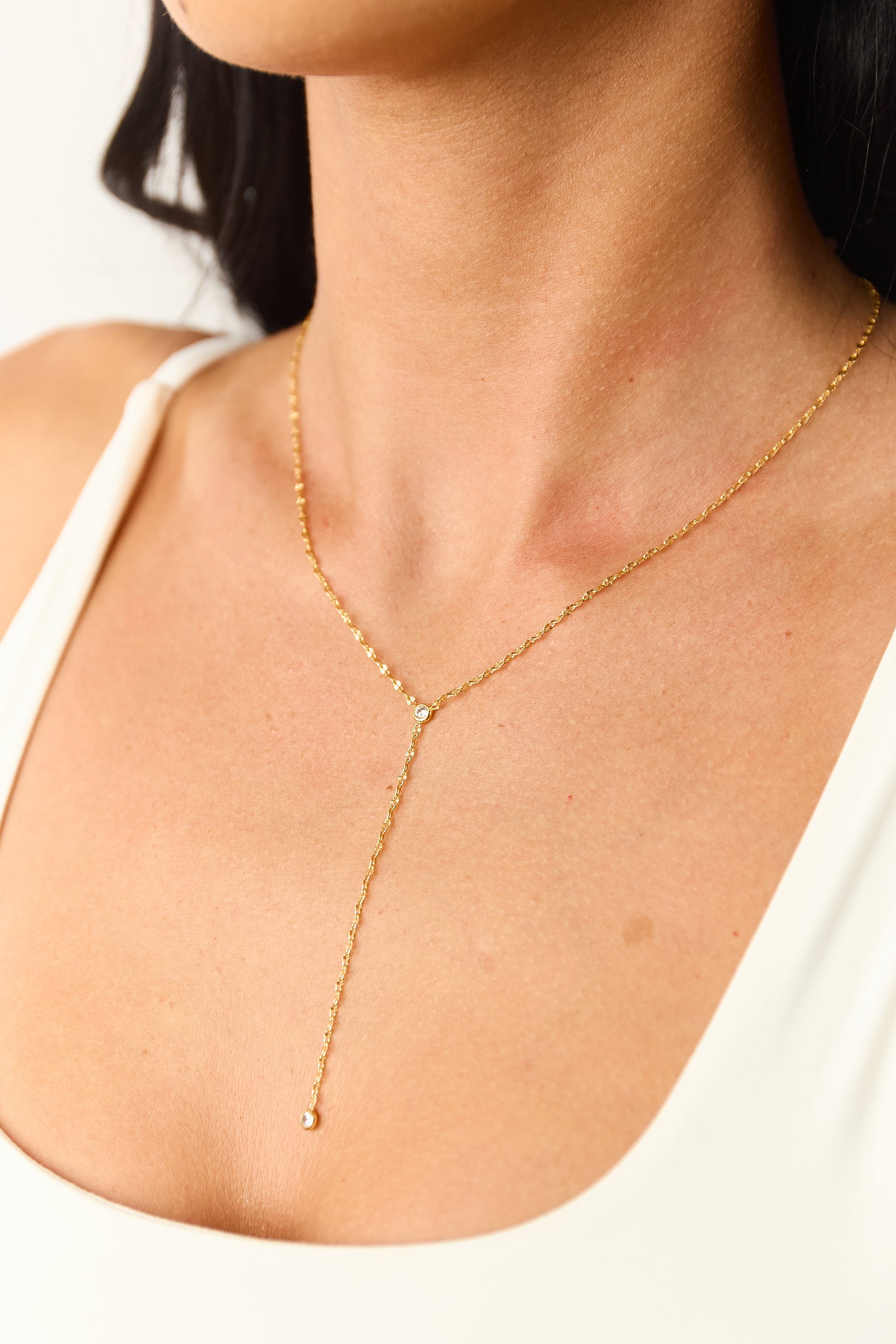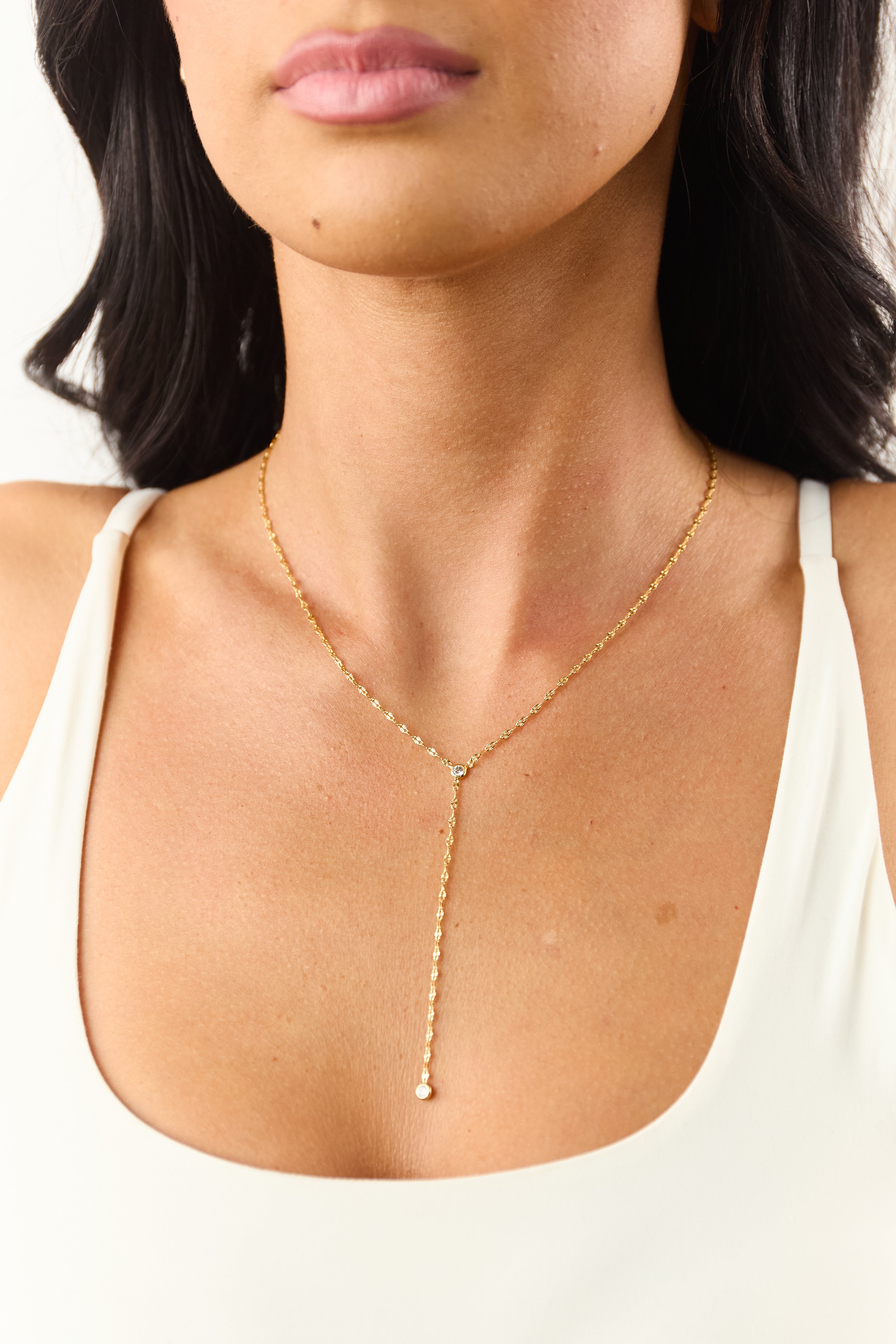 Gold Metallic Chain Link Rhinestone Lariat Necklace