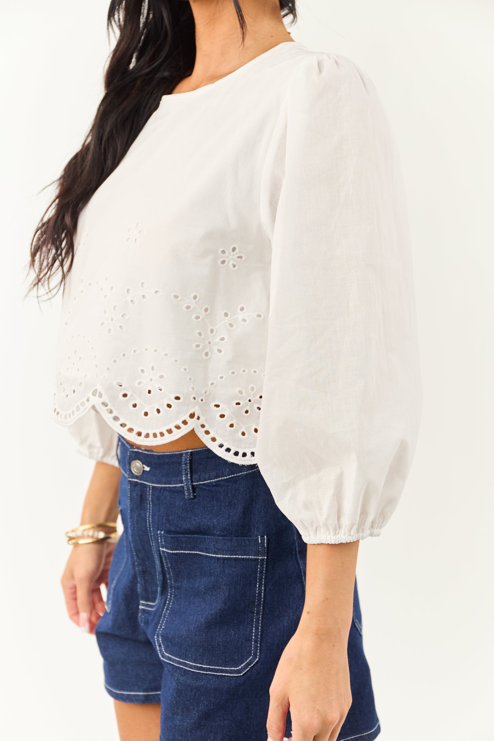 Off White Eyelet Long Sleeve Cotton Crop Top