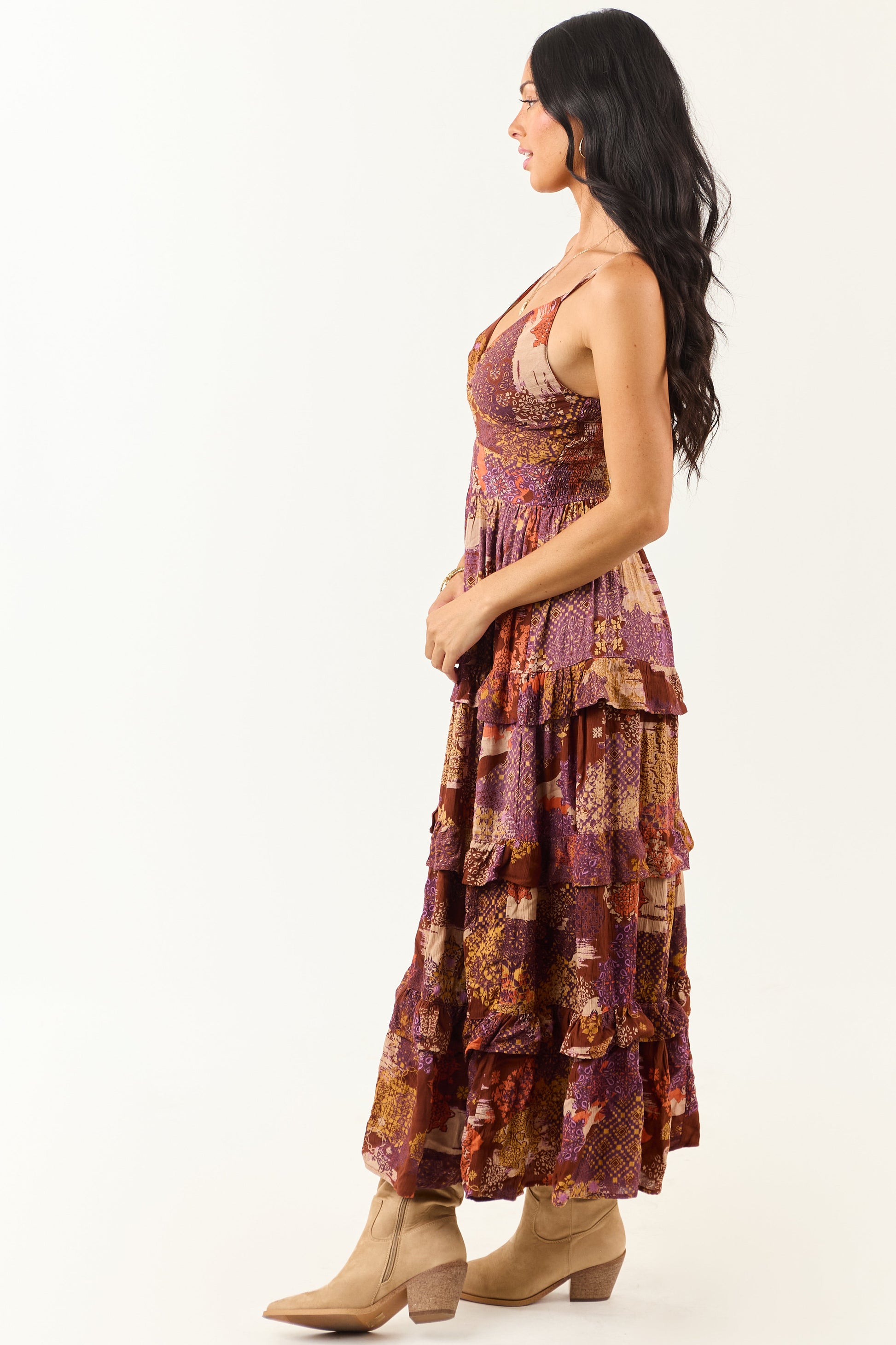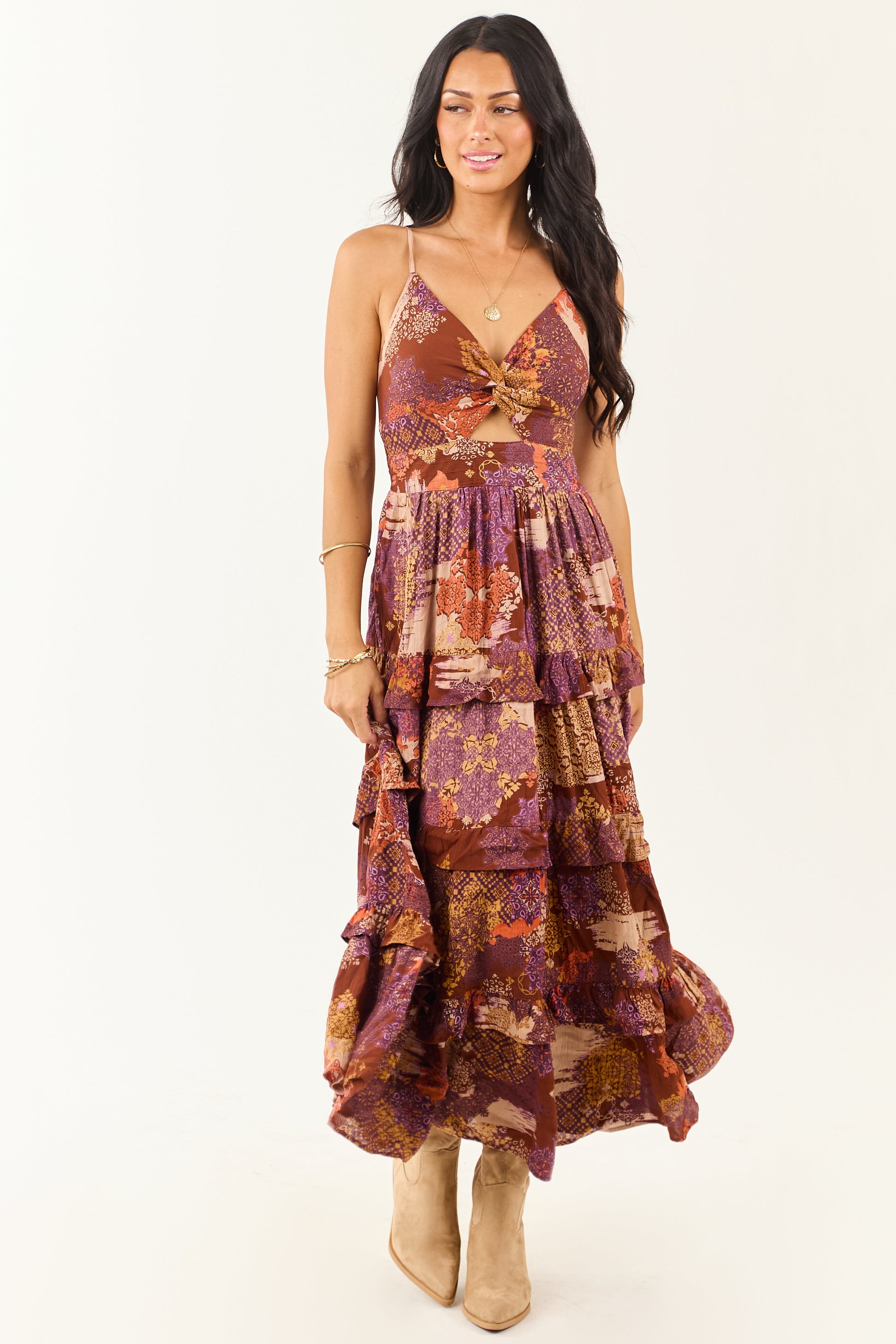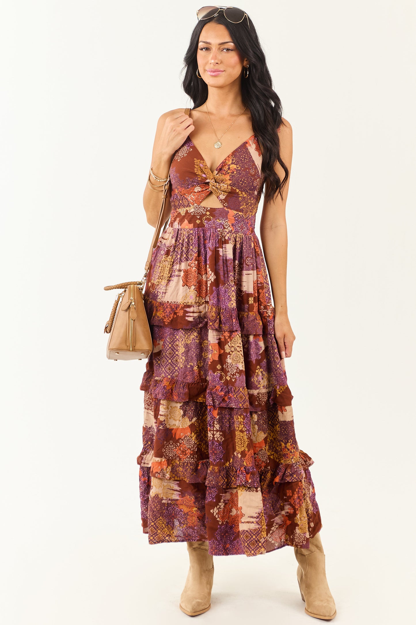 Spice Boho Patchwork Bust Twist Tiered Midi Dress