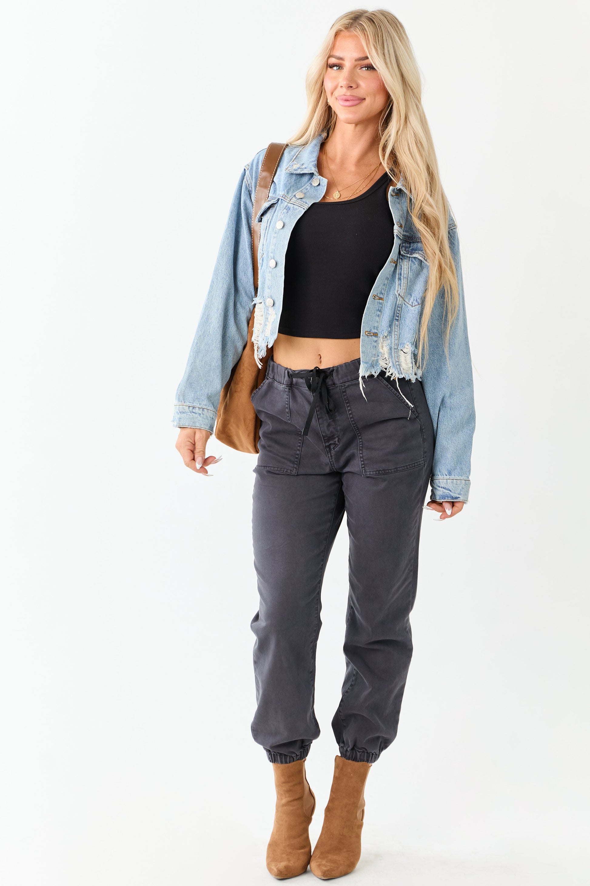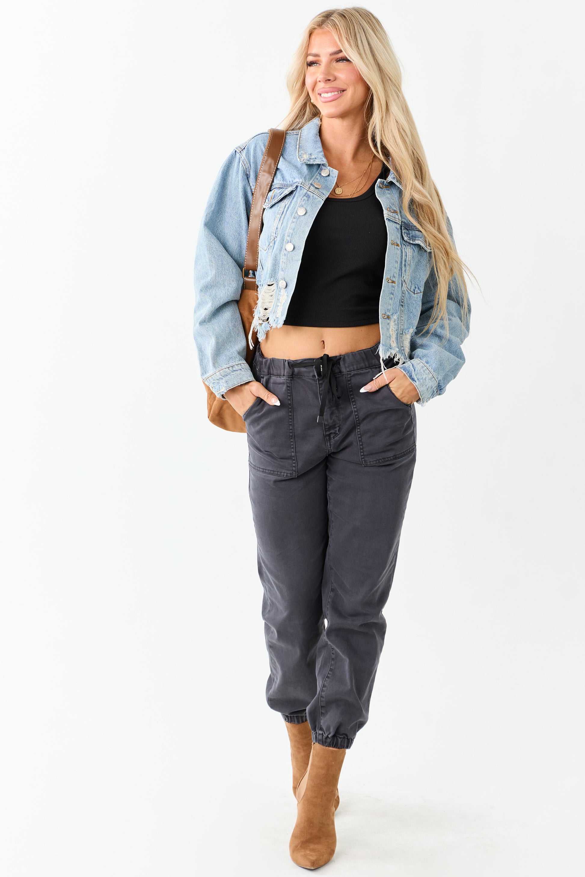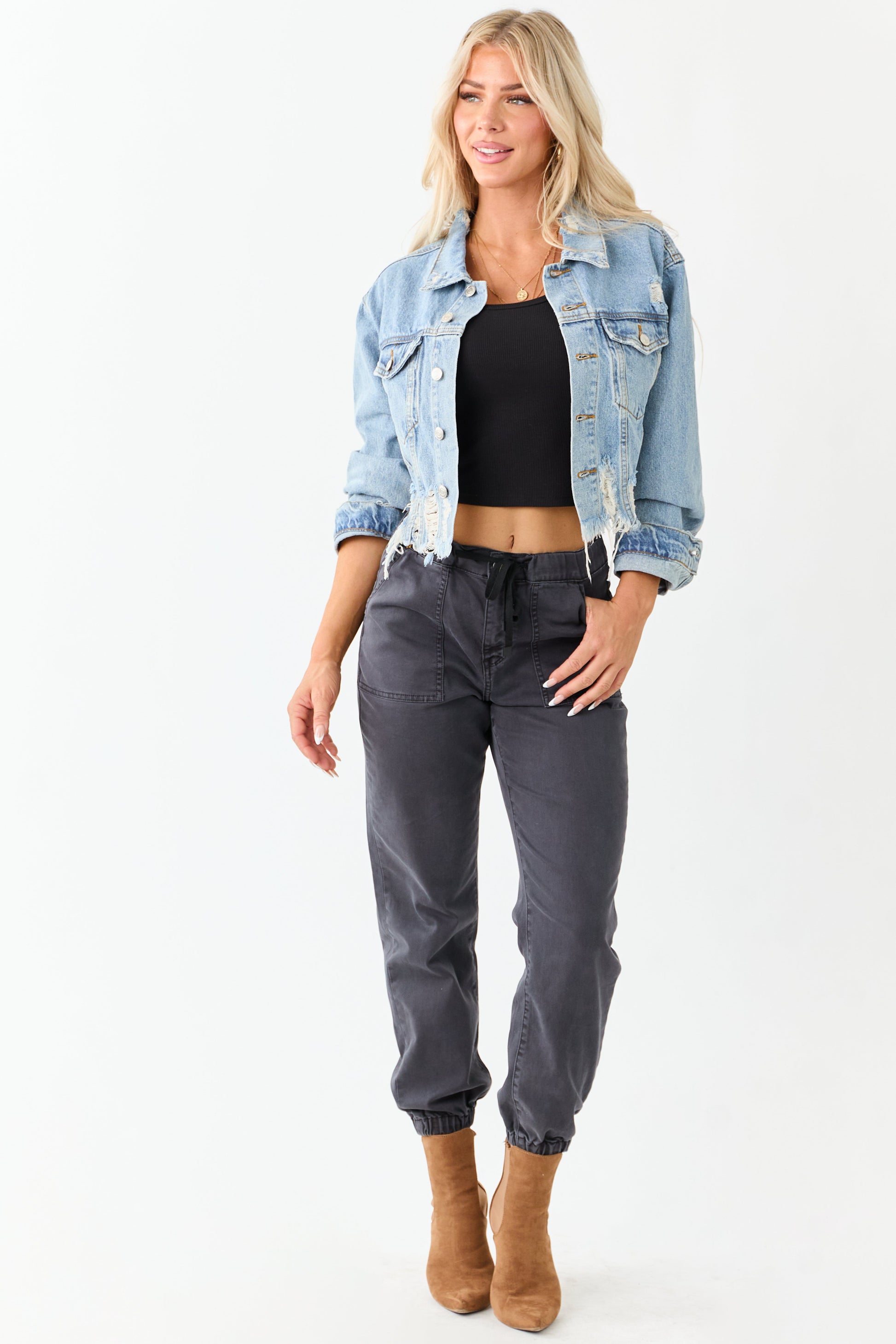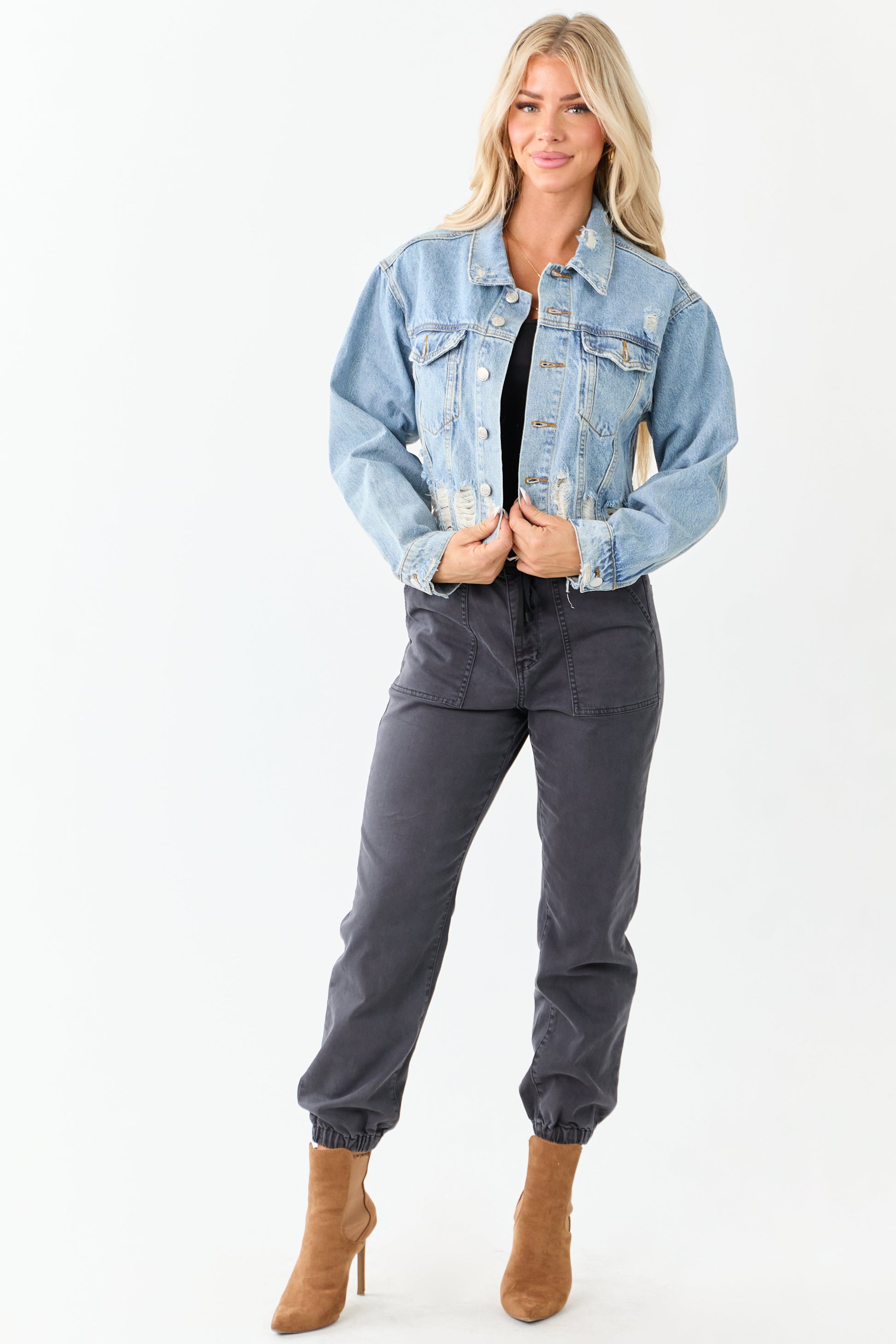 Medium Mineral Wash Denim Distressed Boxy Jacket