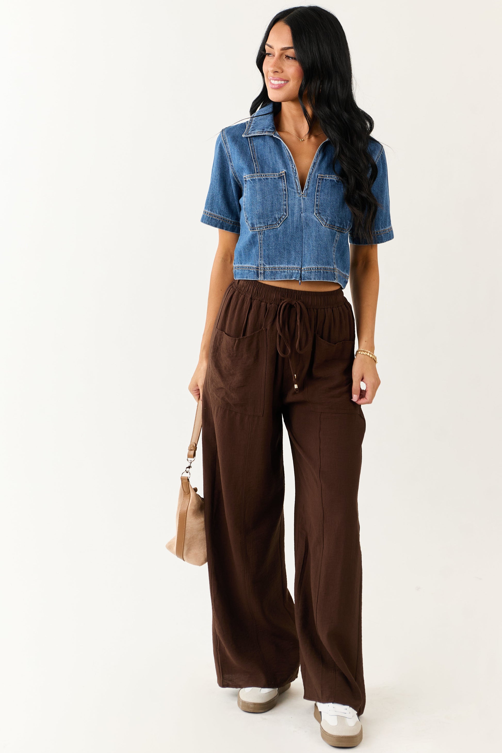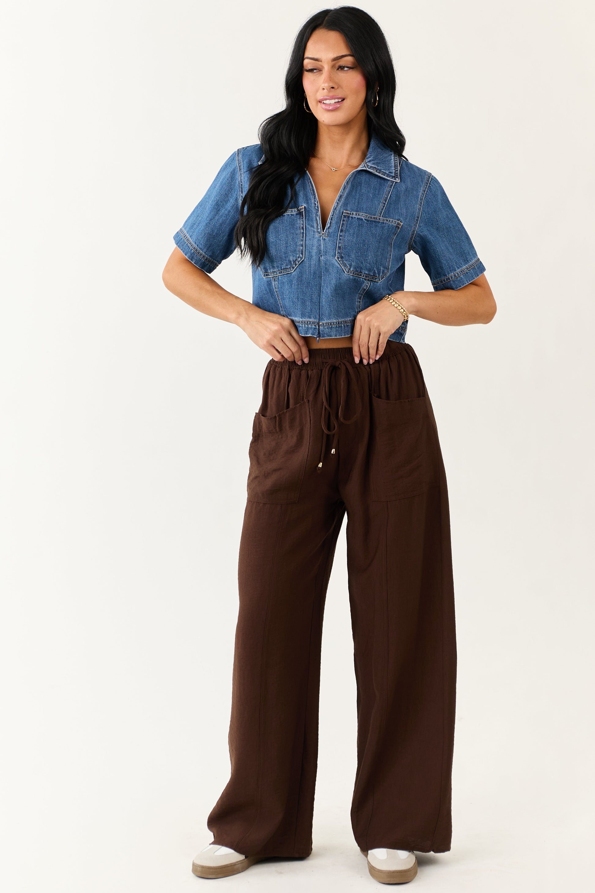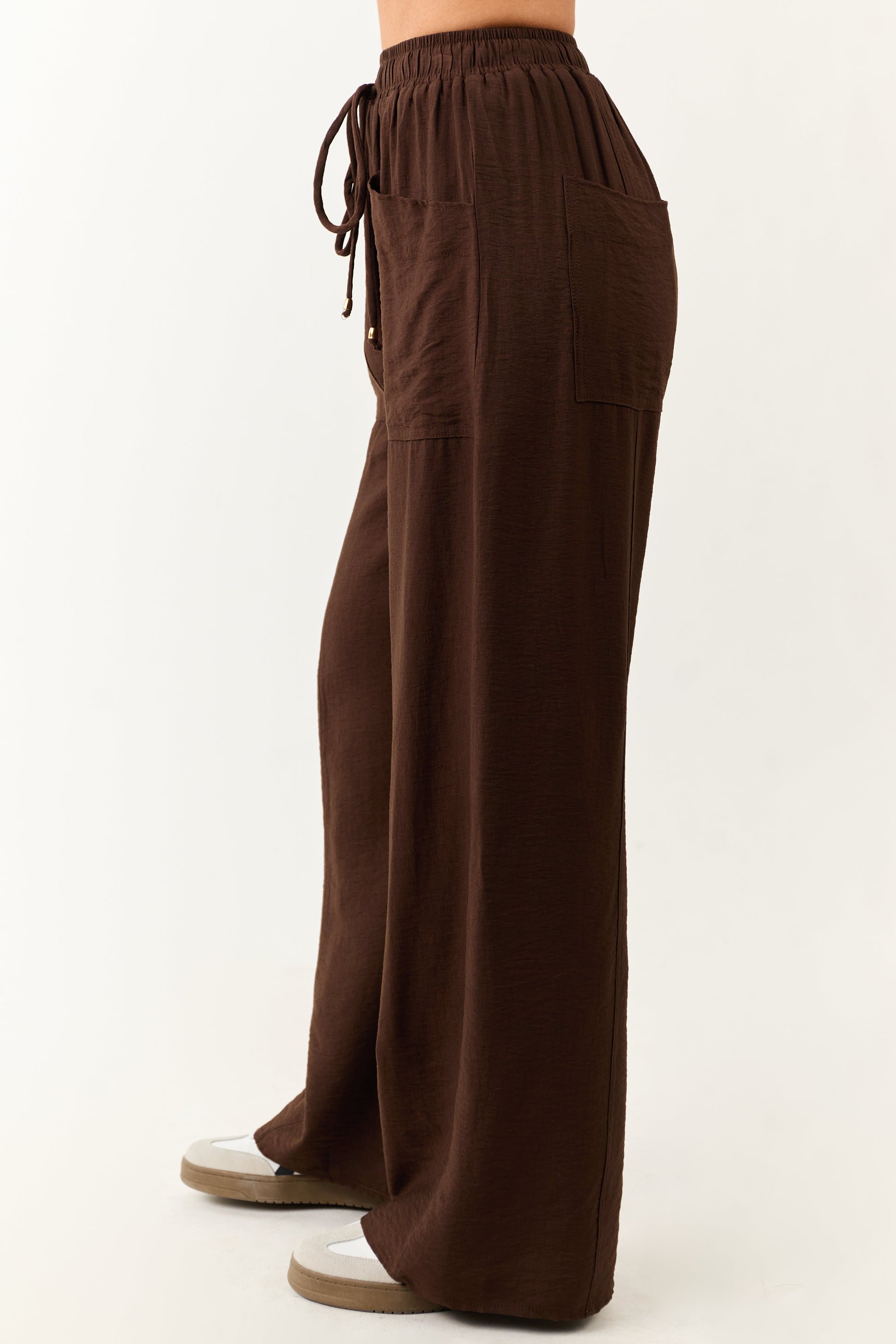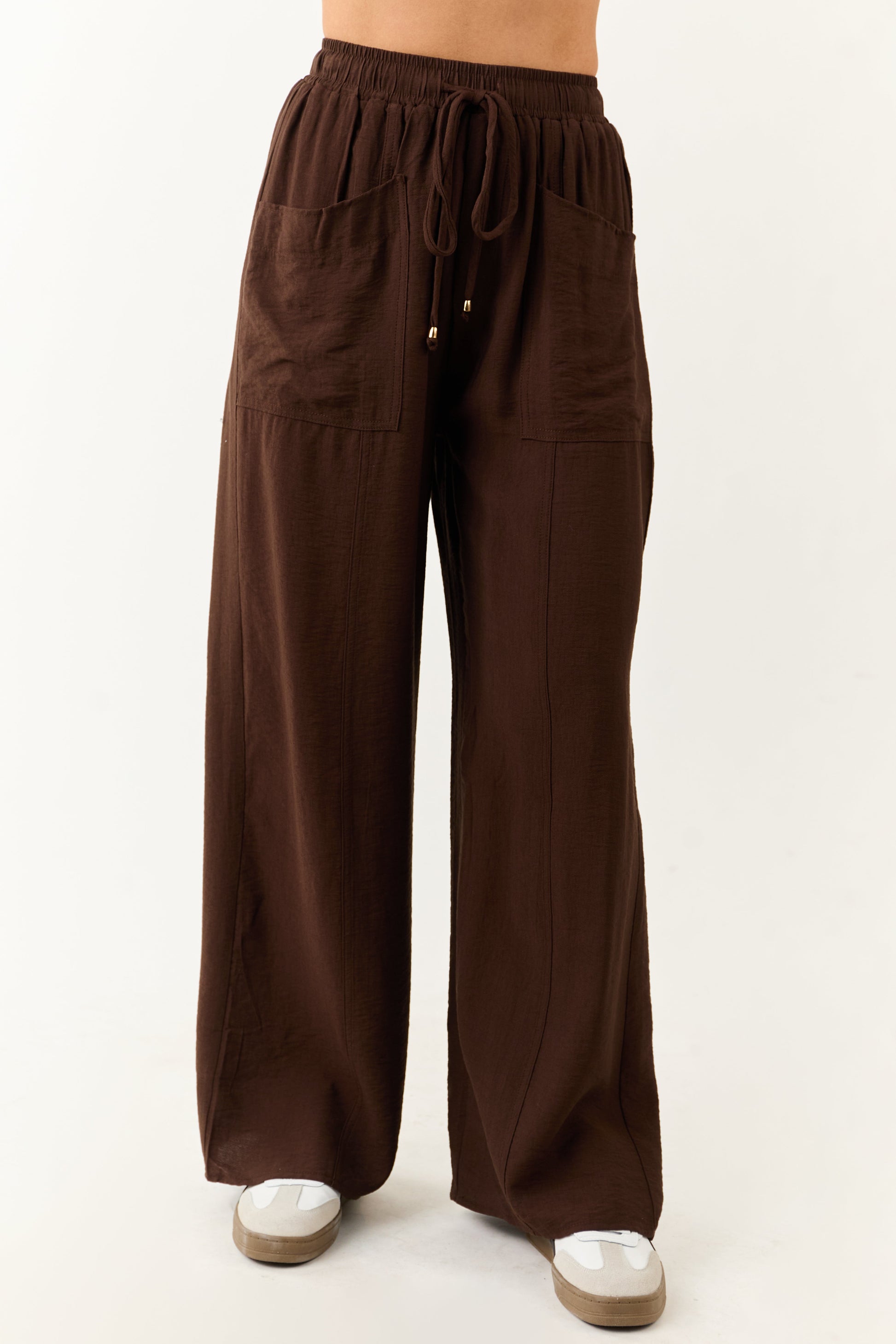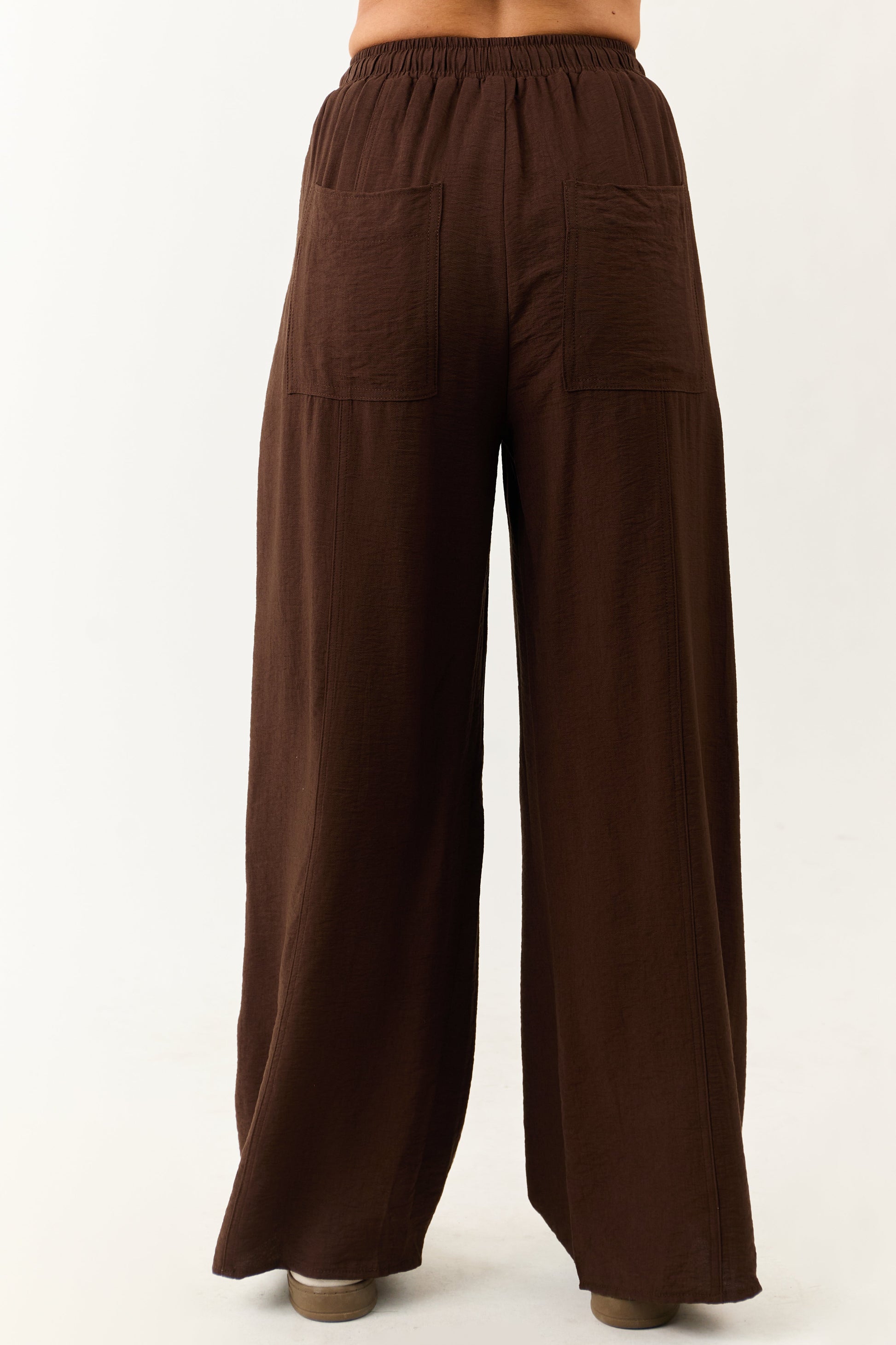 Entro Cocoa Smocked High Rise Wide Leg Pants
