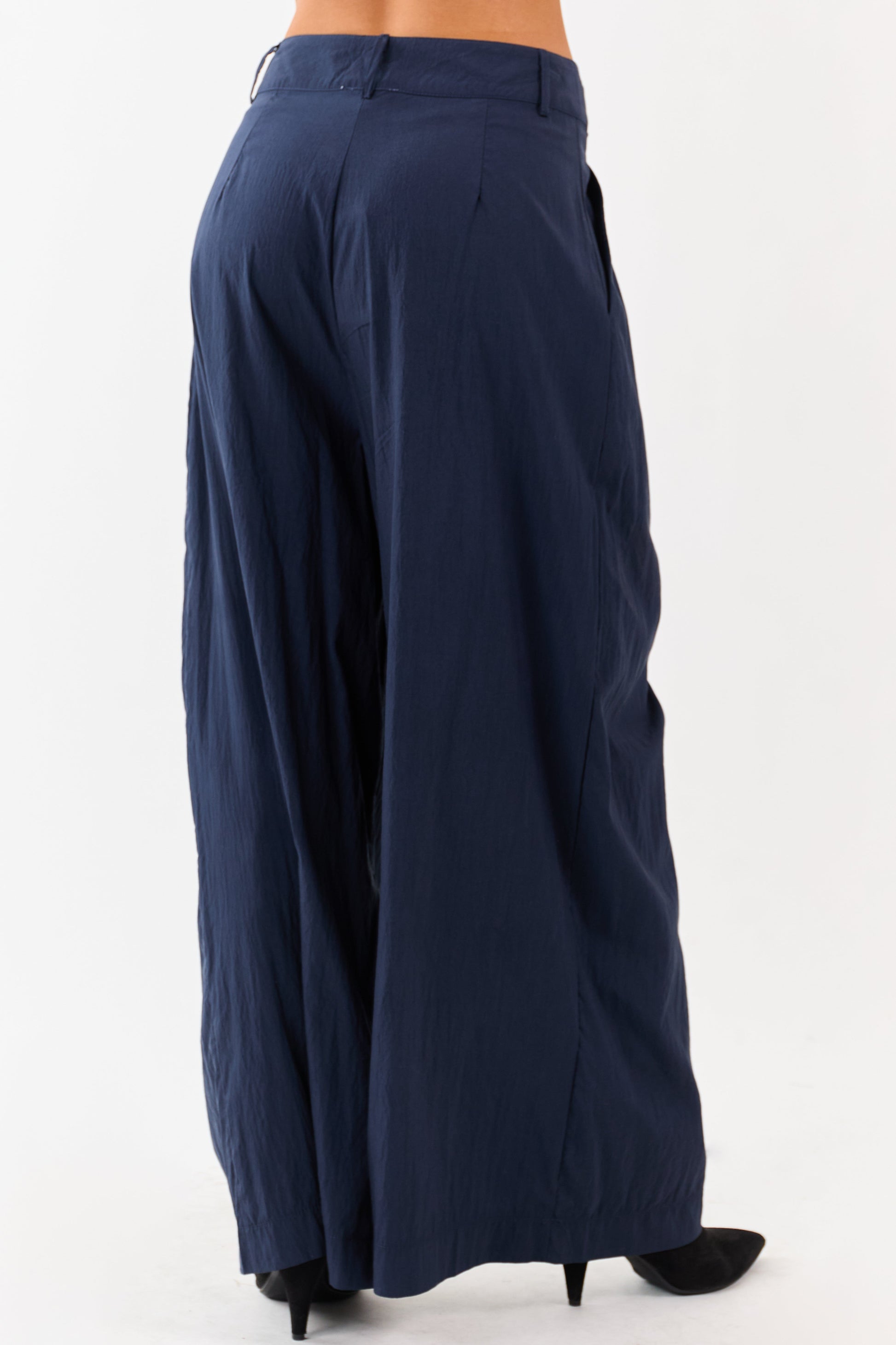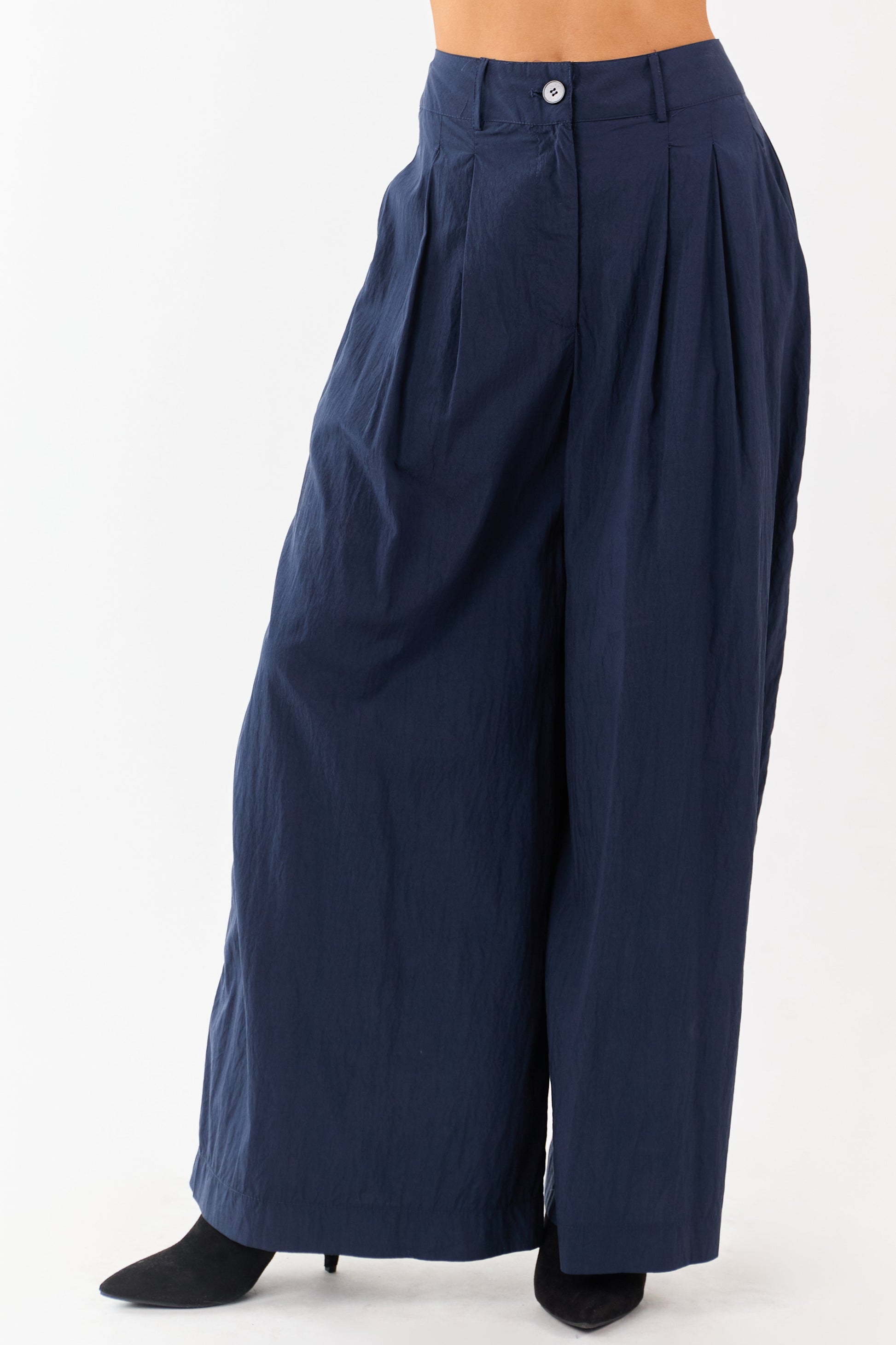 Navy Pleated High Waisted Wide Leg Palazzo Pants