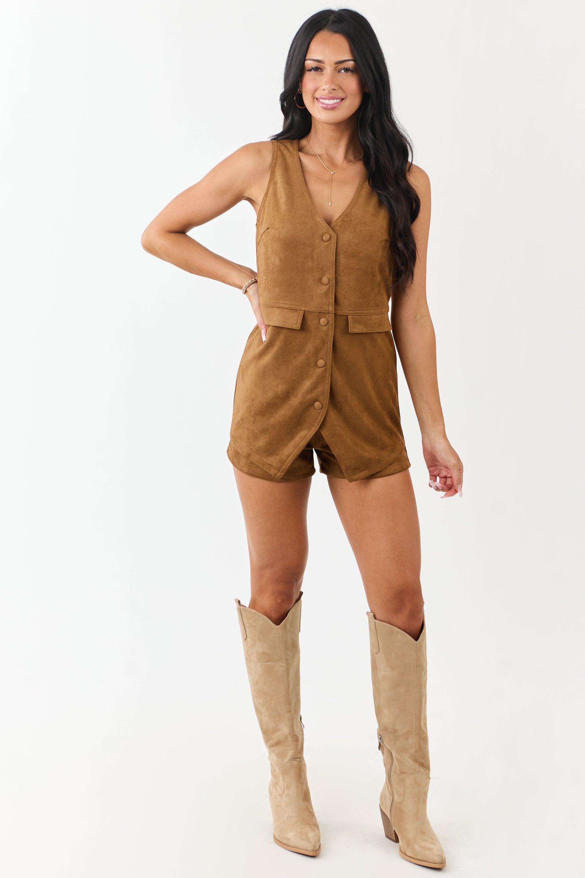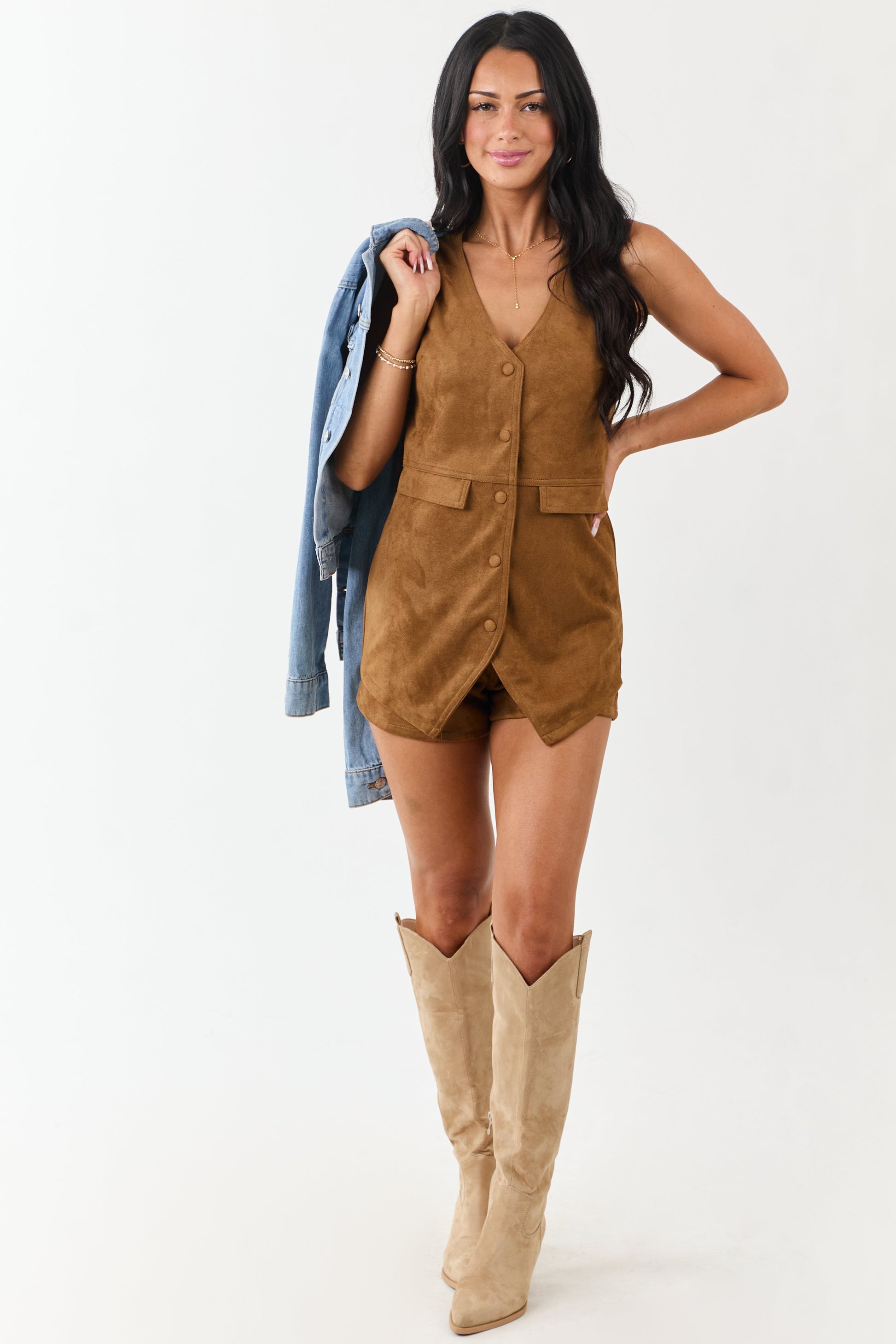 Rich Brown Sugar Faux Suede Vest Style Romper