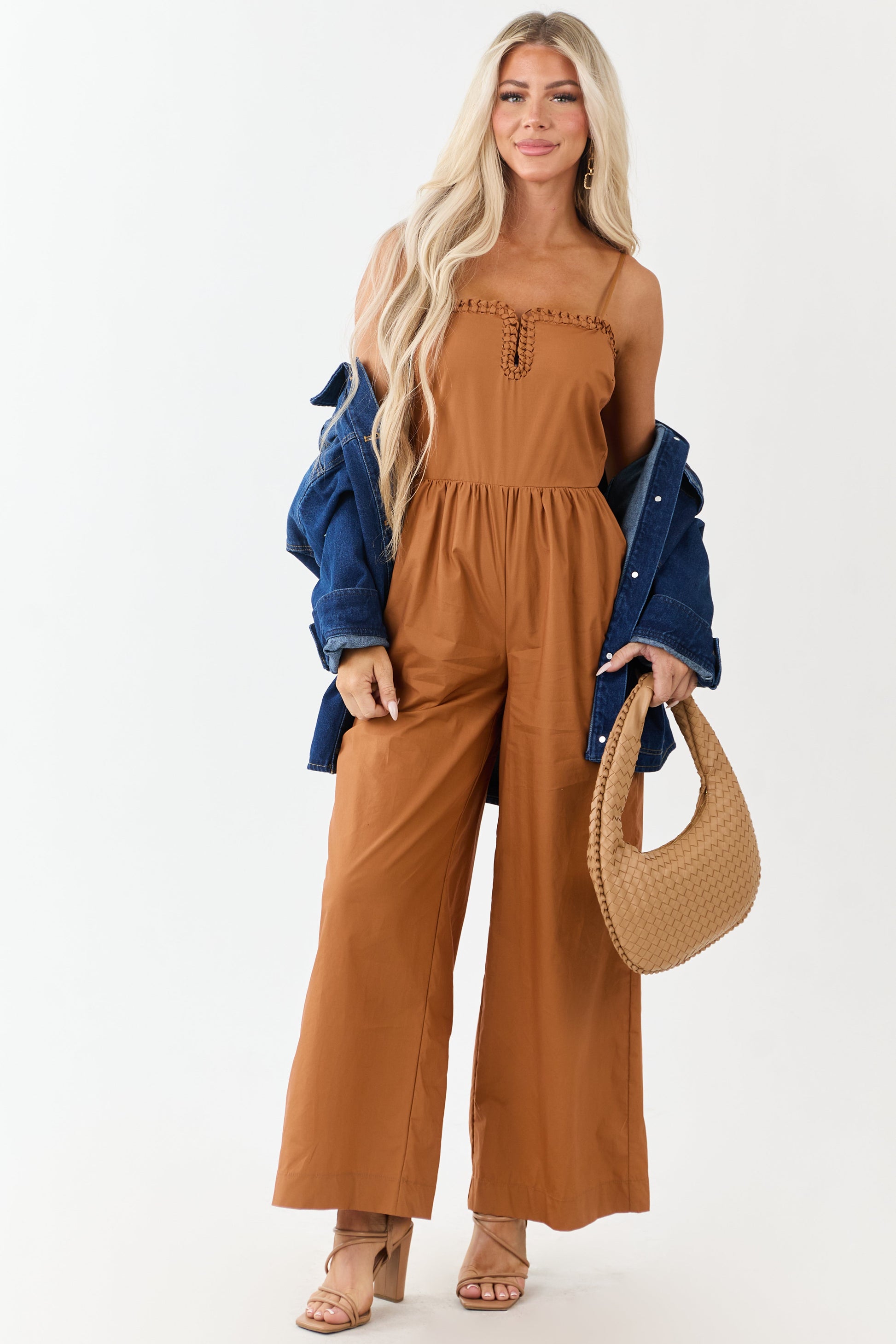 Sandstone Braided Notch Neck Wide Leg...