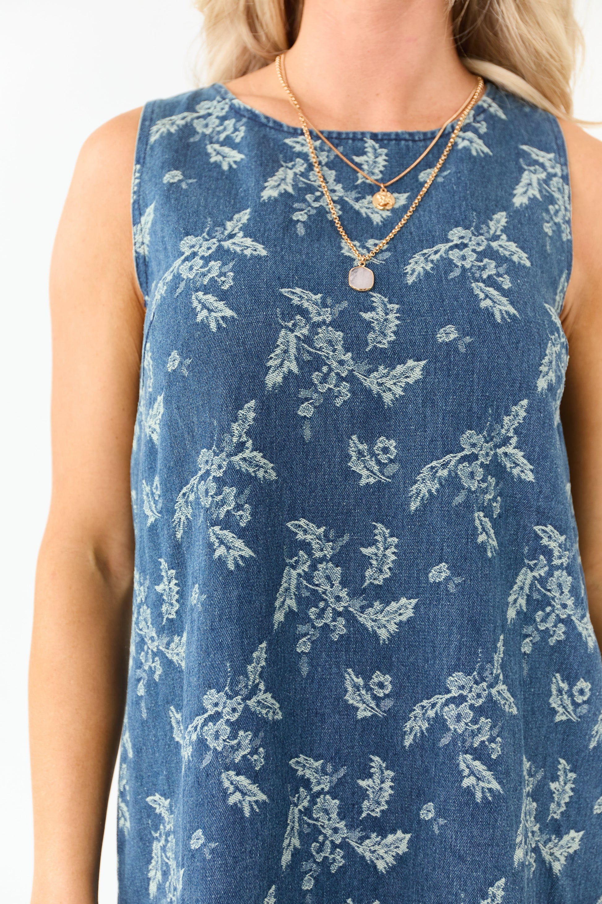 Medium Antique Wash Denim Floral Jacquard Mini Dress