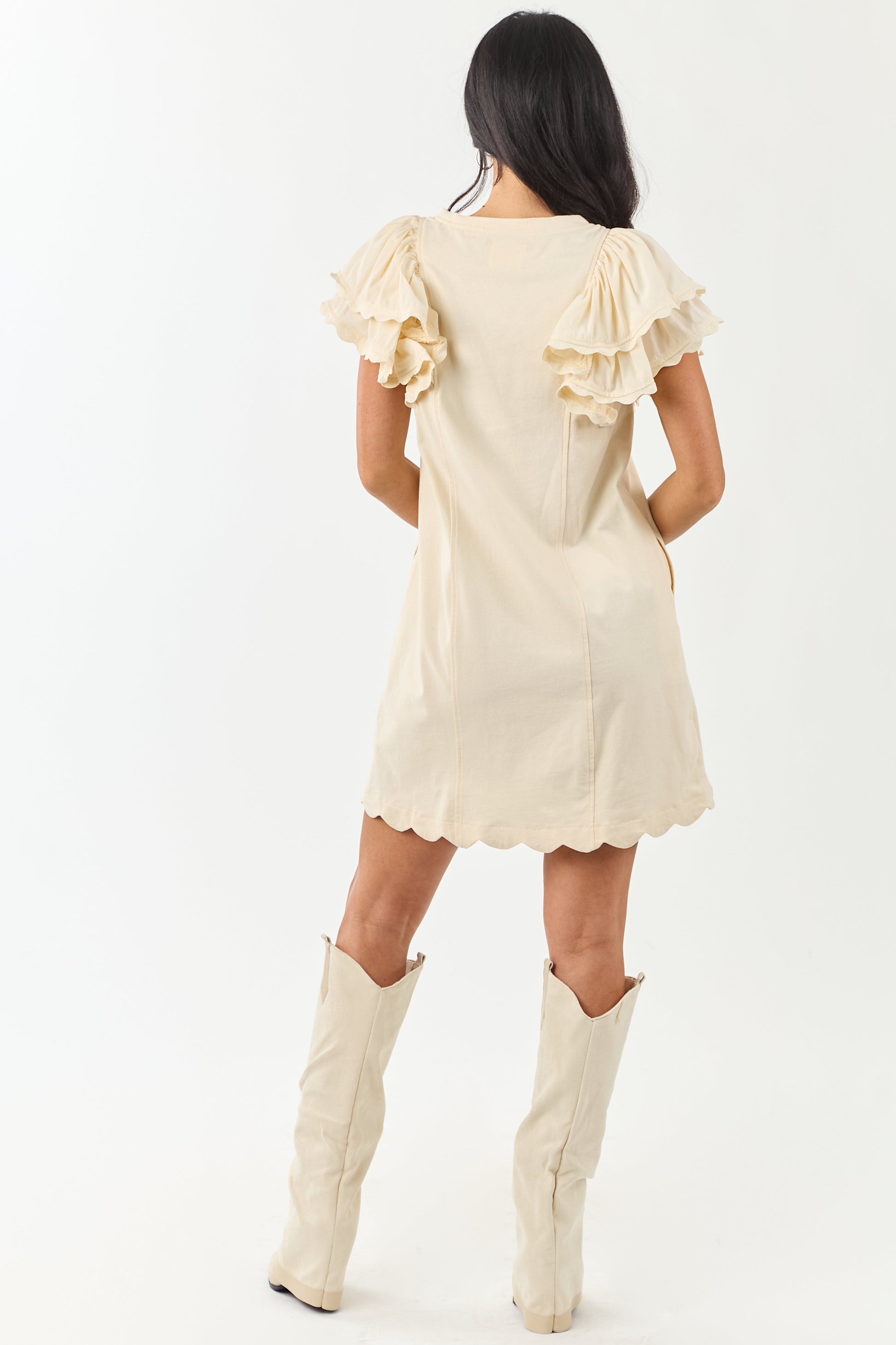 Cream Jersey Knit Scallop Hem Cotton Mini Dress