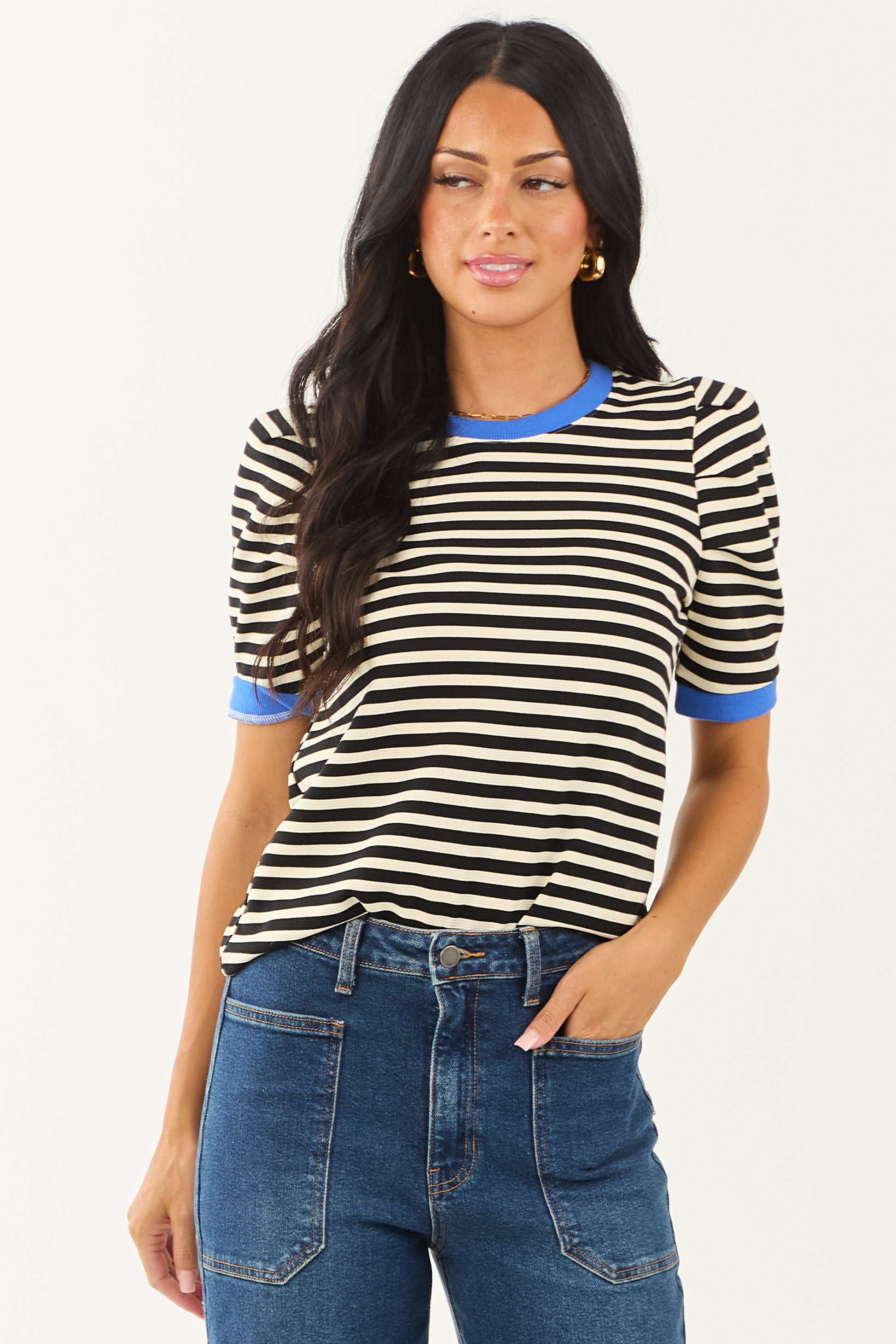 Entro Black Striped Contrast Trim Short Sleeve Top