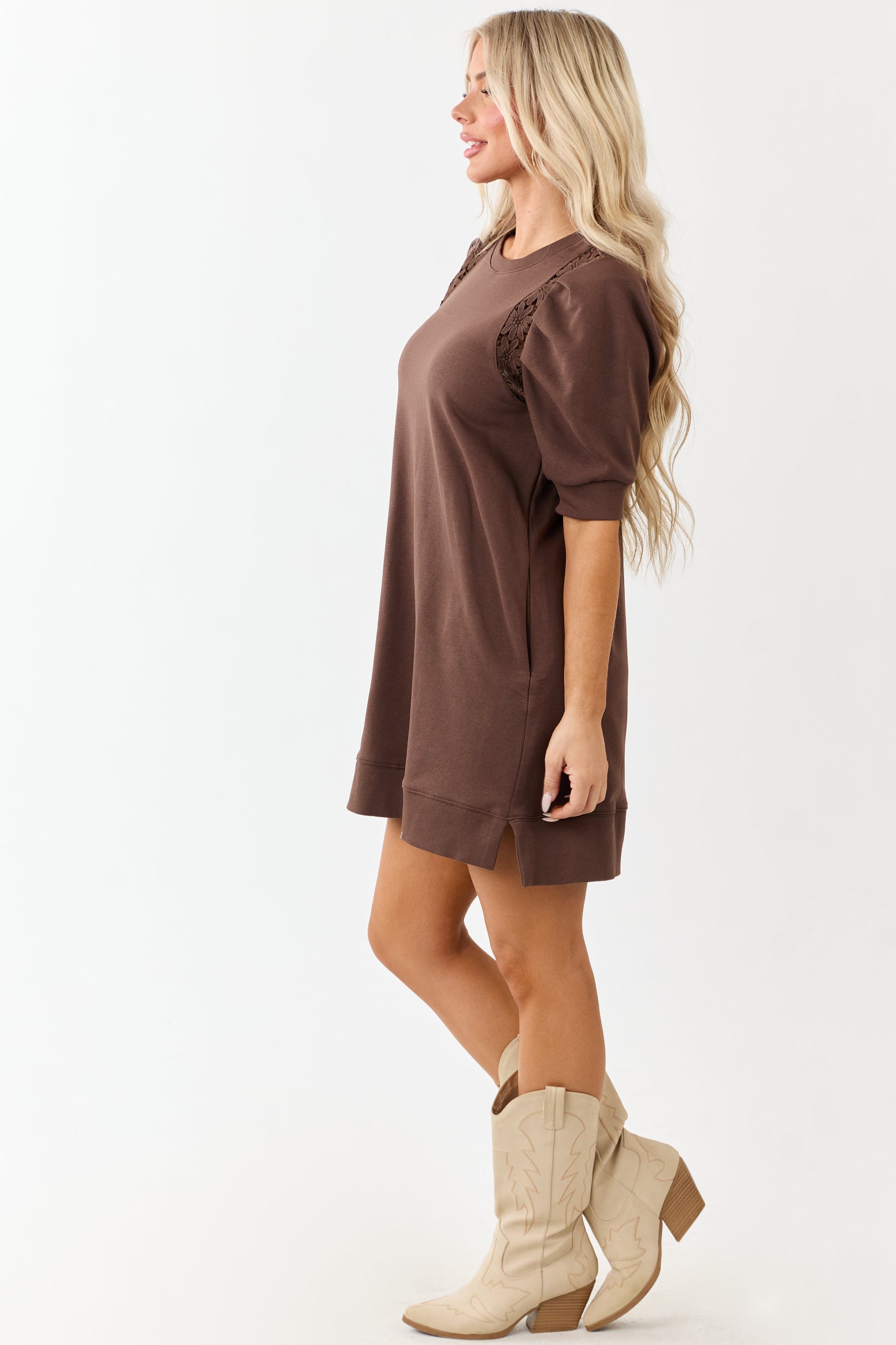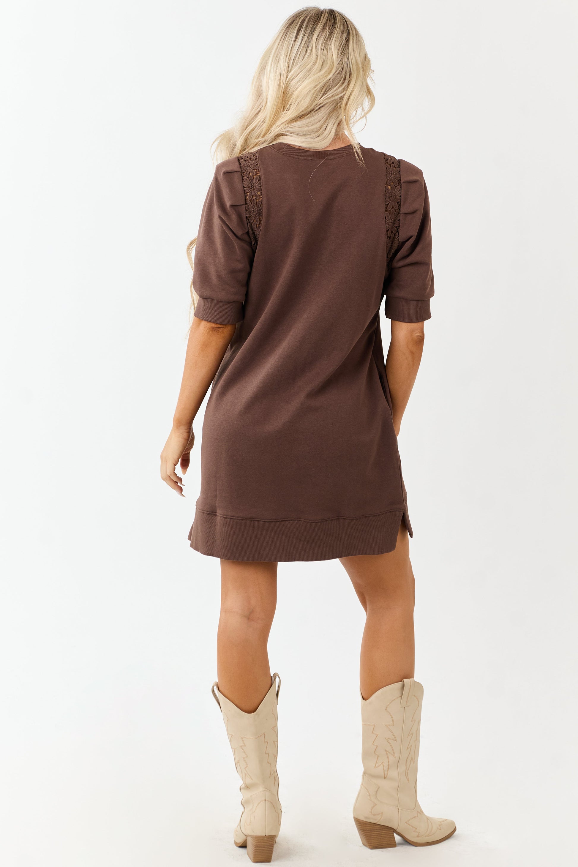 Entro Cocoa Cotton Floral Lace Panel Mini Dress