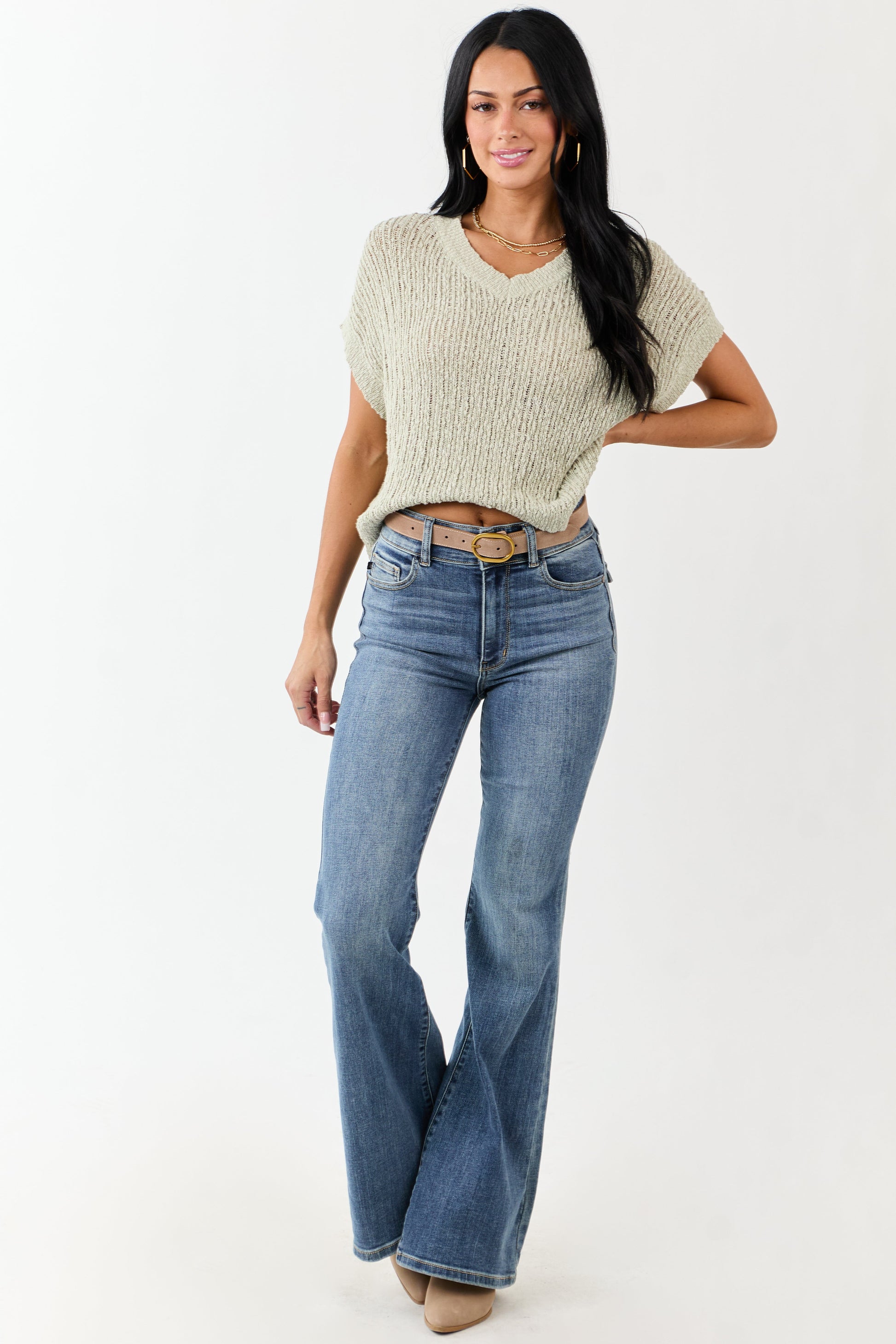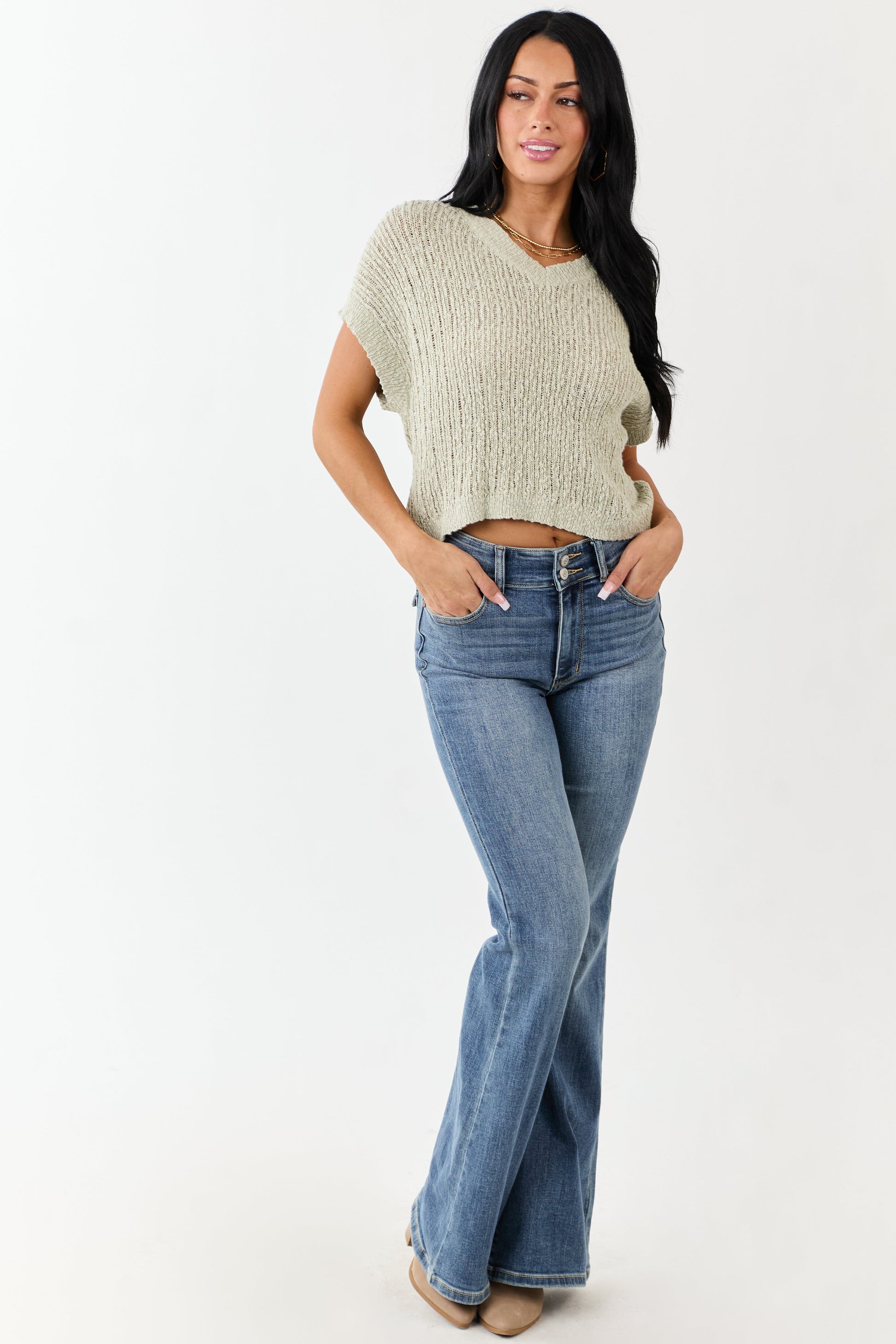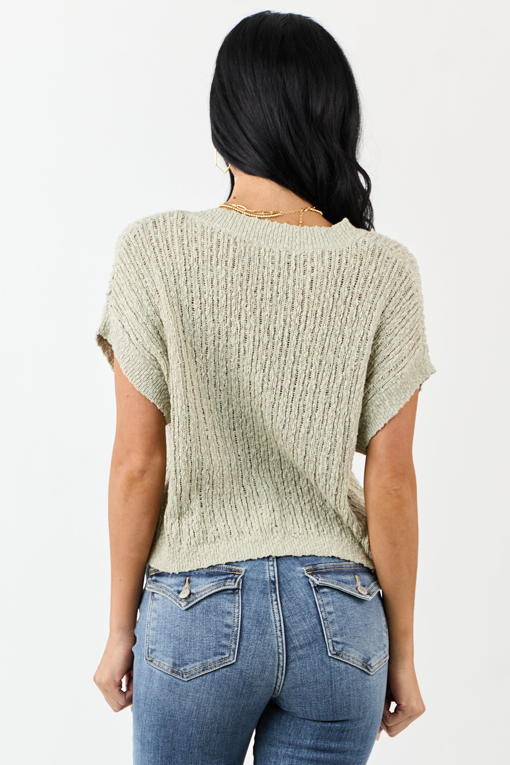 Sage V Neck Short Sleeve Cotton Sweater Top