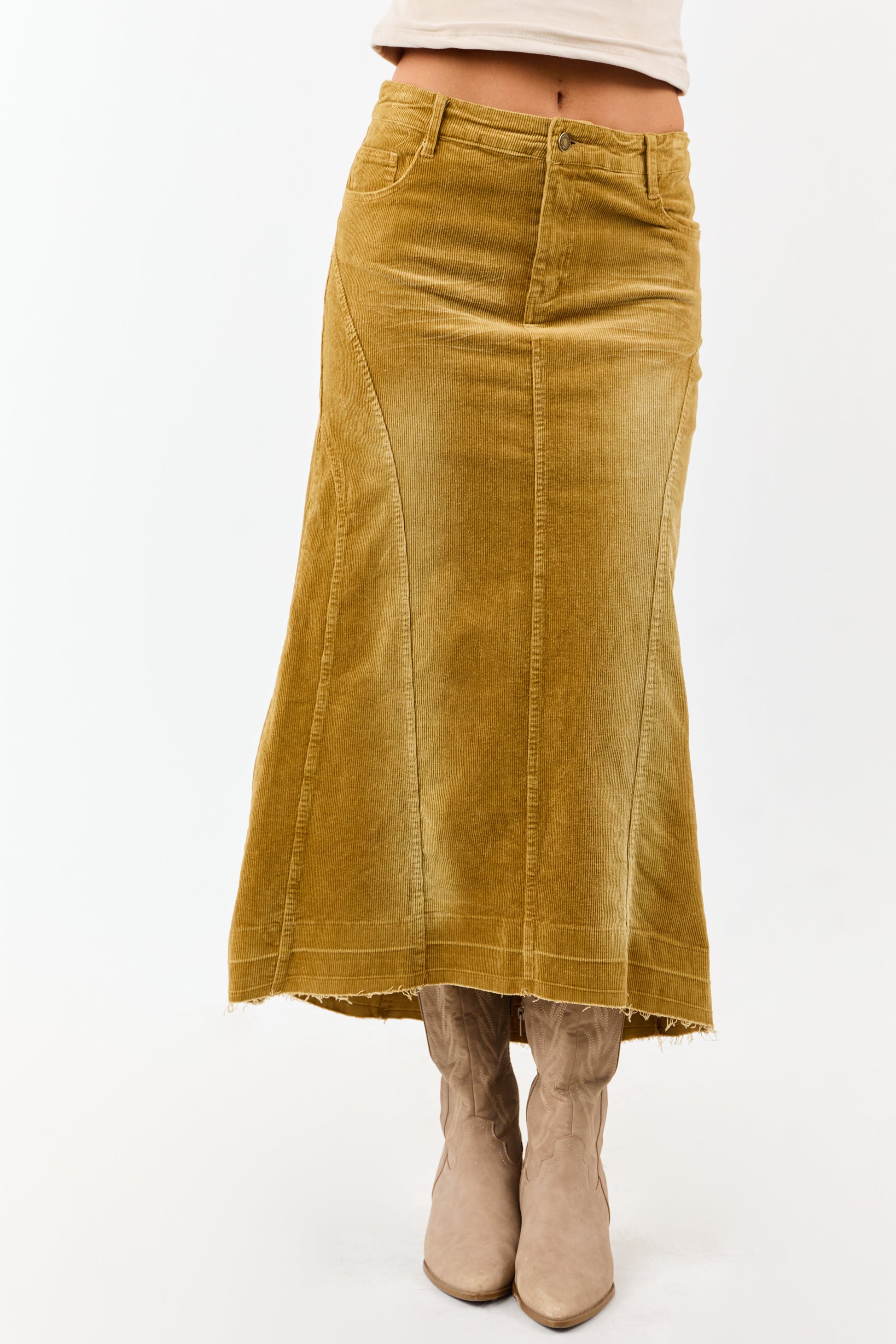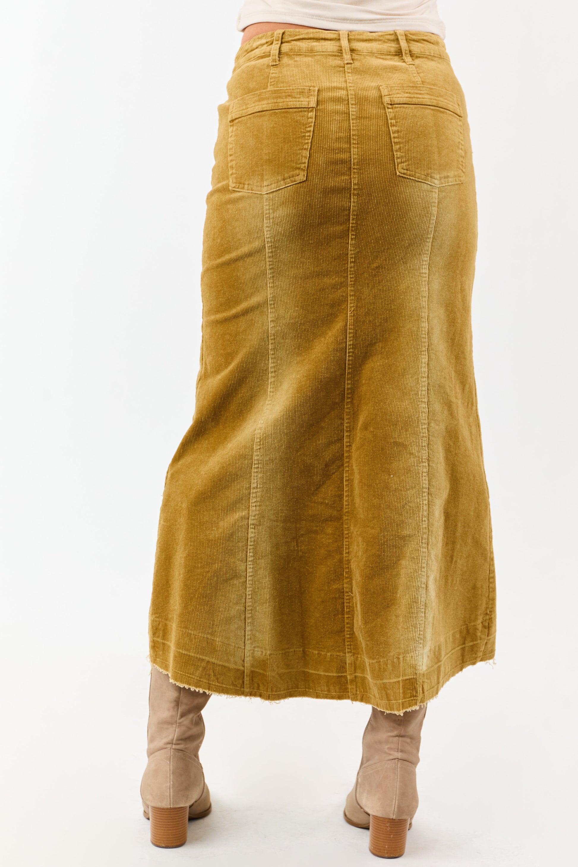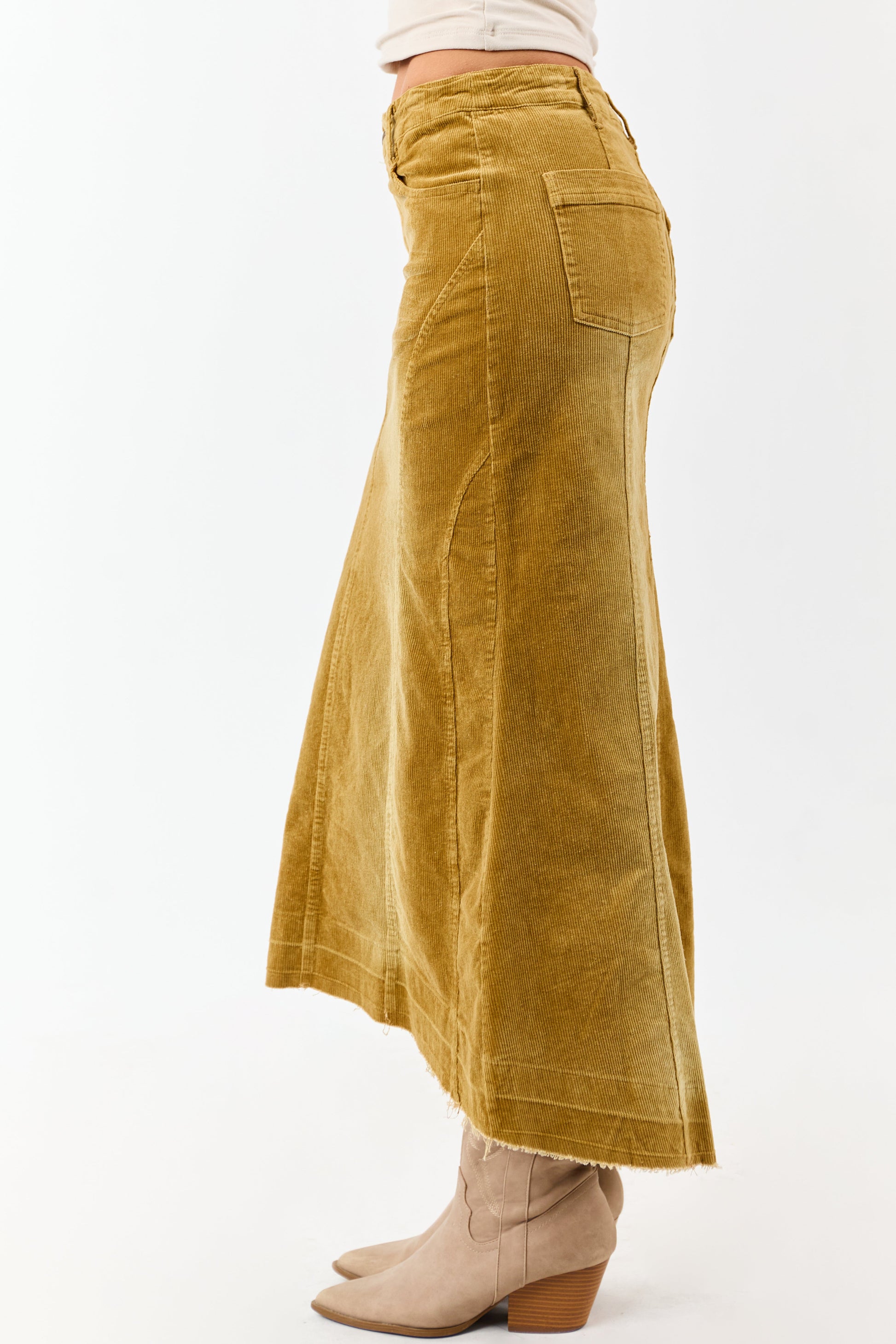 Light Copper Washed Corduroy High Low Midi Skirt