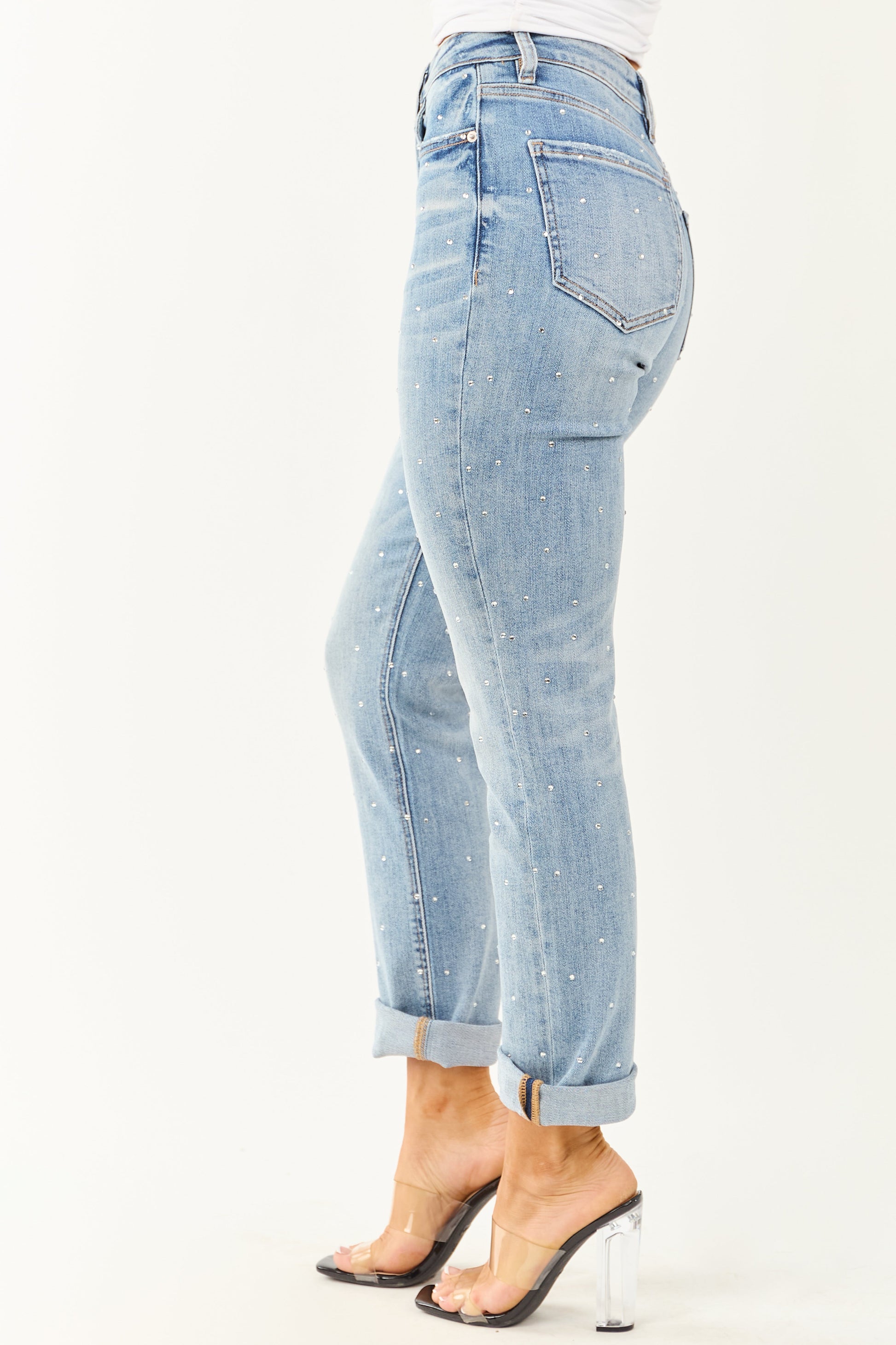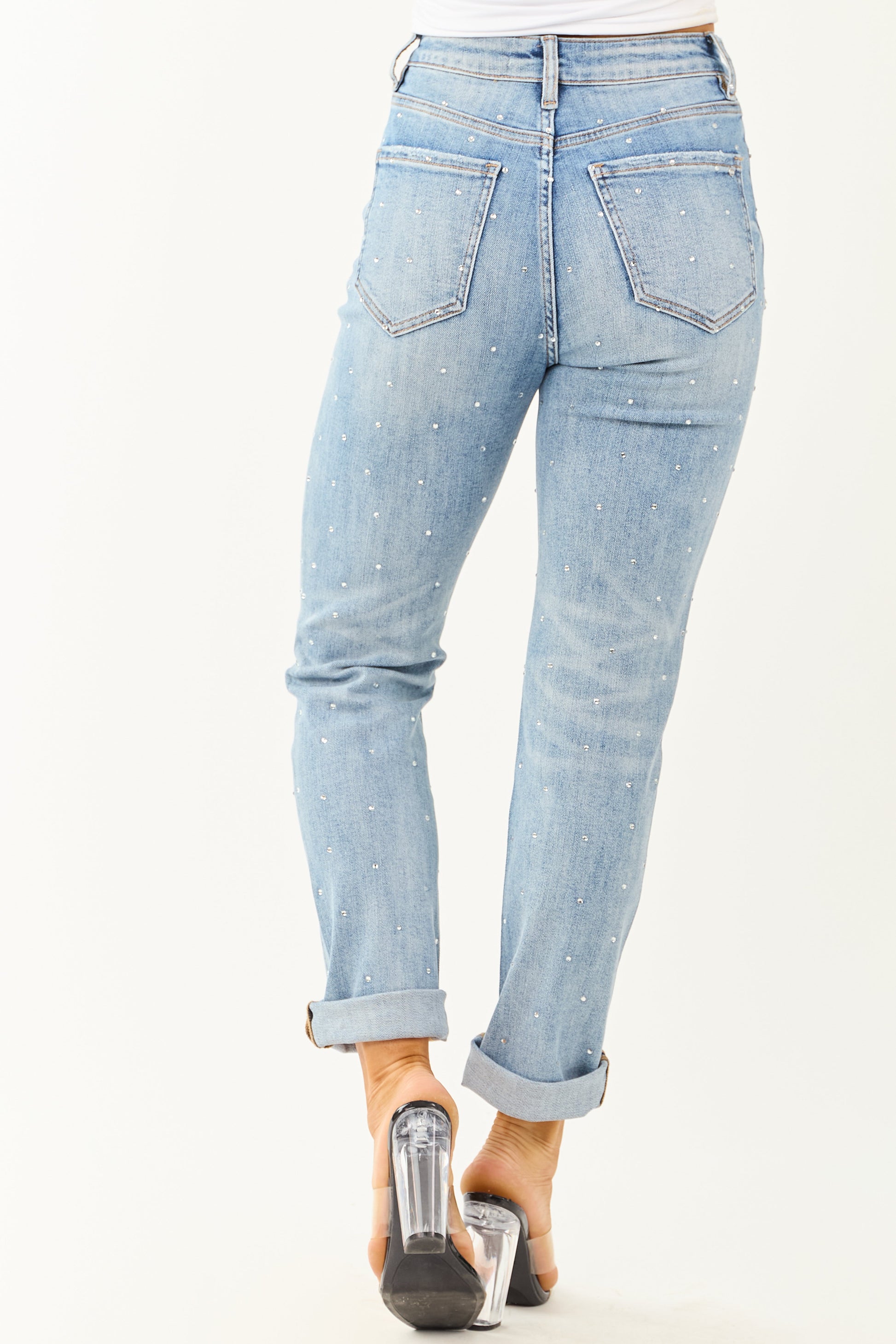 Mica Denim Light Rhinestone Stretchy Straight Jeans