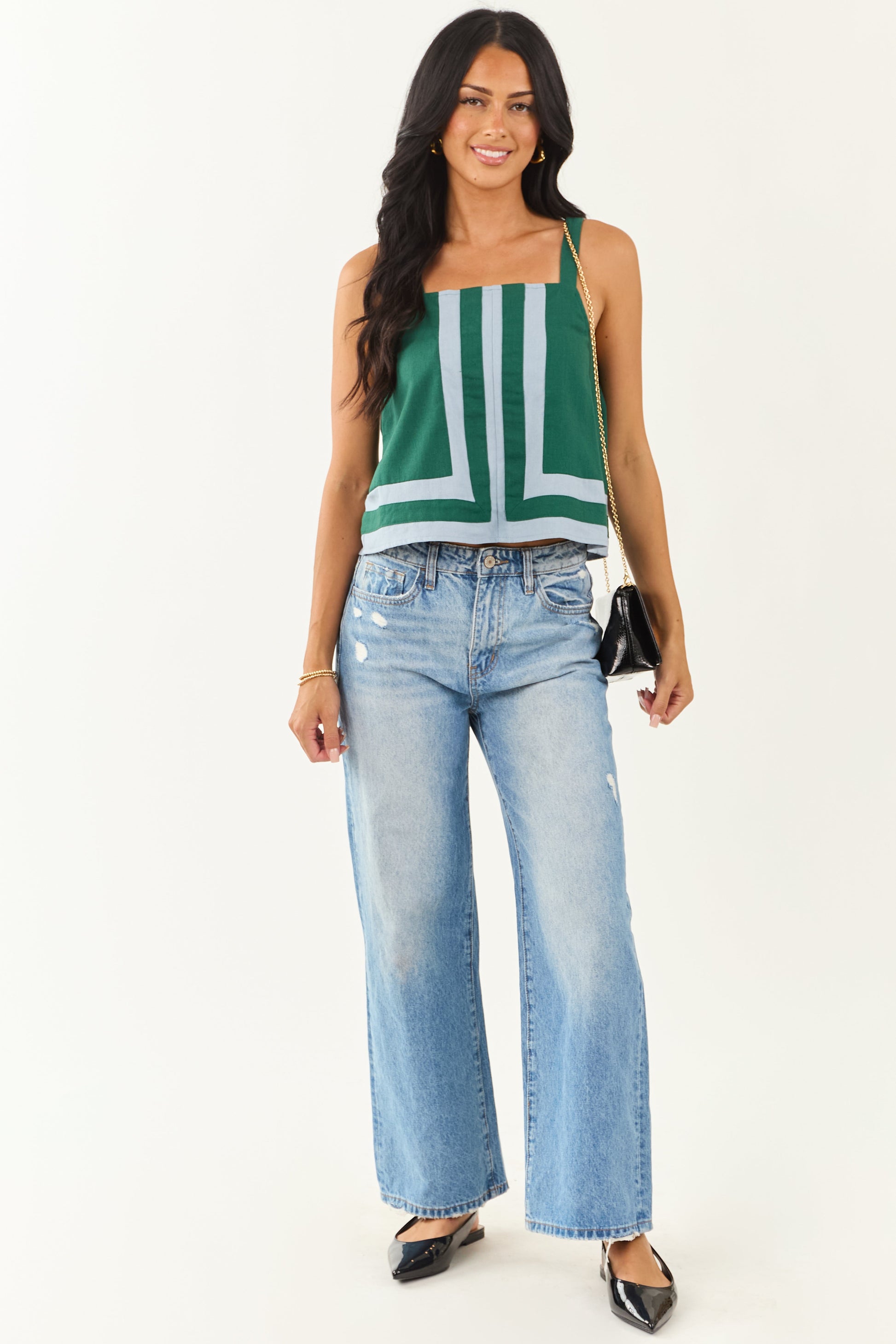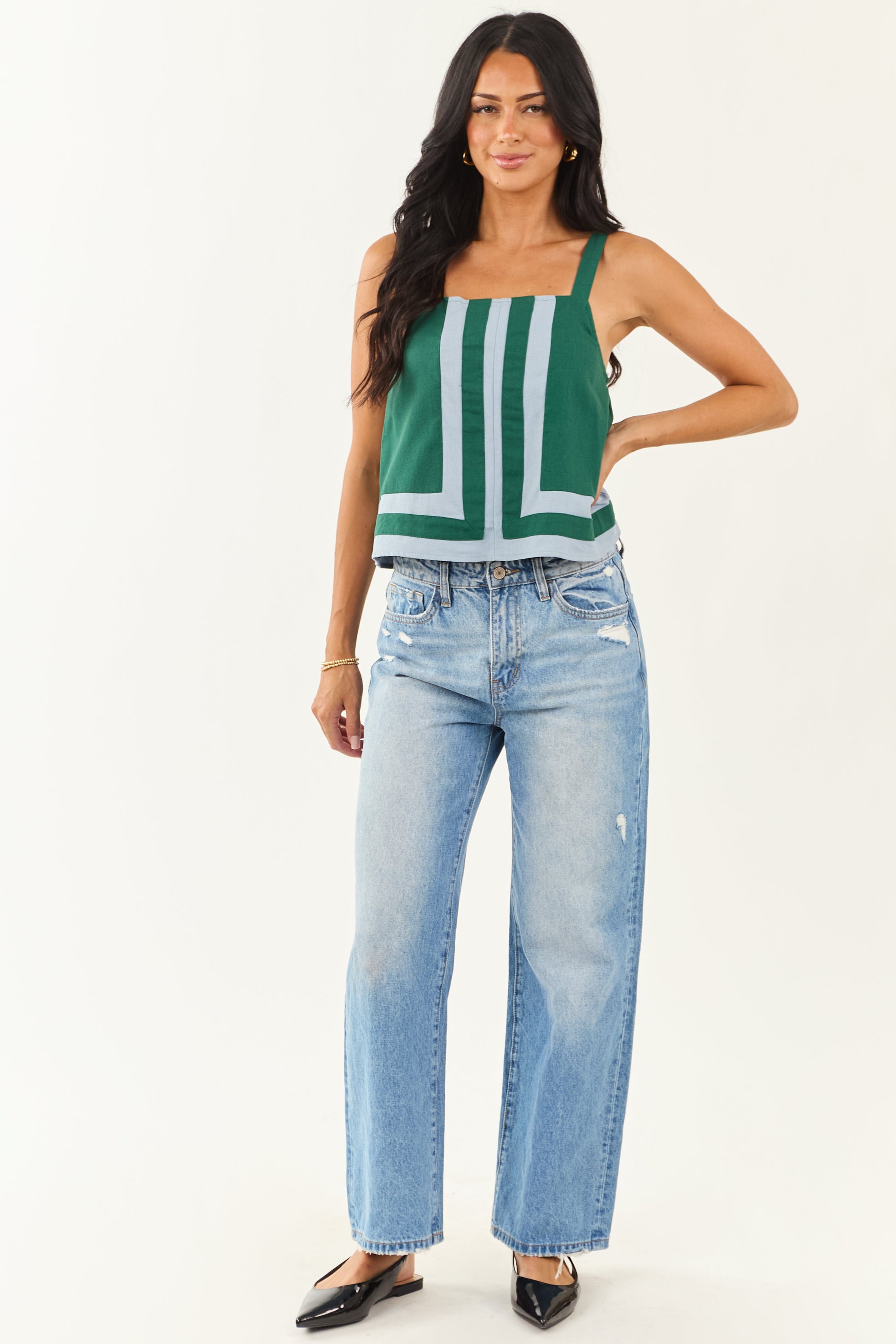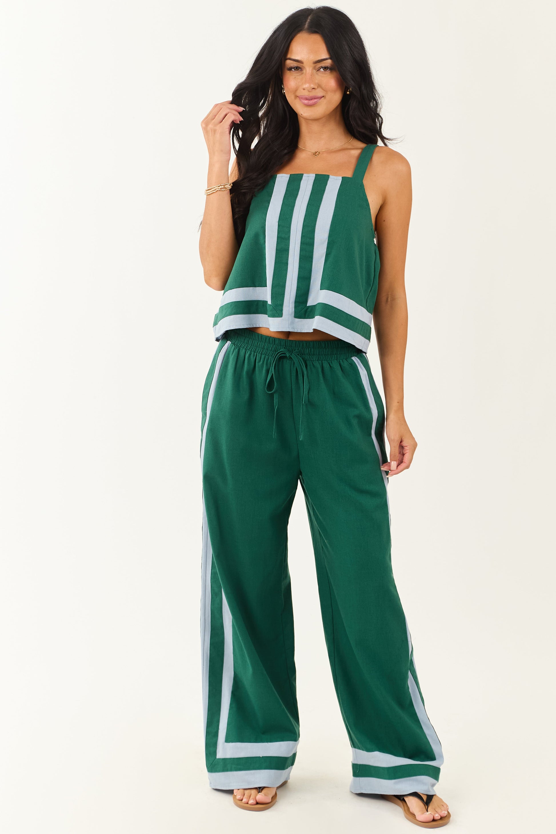 Entro Hunter Green Contrast Stripe Linen Blend Tank Top