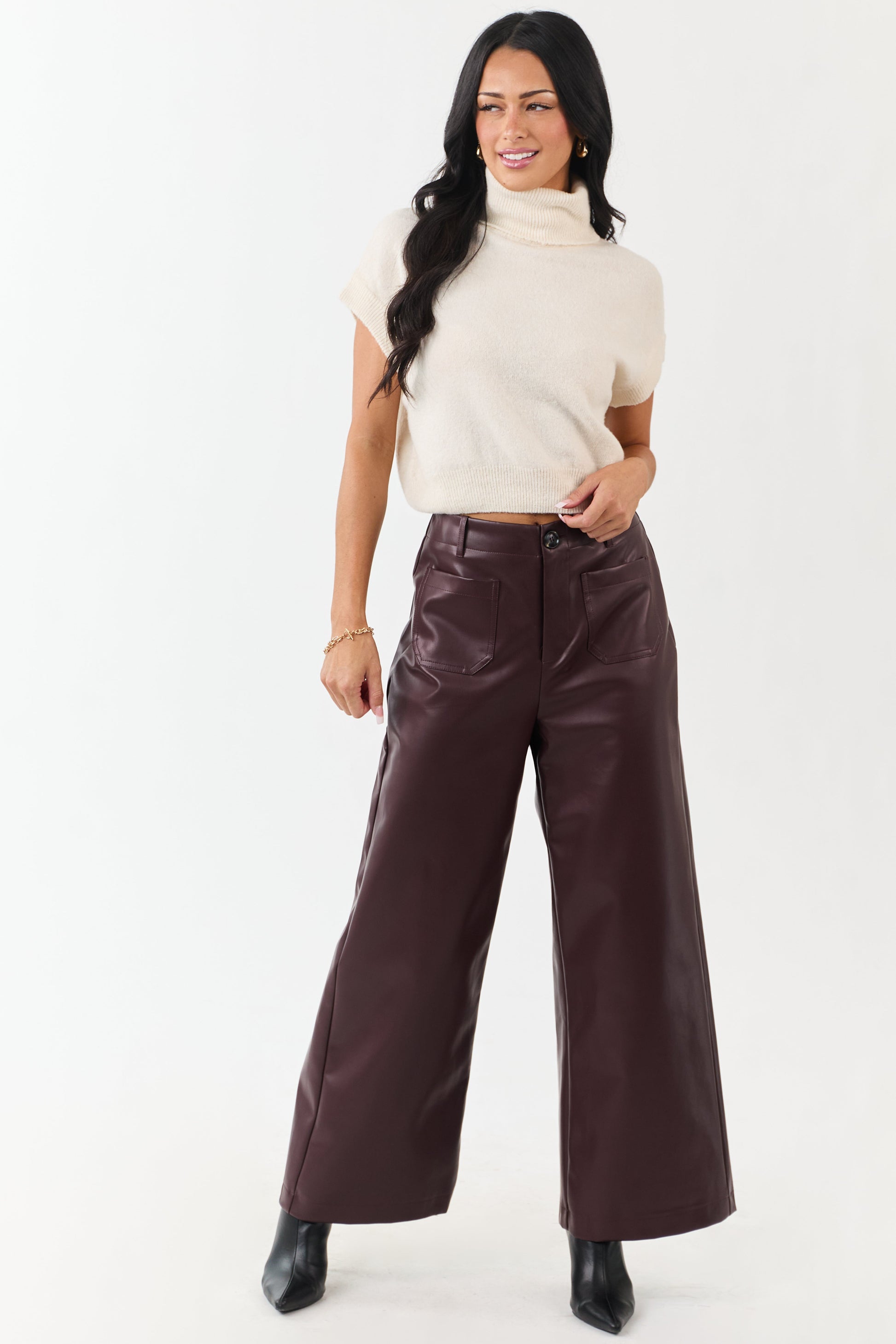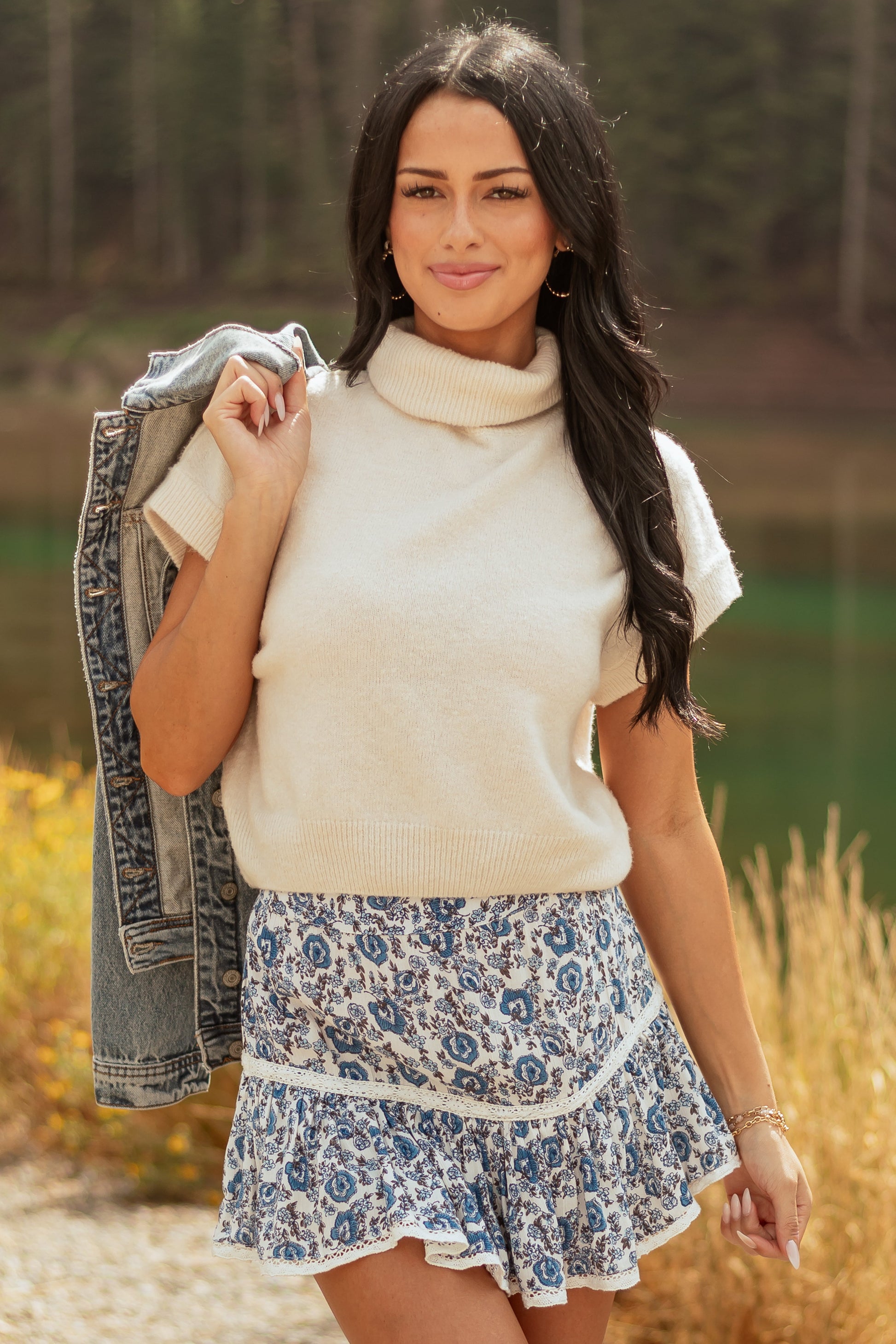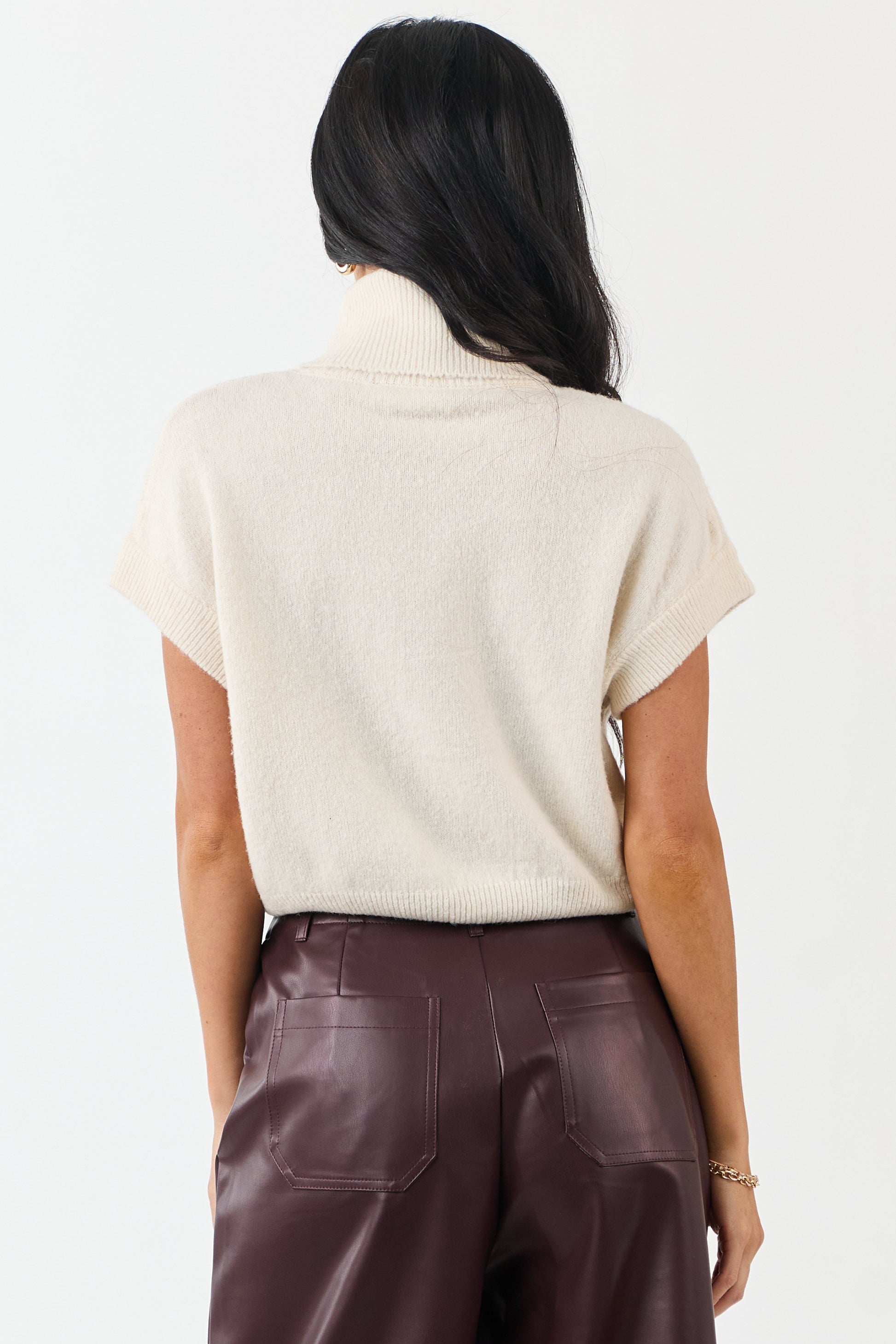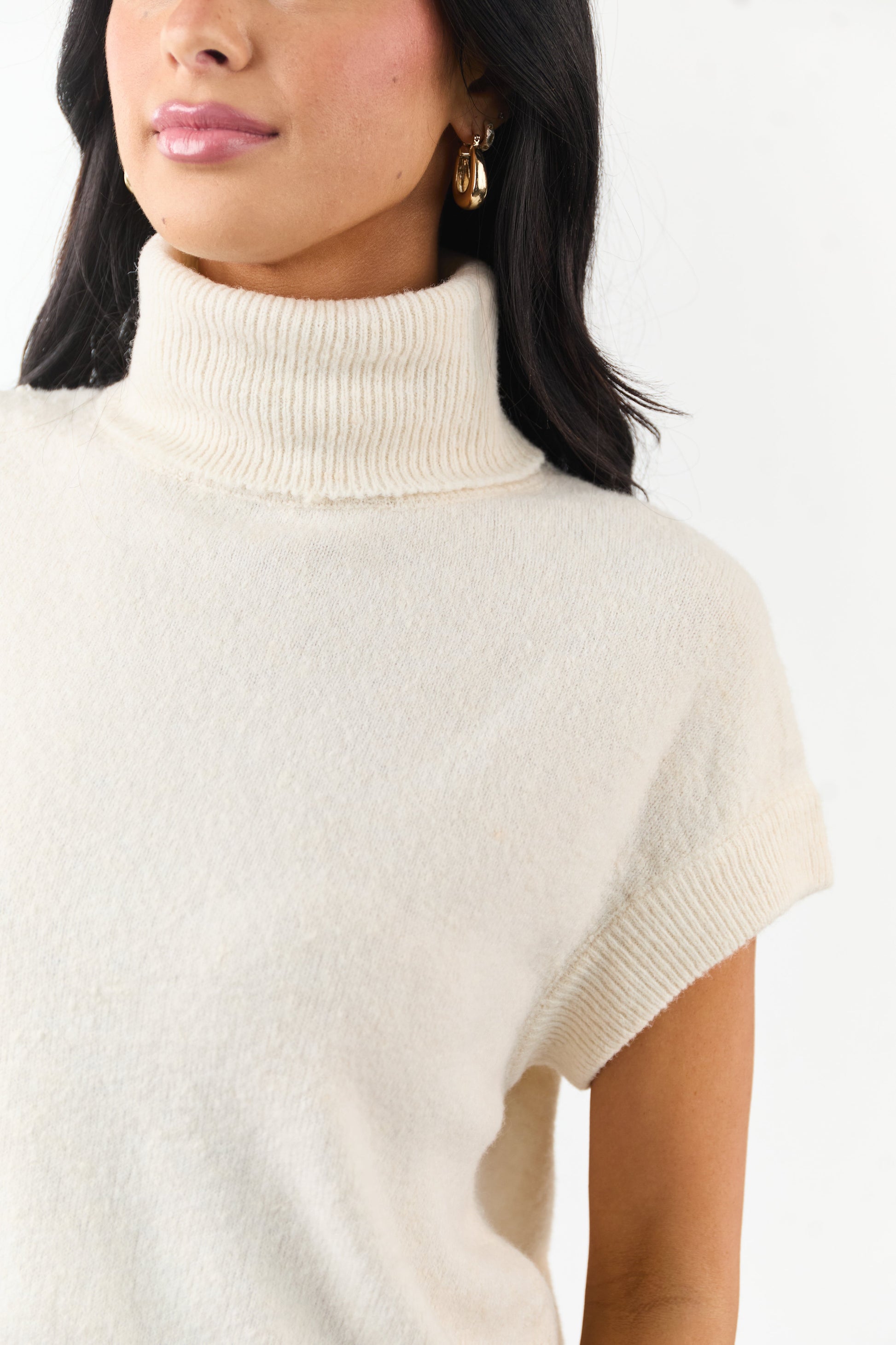 Cream Turtleneck Cap Sleeve Wool Blend Knit Top