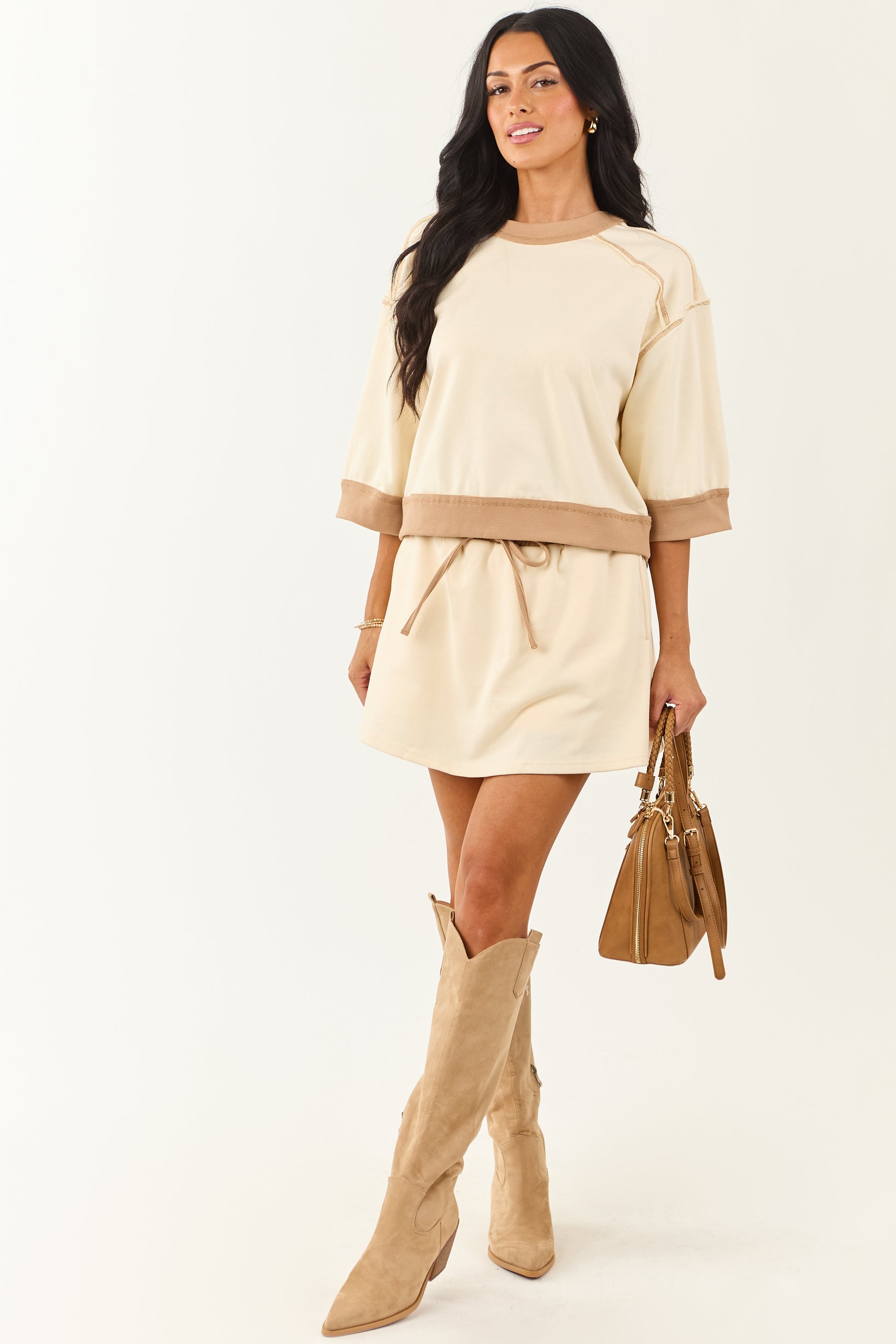 Entro Cream Contrast Trim Half Sleeve Knit Top