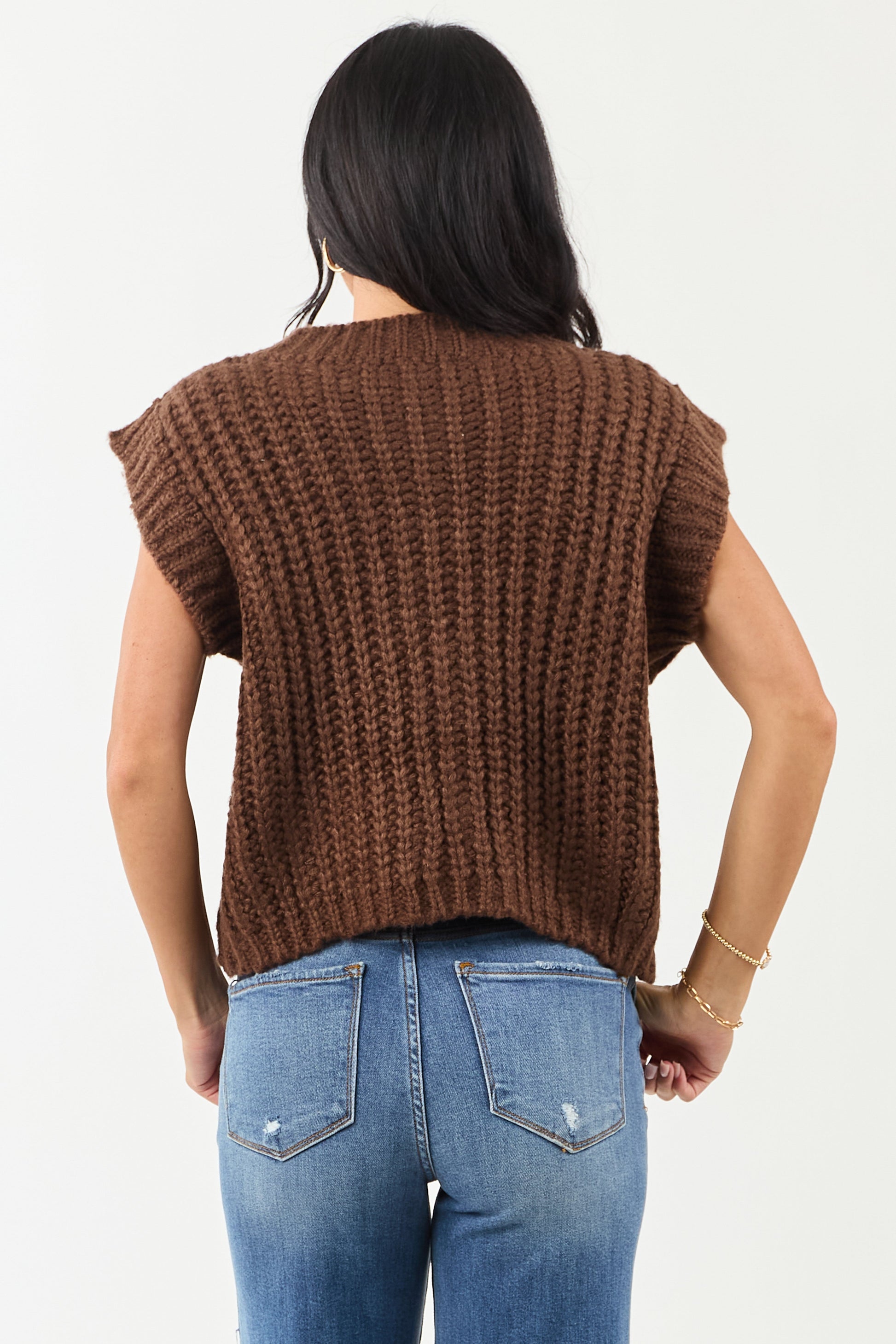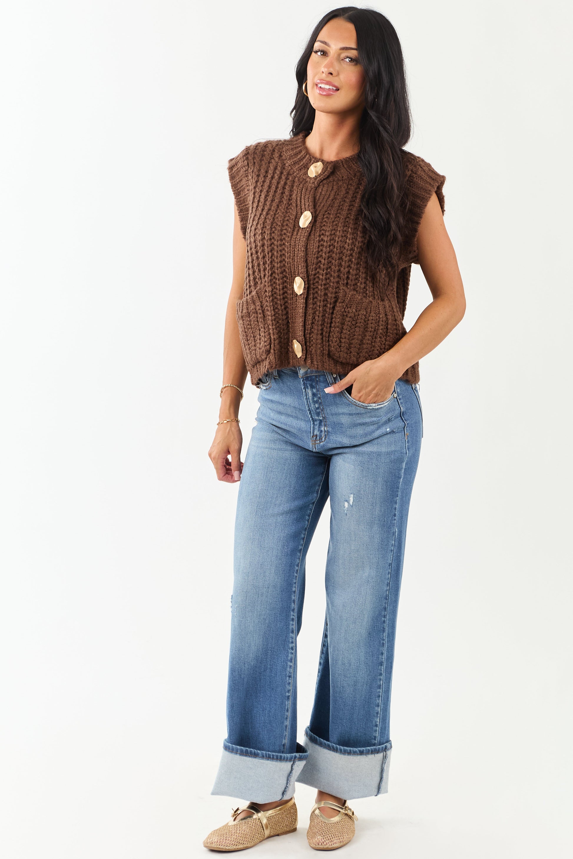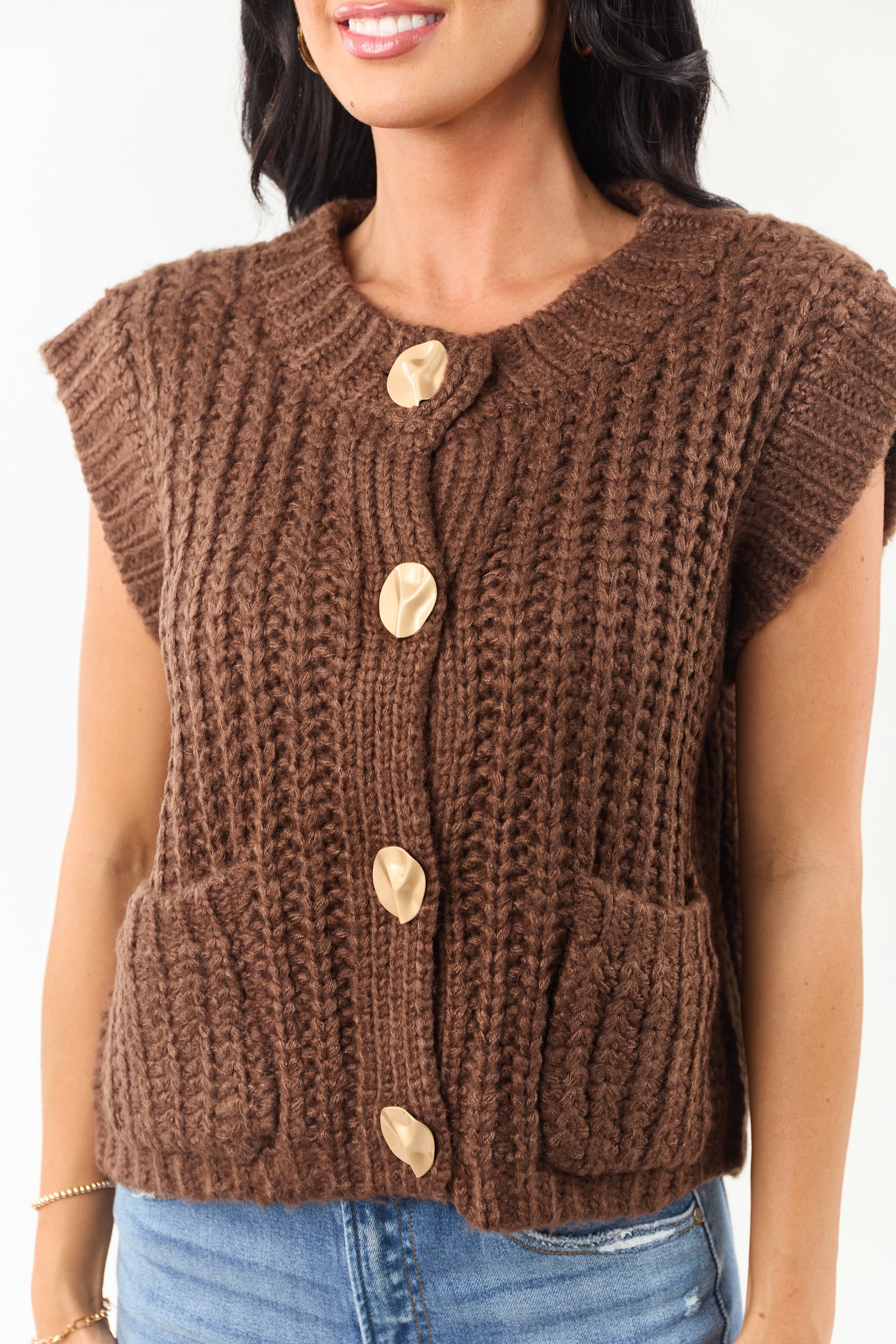 Entro Cocoa Button Down Thick Knit Sweater Vest